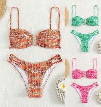 Nuevo Traje de Baño Bikini de Moda Floral 2023 Europeo y Americano Comercio Exterior Sexy Cuello en U Triángulo Dividido Traje de Baño Bikini