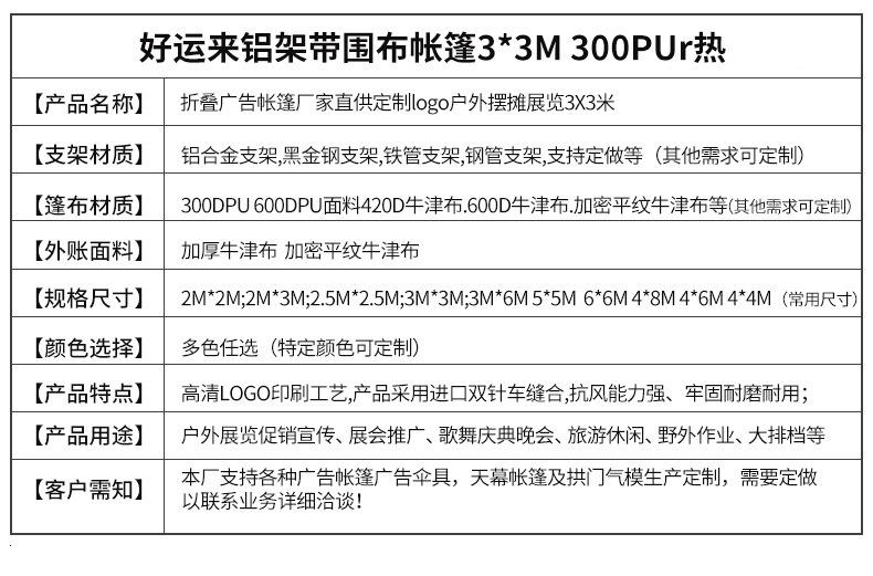 Personalización de Carpa para Stand de Exposición de Eventos 3*3m Carpa de Aleación de Aluminio Carpa Publicitaria para Exteriores Carpa de Tela Plegable