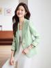 Chaqueta Verde de Manga Larga con Cuello de Traje Pequeño para Mujer Primavera Otoño e Invierno 2025 Nuevo Elegante Versátil Top de Una Pieza para Oficina