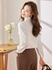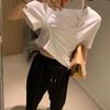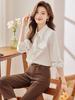 Camisa de Manga Corta con Cuello de Punta y Volantes Diseño para Mujer Top Holgado de Alta Calidad Primavera y Otoño 2025 Nuevo Estilo