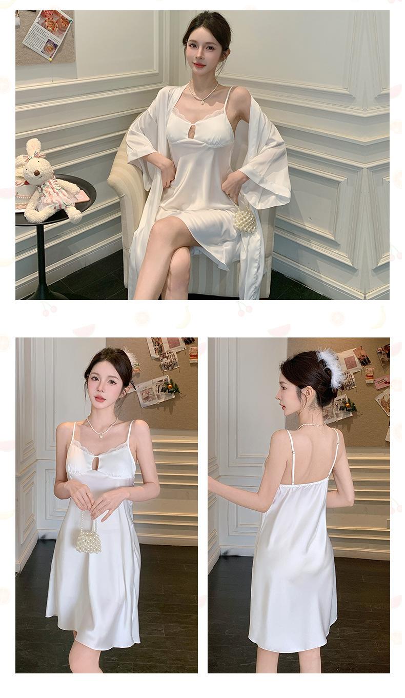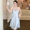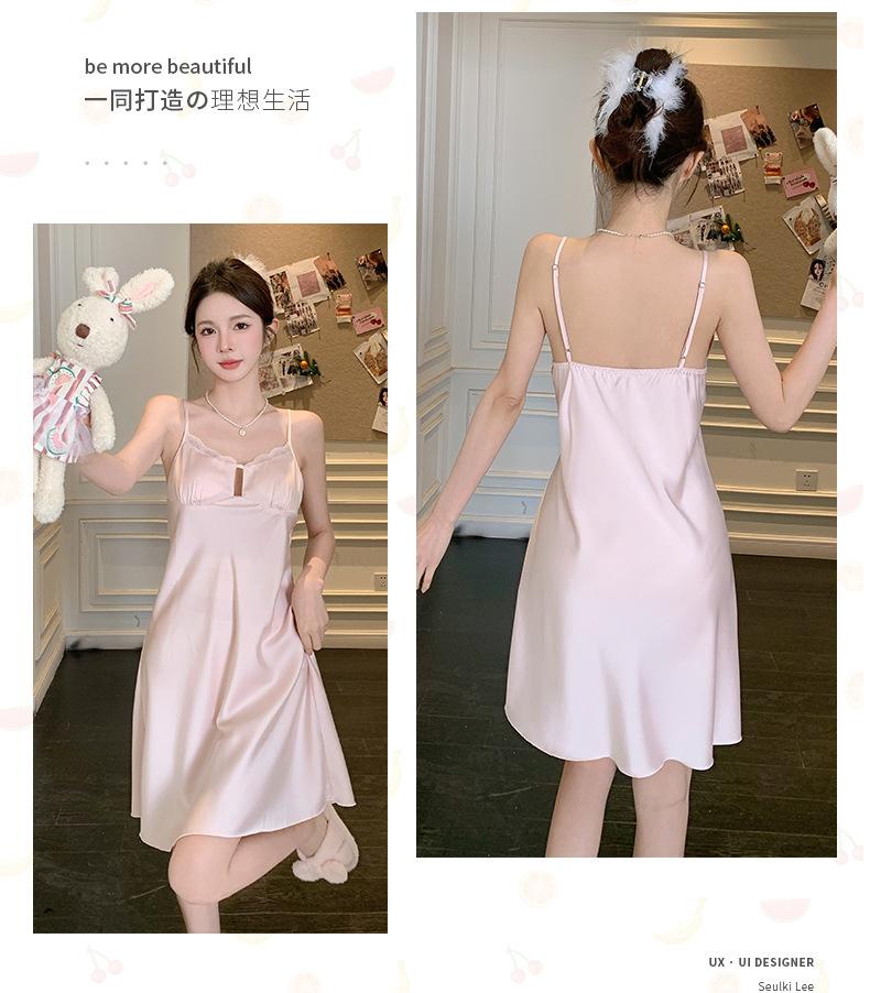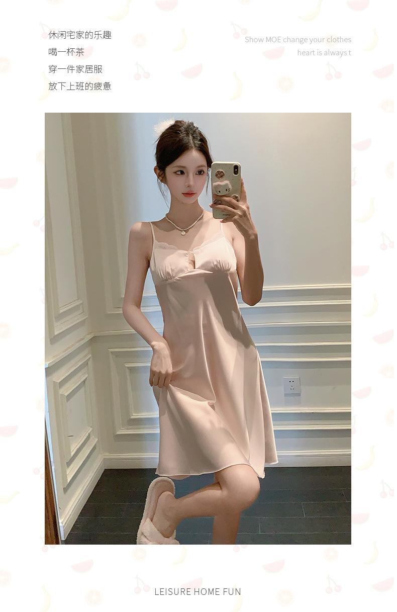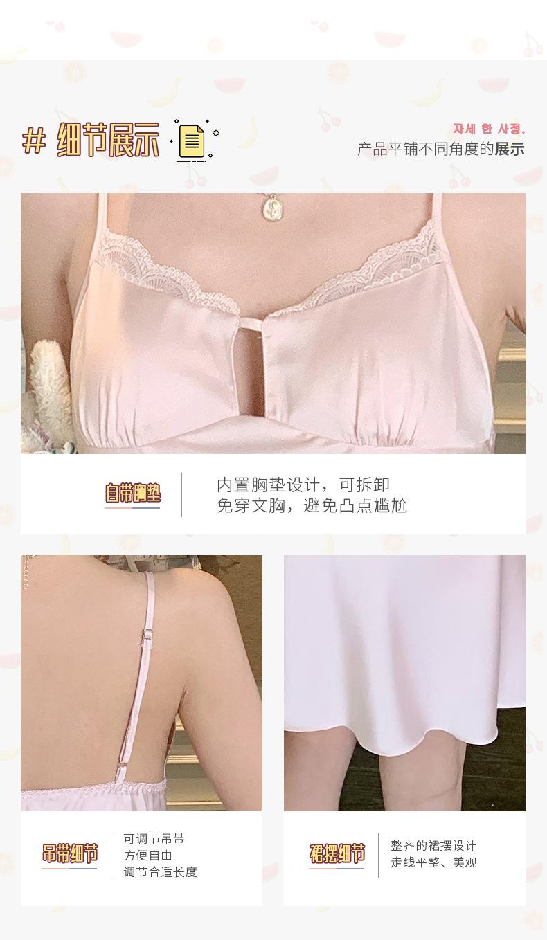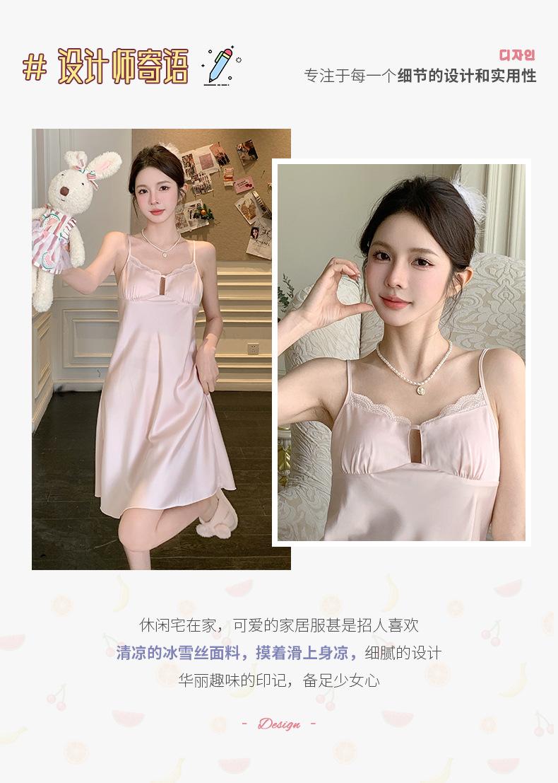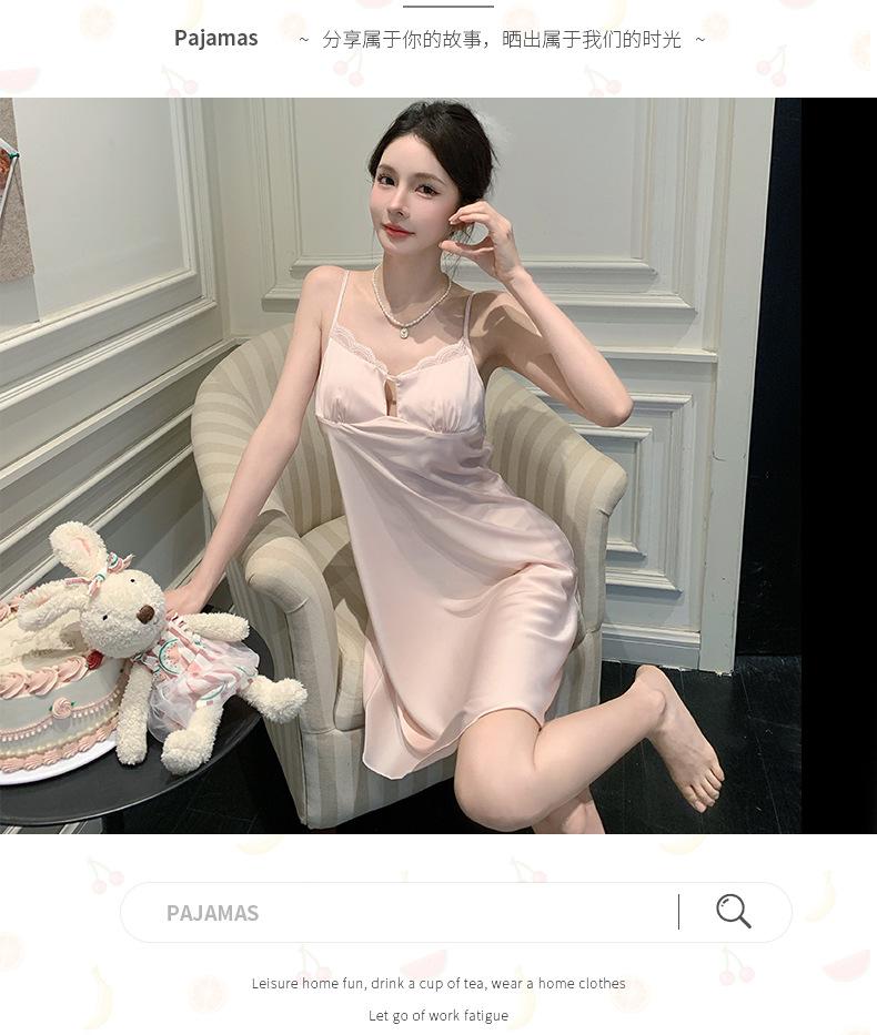 Camisón de Seda de Hielo, Pijama Femenino de Tirantes, Camisón Delgado de Primavera y Otoño, Encaje con Copas, Conjunto de Ropa para el Hogar Puro Lust