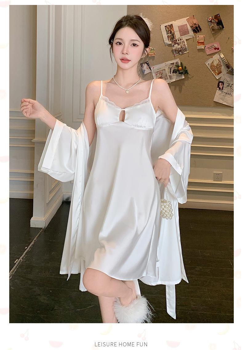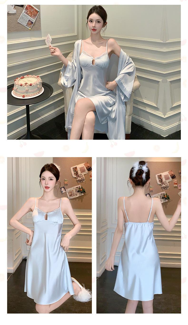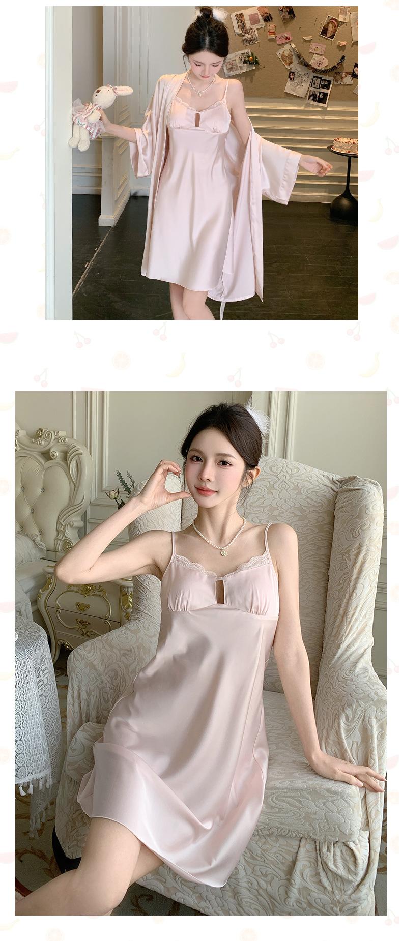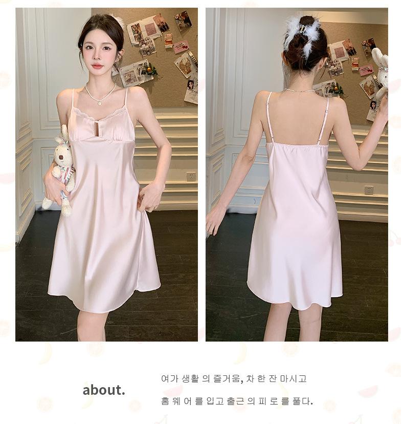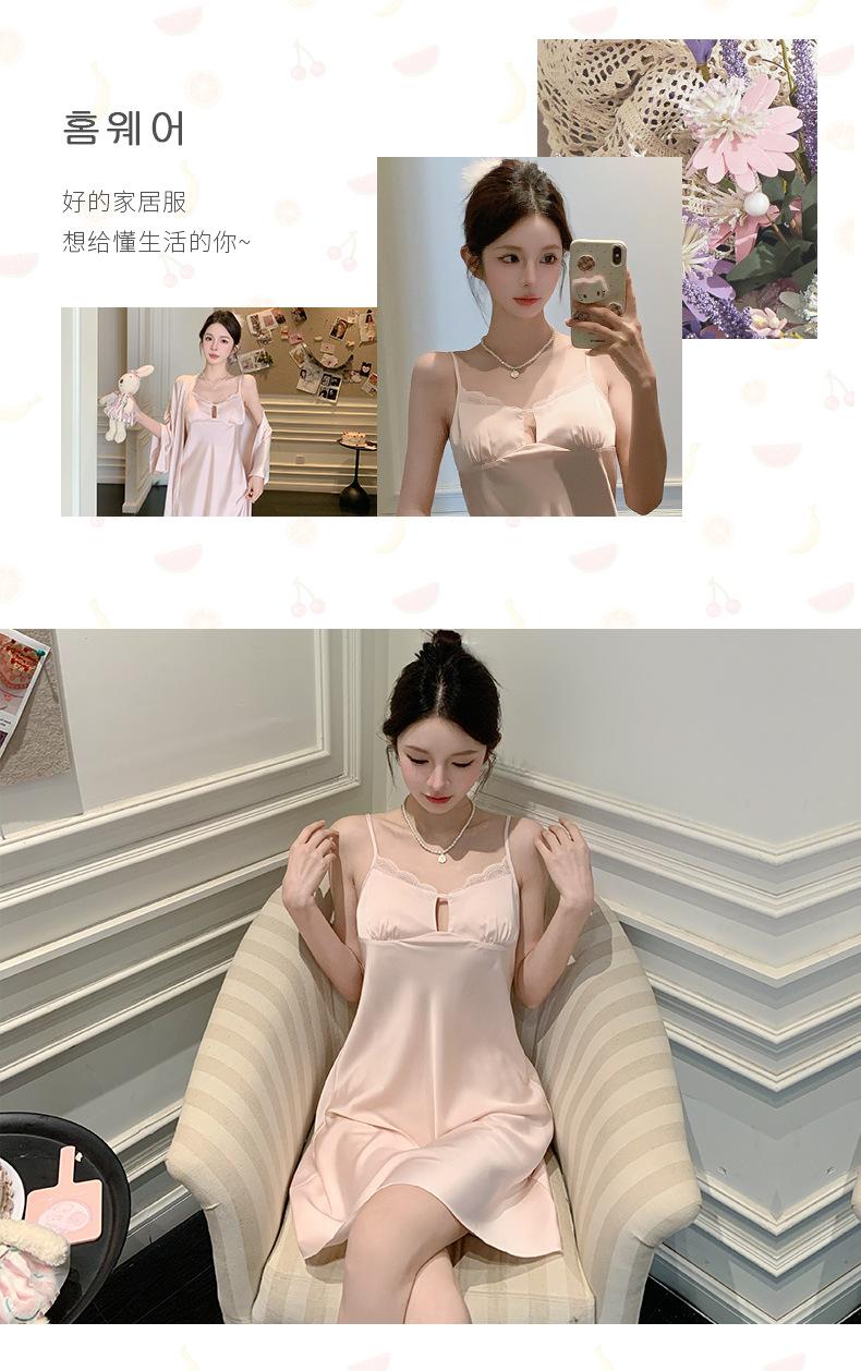 Camisón de Seda de Hielo, Pijama Femenino de Tirantes, Camisón Delgado de Primavera y Otoño, Encaje con Copas, Conjunto de Ropa para el Hogar Puro Lust