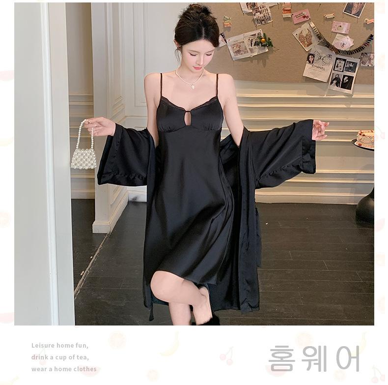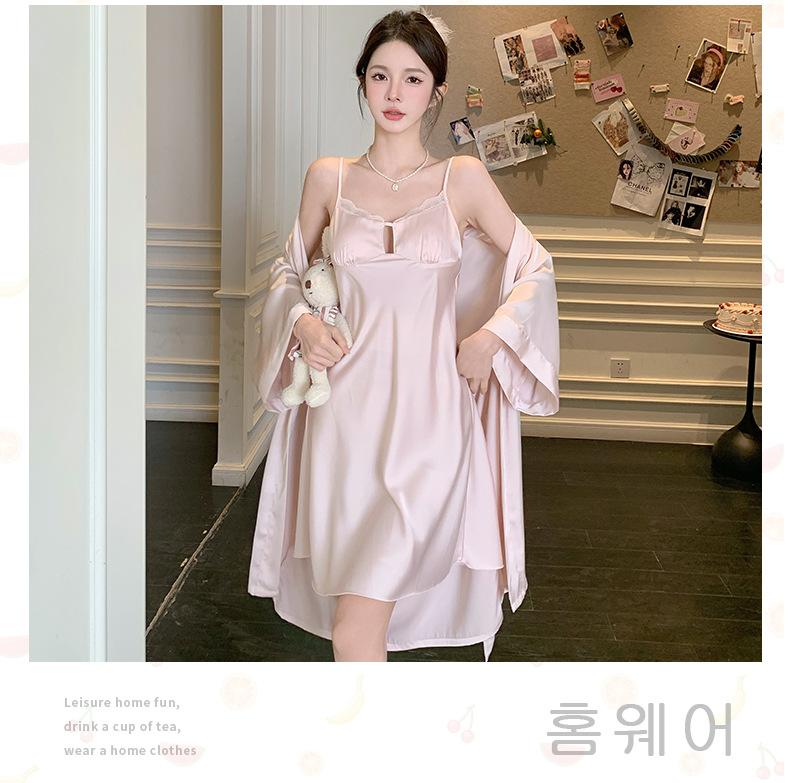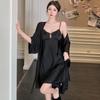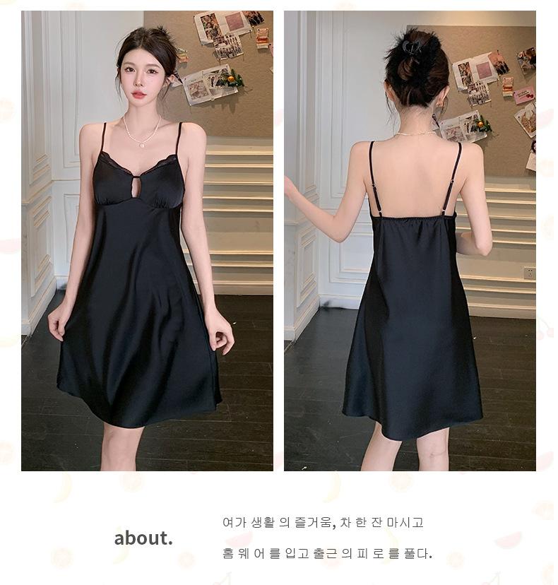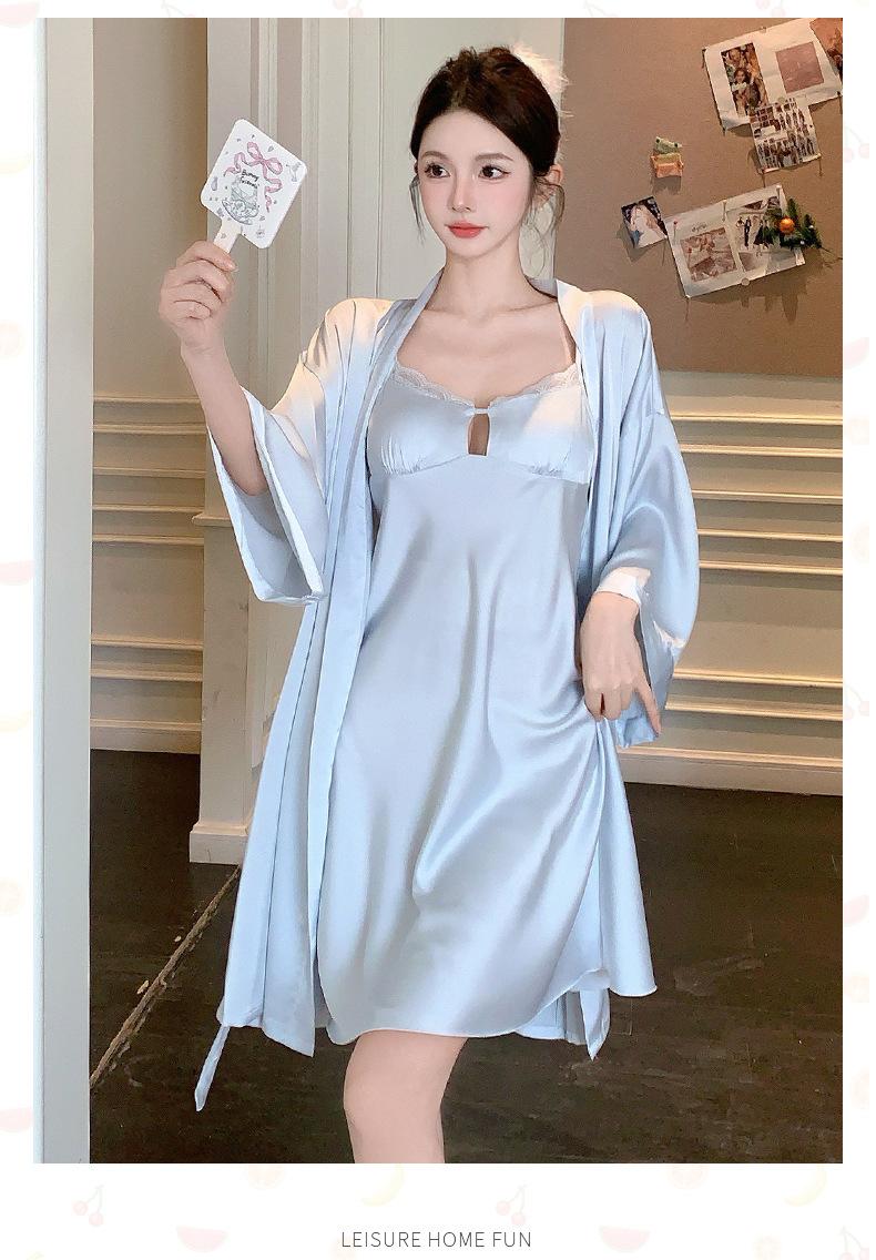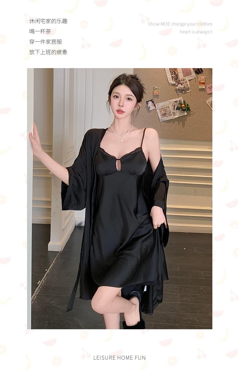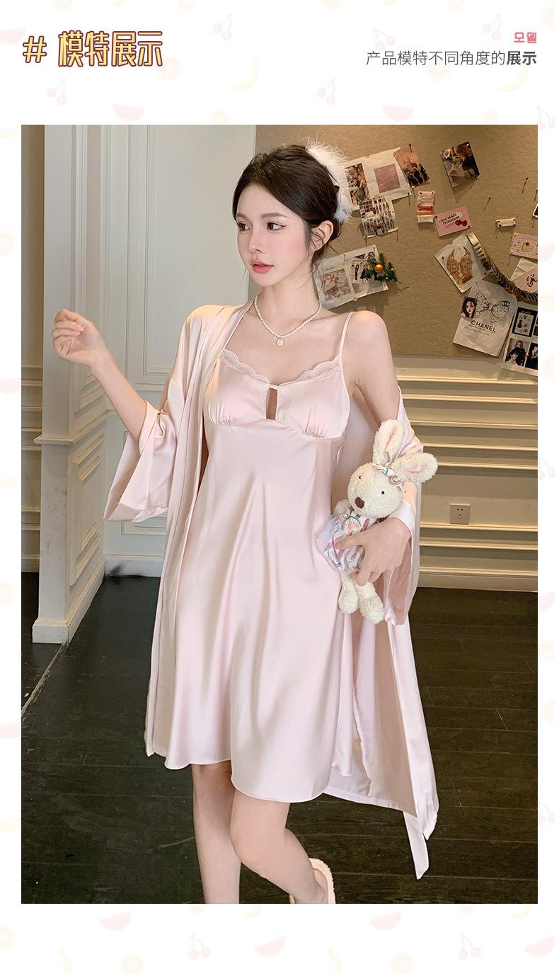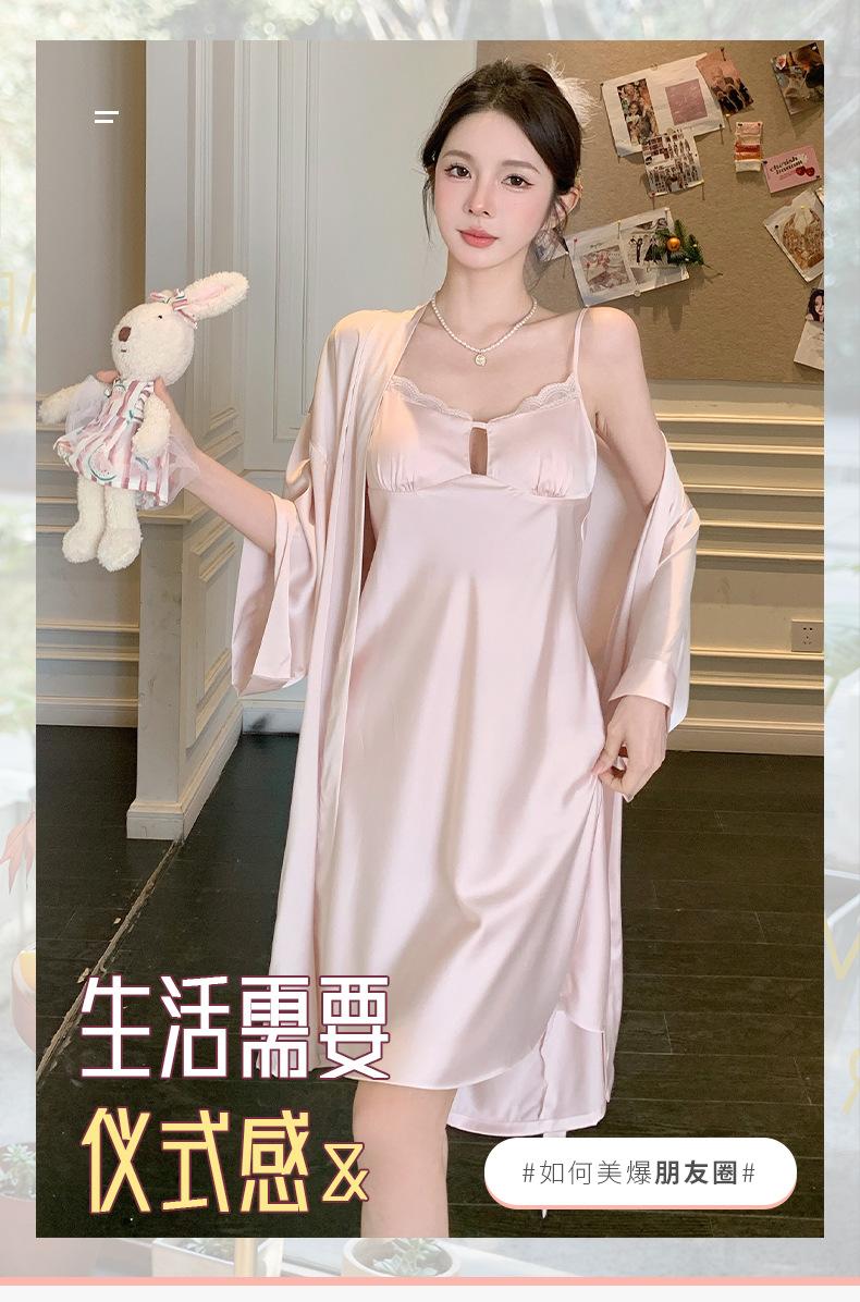Camisón de Seda de Hielo, Pijama Femenino de Tirantes, Camisón Delgado de Primavera y Otoño, Encaje con Copas, Conjunto de Ropa para el Hogar Puro Lust