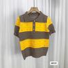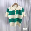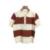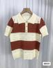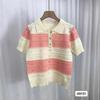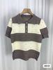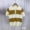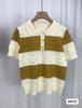 Playera de Manga Corta con Cuello Polo a Rayas Blancas y Negras para Mujer, Verano Delgada Calada Tejido de Seda Helada Holgada Top Trendy
