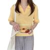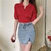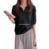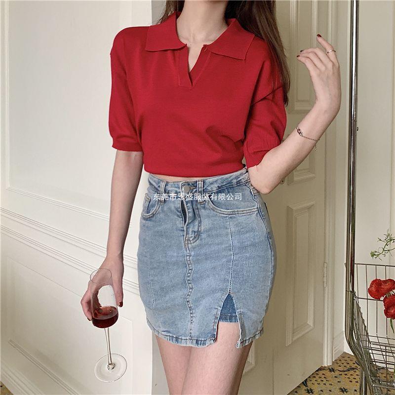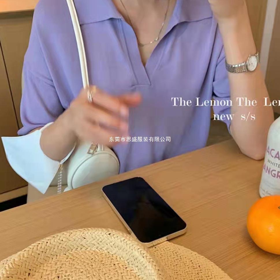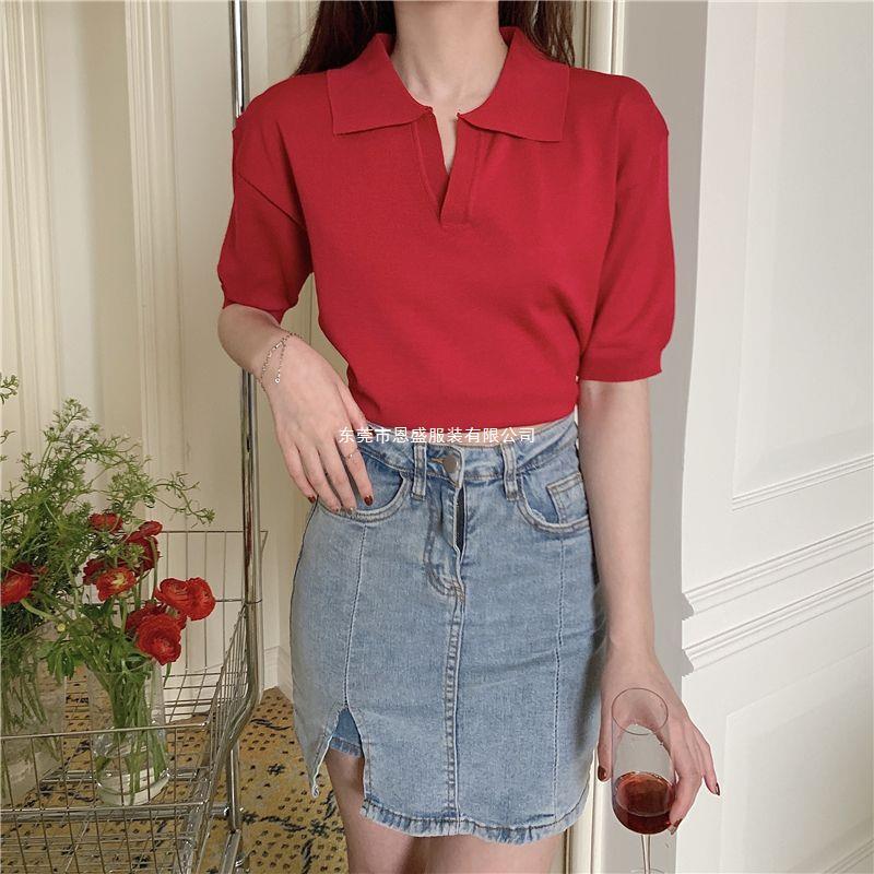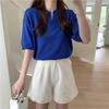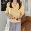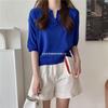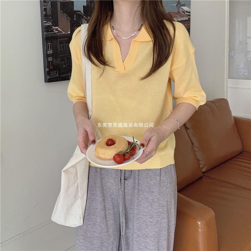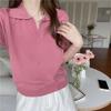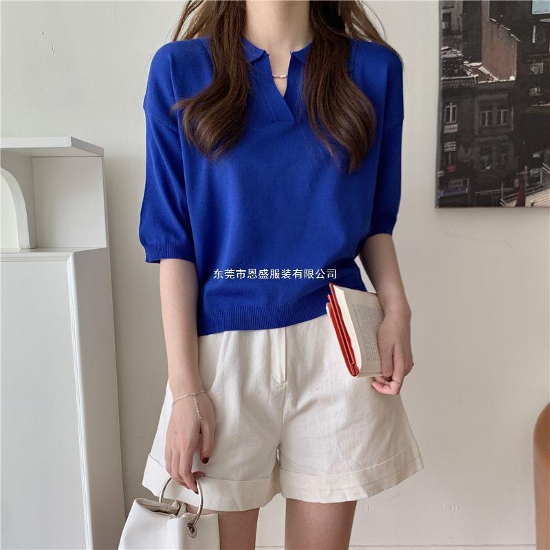 Verano 2024 Nuevo Estilo Coreano Holgado Adelgazante Top Cuello Polo Estilo Suave Seda de Hielo Manga Corta Camiseta Tejida para Mujer