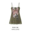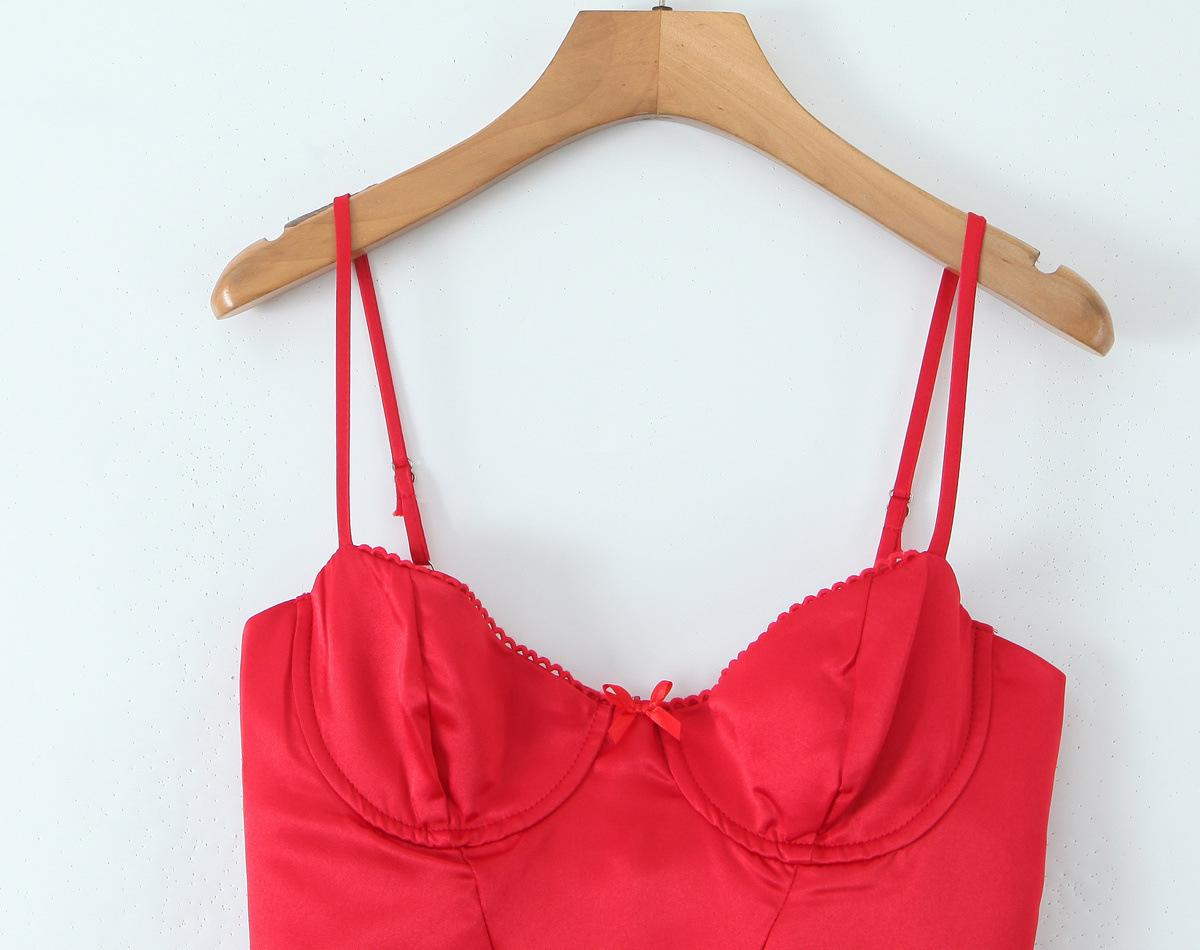 Moda Primavera 2025 Nuevo Vestido Rojo de Tirantes para Mujer Francés Ajustado con Aros Decorado con Lazo Falda Corta