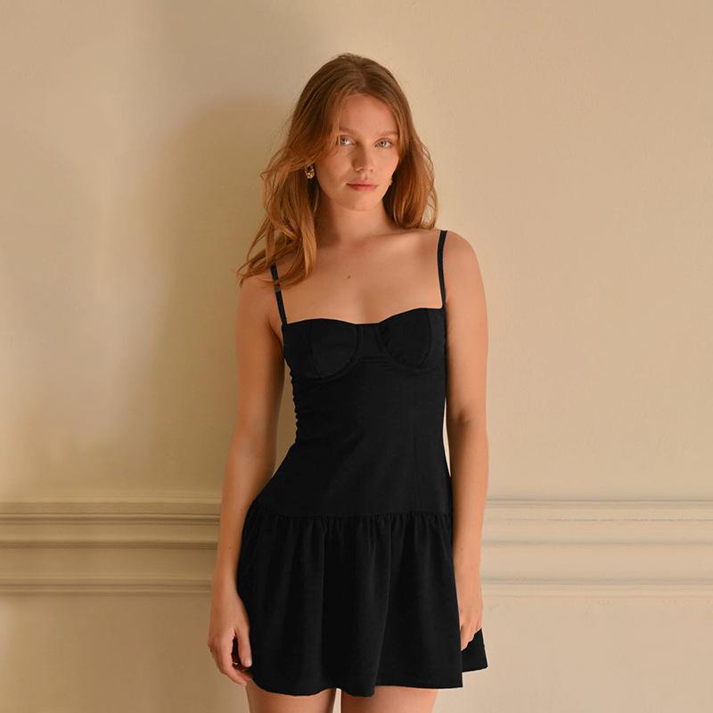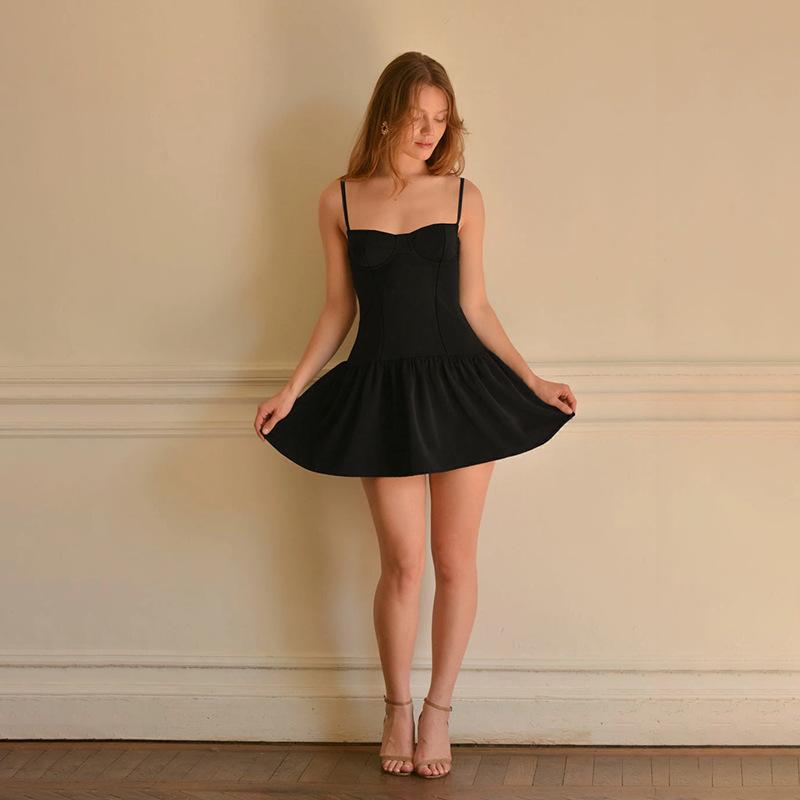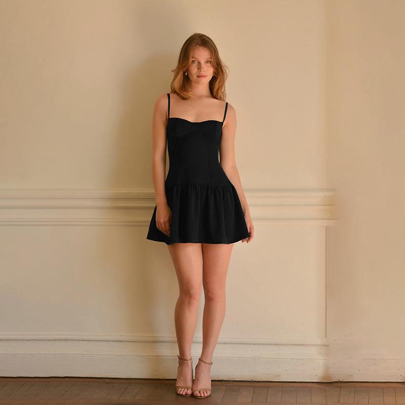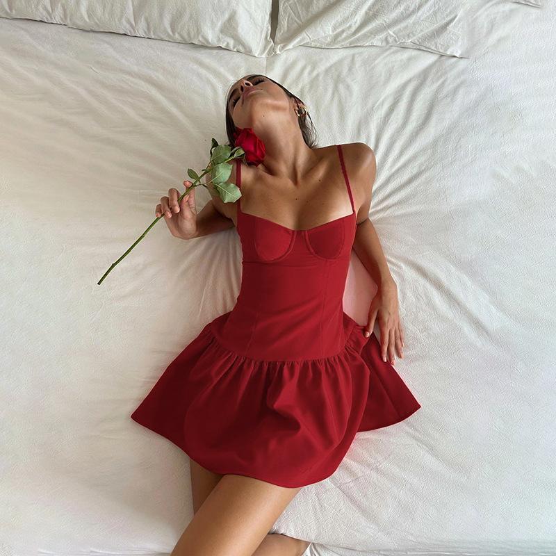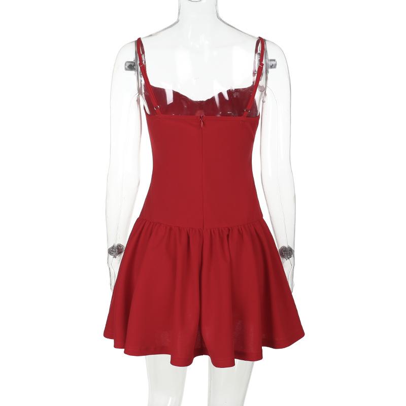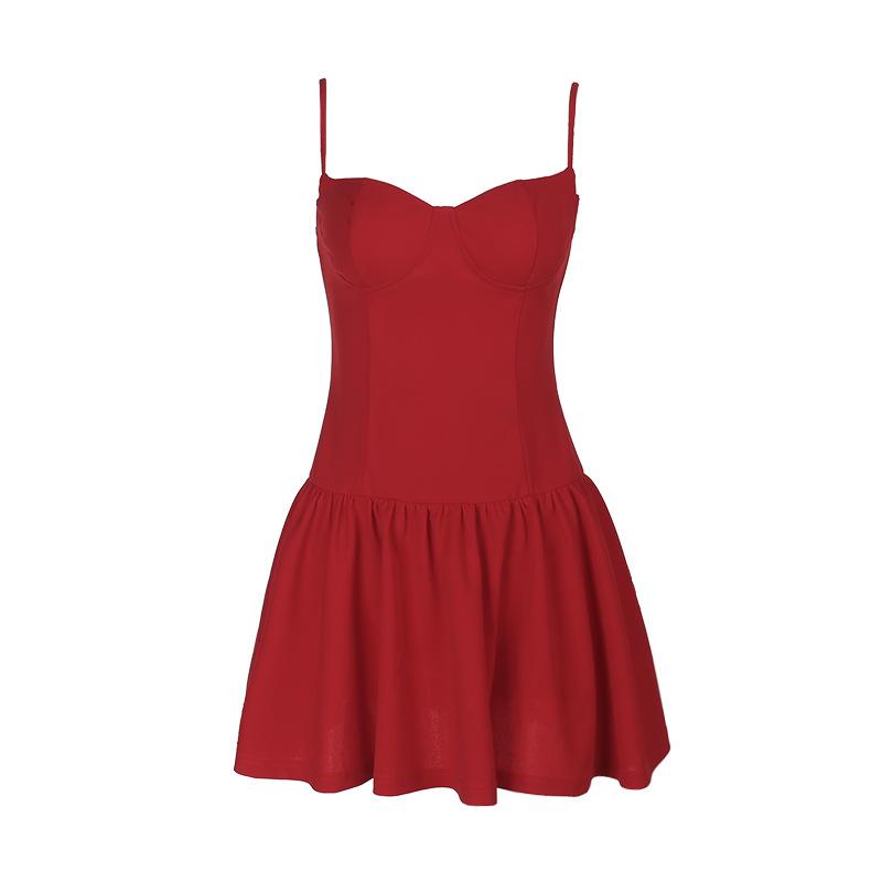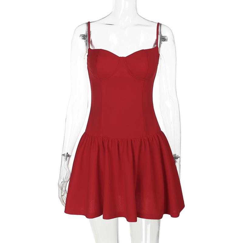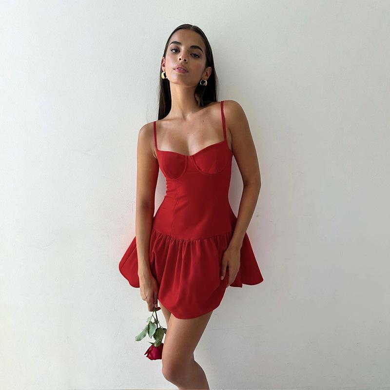 Vestido Nuevo Transfronterizo 2025 con Tirantes Ajustados a la Cintura Popular Europeo y Americano Sexy Corte Bajo Falda Corta Paraguas para Mujeres en Verano