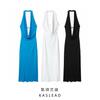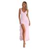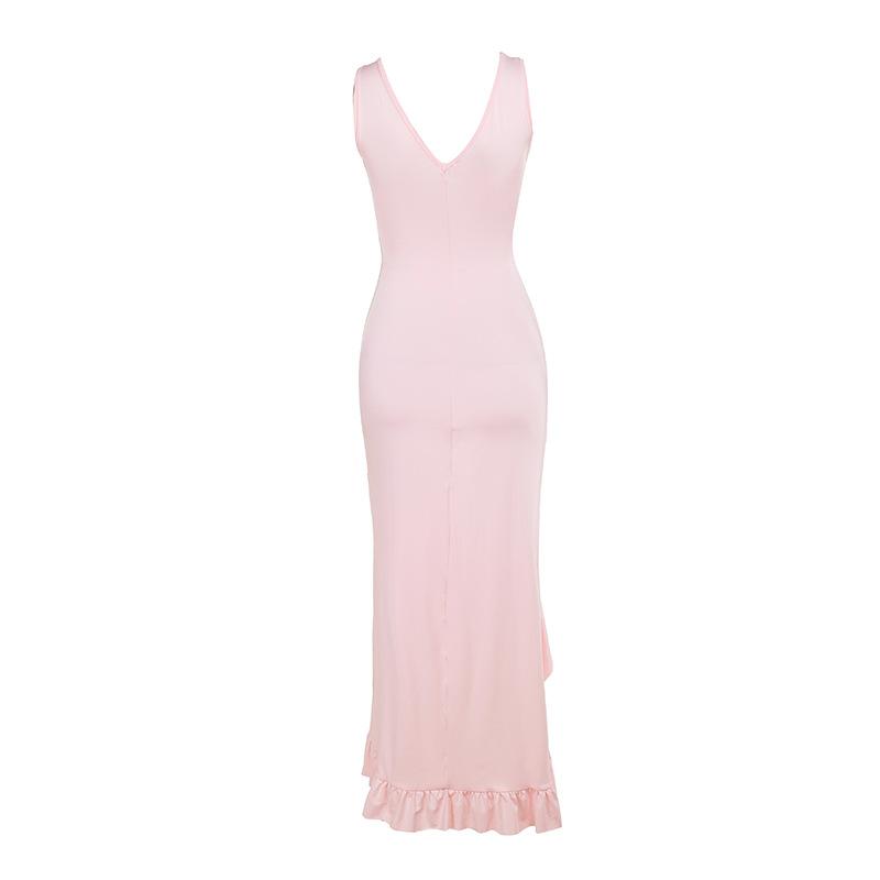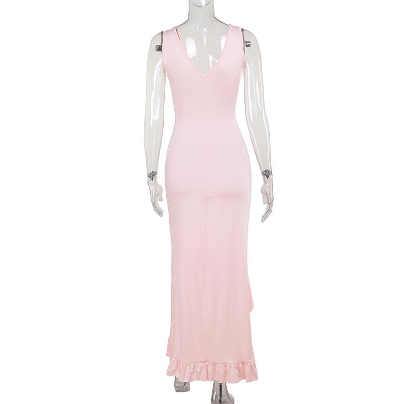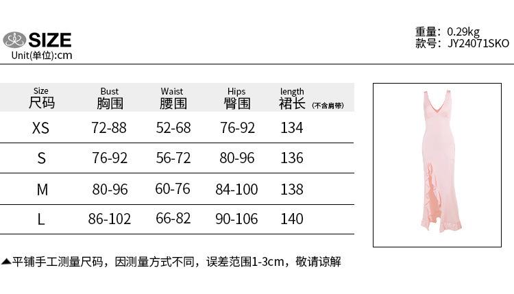 Nuevo vestido de tirantes delgados para primavera y verano 2024, estilo europeo y americano, sexy, con cuello en V, volantes y abertura.