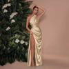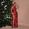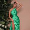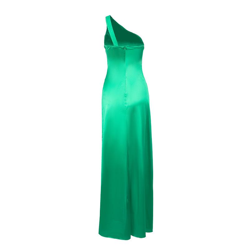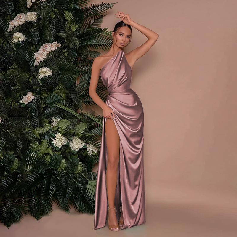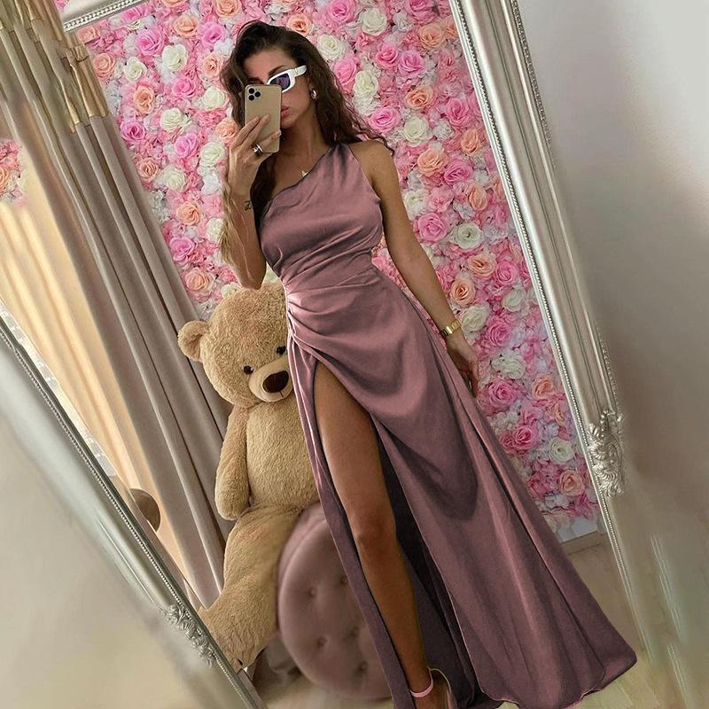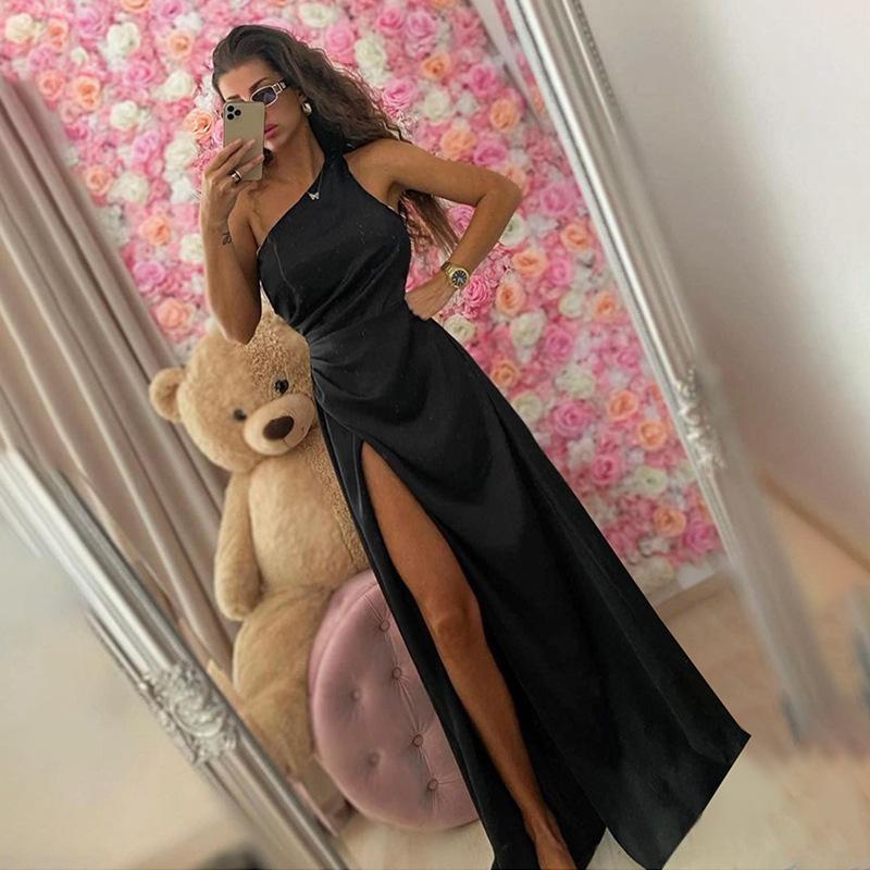 Vestido Sexy de Satén con Abertura de un Hombro para Mujer Estilo Europeo y Americano Transfronterizo Nuevo Estilo Falda Larga a la Moda
