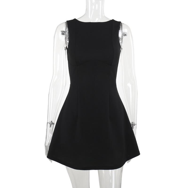 Vestido corto ajustado sexy de verano 2024, nuevo, estilo europeo y americano, sin espalda, básico.