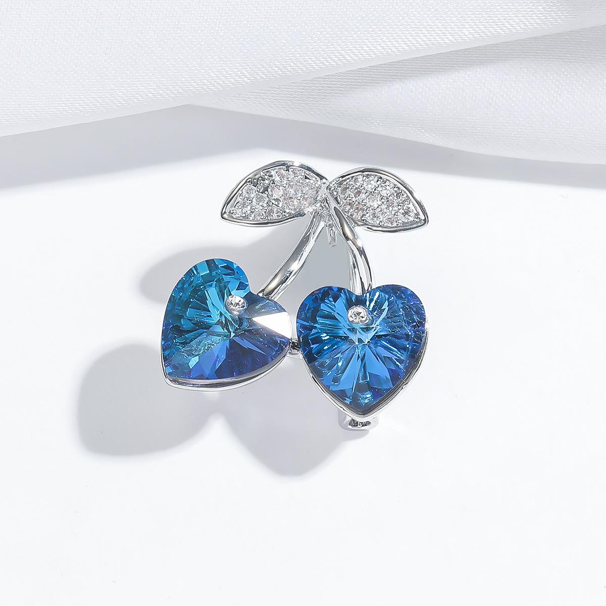 Broche para Mujer Azul Cereza Amor Circonita Broche Estéreo Corsage para Mujer Estilo Coreano Elegante Traje Abrigo Pin Hebilla