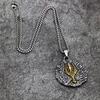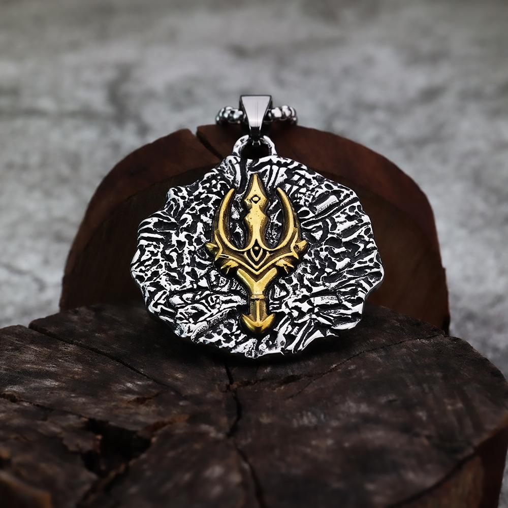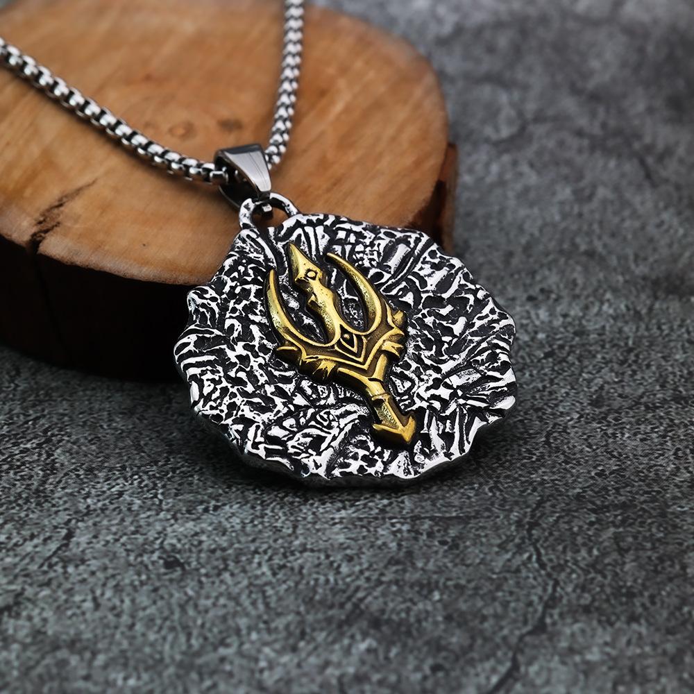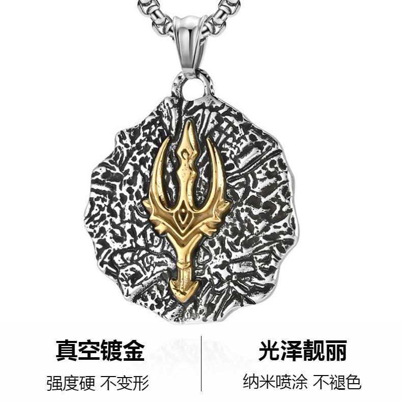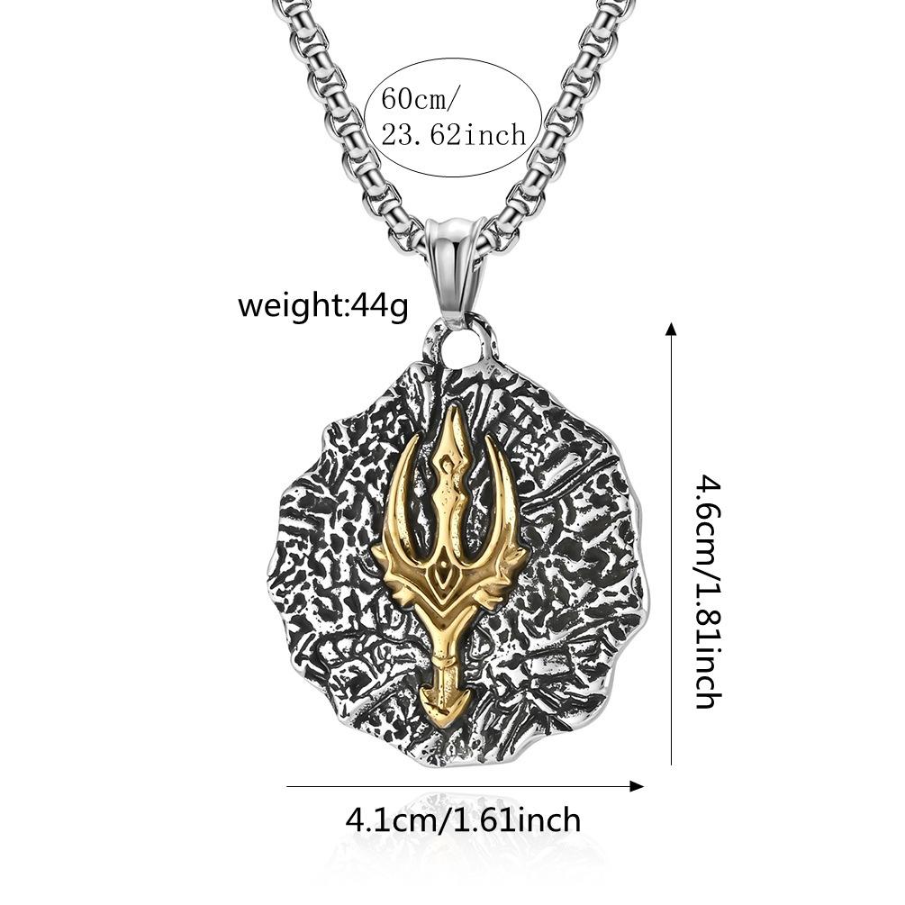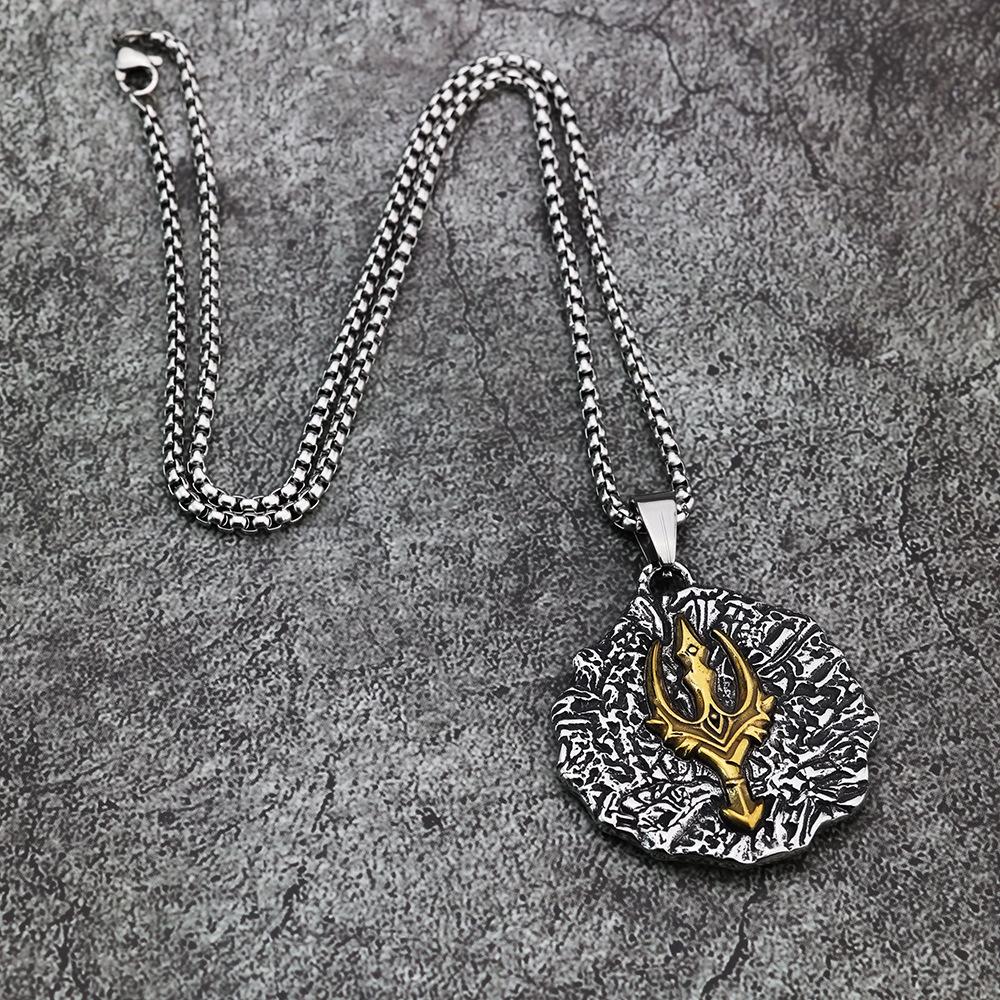 Collar de Acero Inoxidable con Colgante Redondo Dorado de Poseidón Tridente Personalizado Ojo de Horus Doble Cara