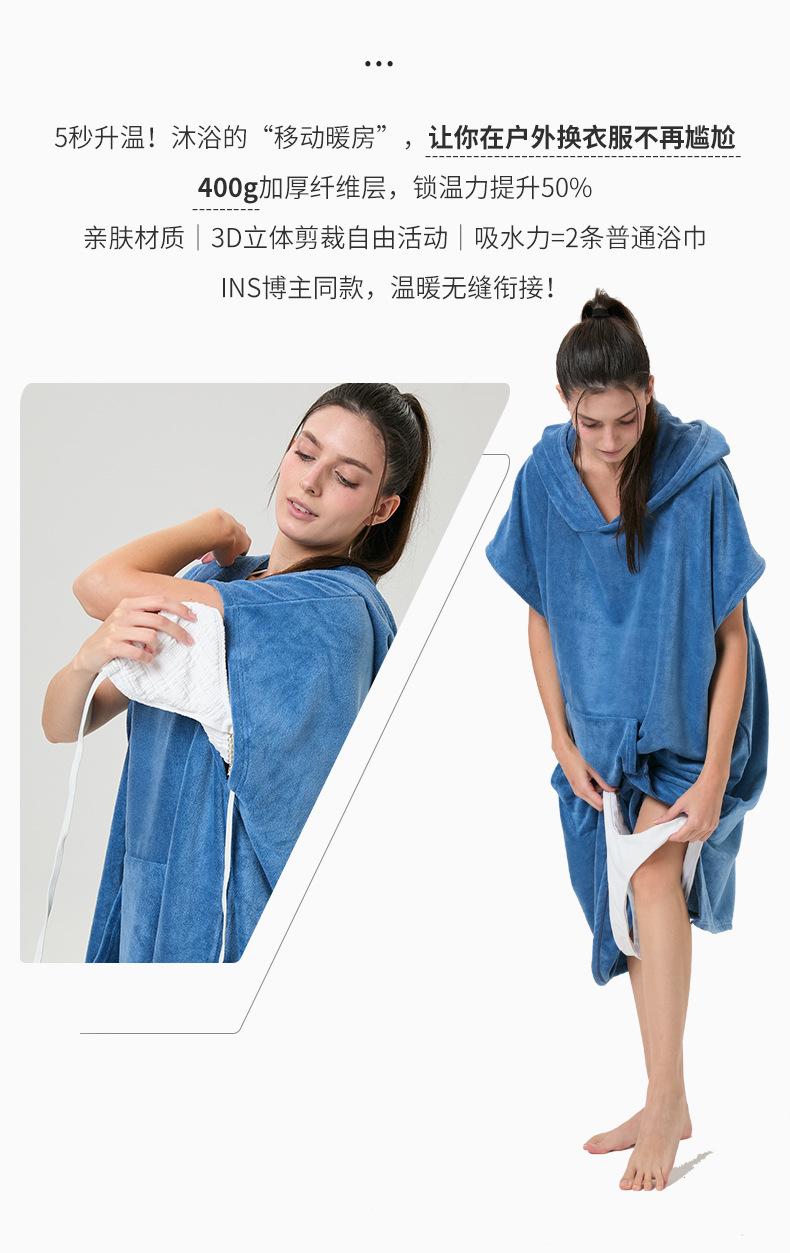Bata de baño con capucha absorbente gruesa nueva para adulto, capa de playa de secado rápido, microfibra, falda de baño larga, toalla de baño al por mayor