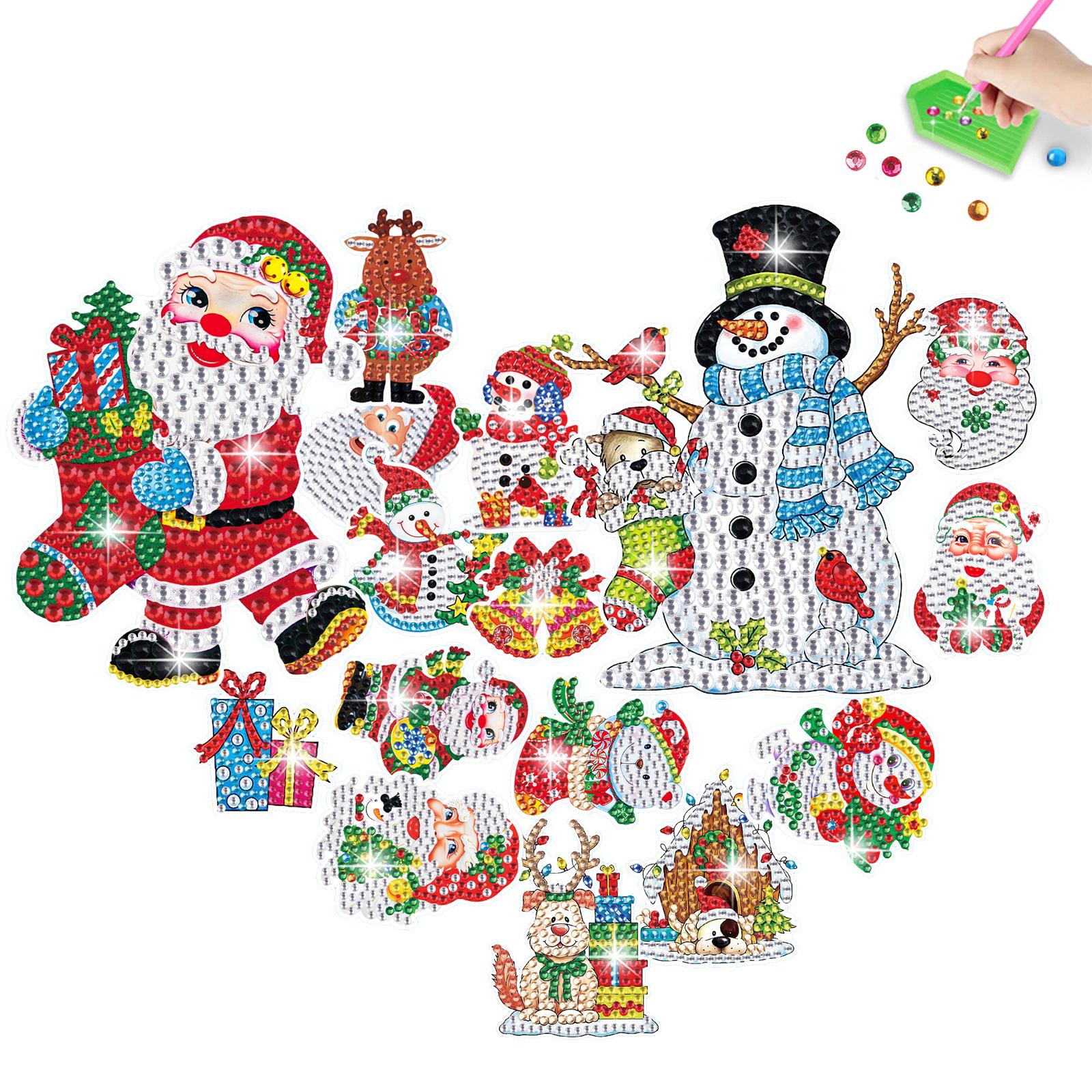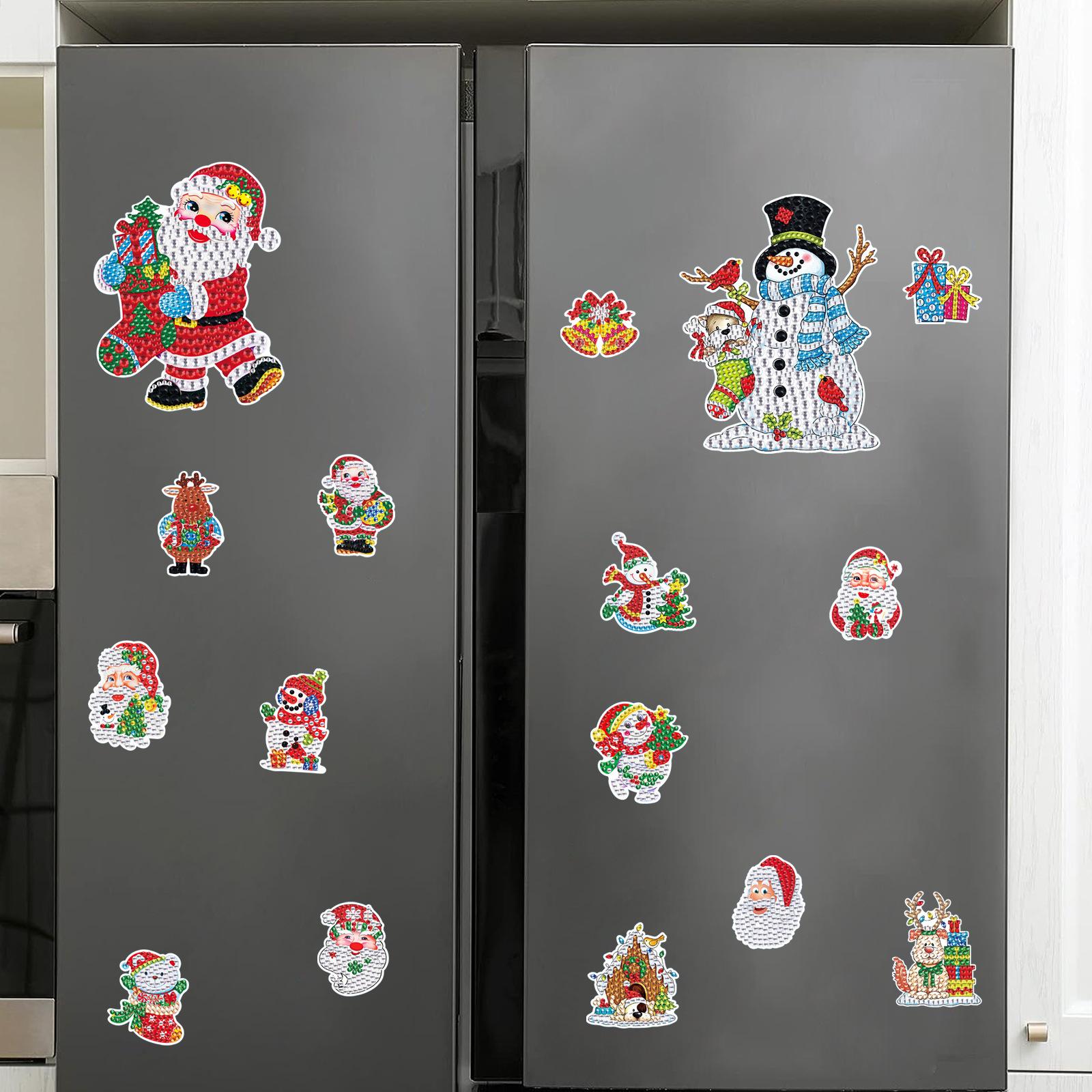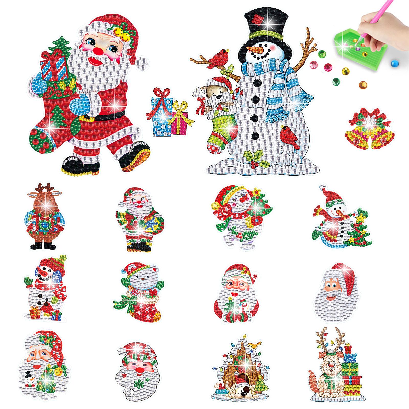 Pintura de Diamantes Navideña Transfronteriza DIY, Calcomanías de Pared de Papá Noel para Pegar Gratis, Pintura de Diamantes de Punto de Cristal de Muñeco de Nieve de Dibujos Animados