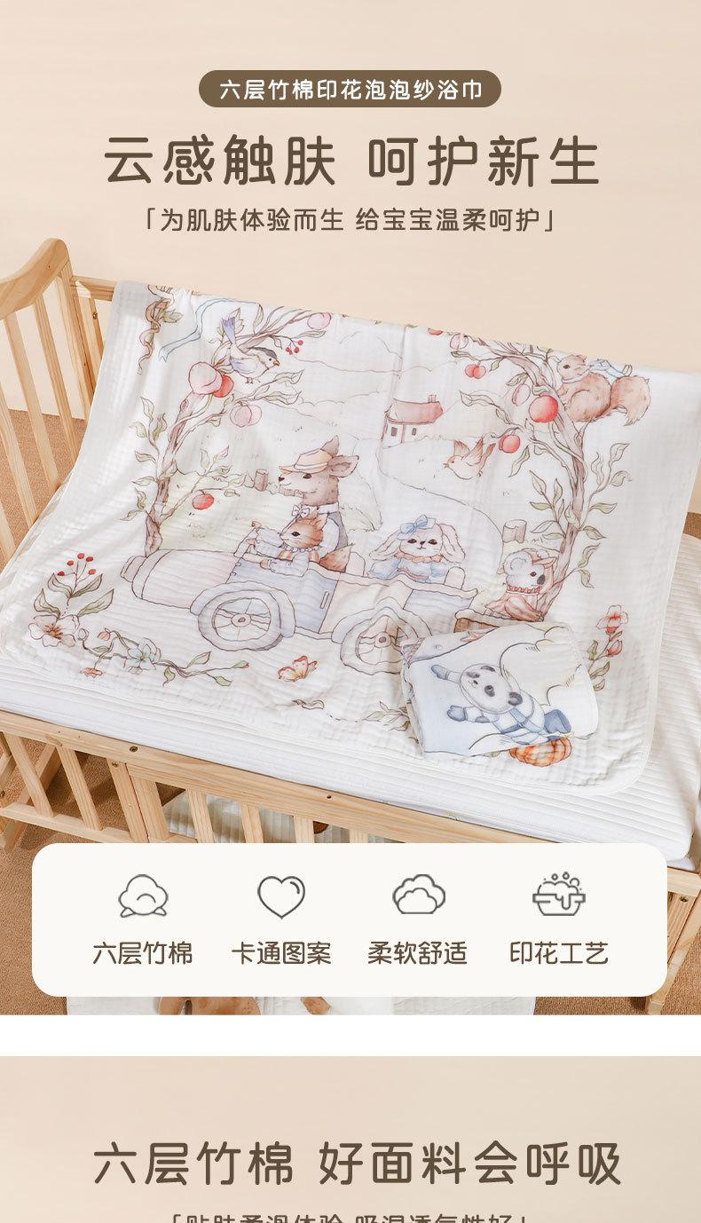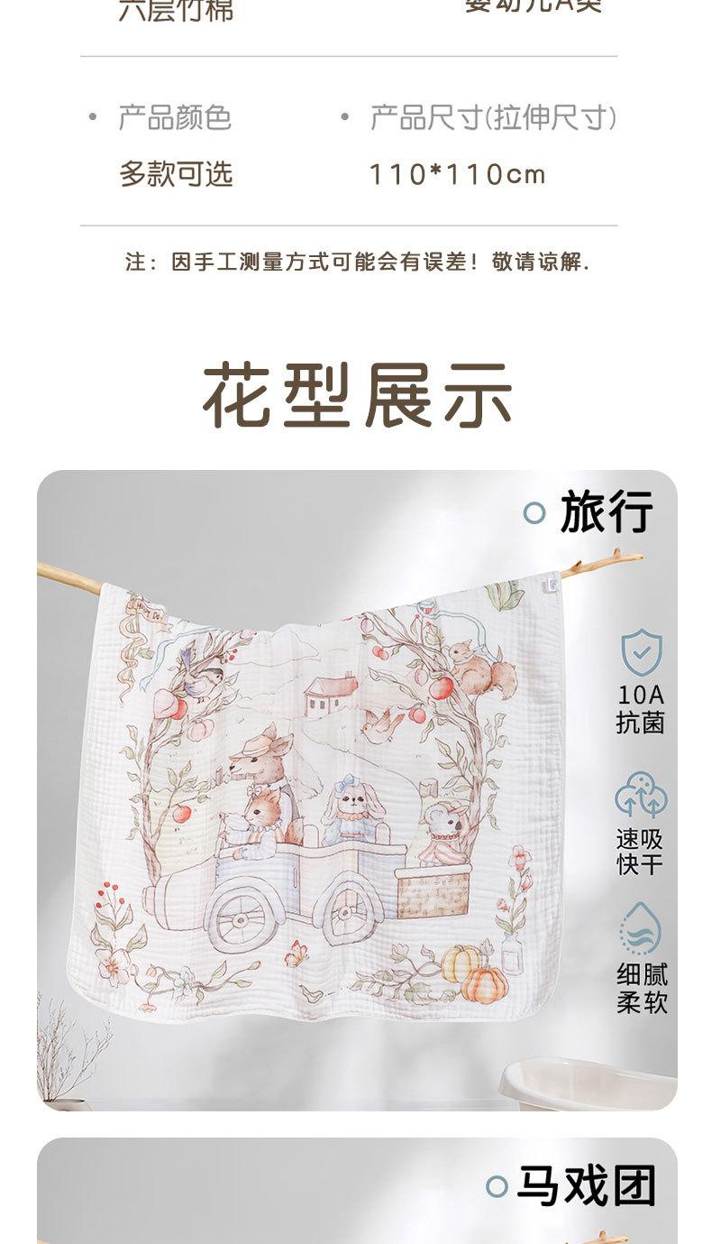 Toalla de Baño para Bebé Gasa de Algodón de Bambú Seis Capas Tamaño Grande Envoltura de Baño para Bebé Universal para Cuatro Estaciones Manta de Fibra de Bambú de Dibujos Animados