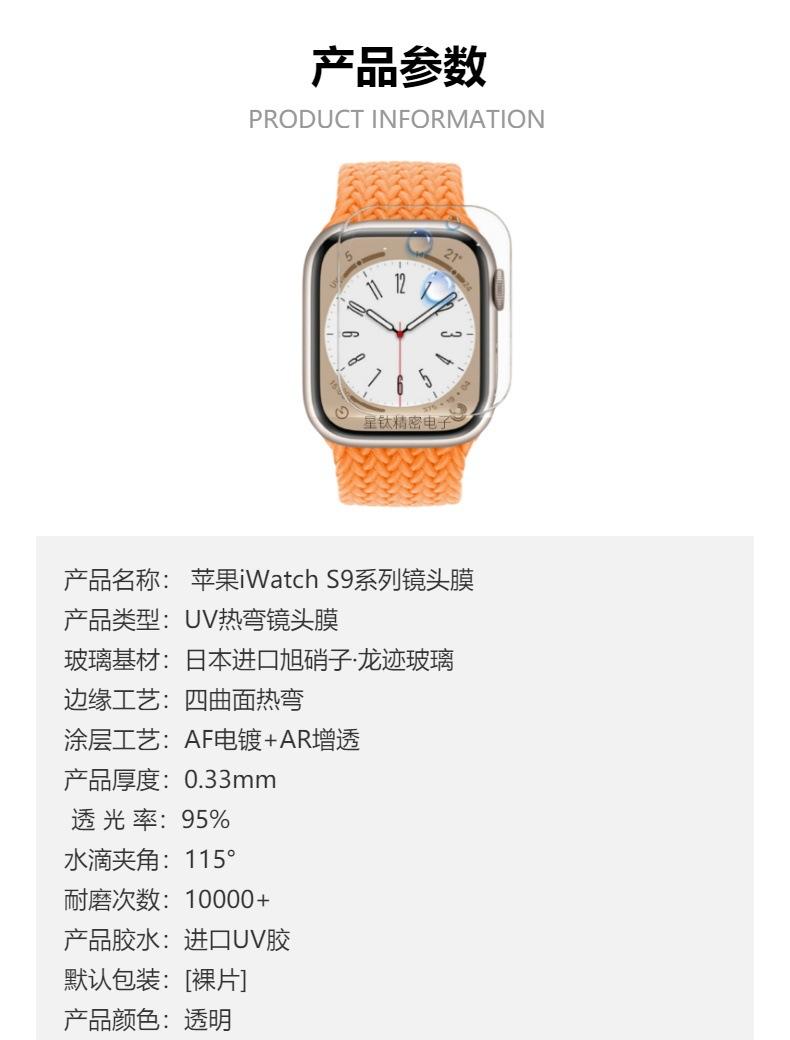 Para Apple Watch Película UV Adhesivo de Vidrio Templado Curvado en Caliente AppleWatchS9S10 Película Templada iwatch9 Película Protectora