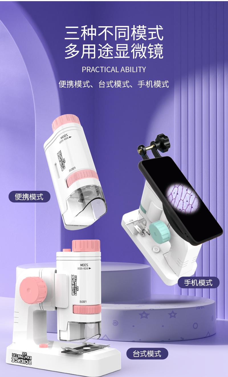 Microscopio Portátil Mini para Niños de Mano para Exterior con Base Estudiantes de Secundaria Experimento Científico Juguetes de Ciencia y Educación