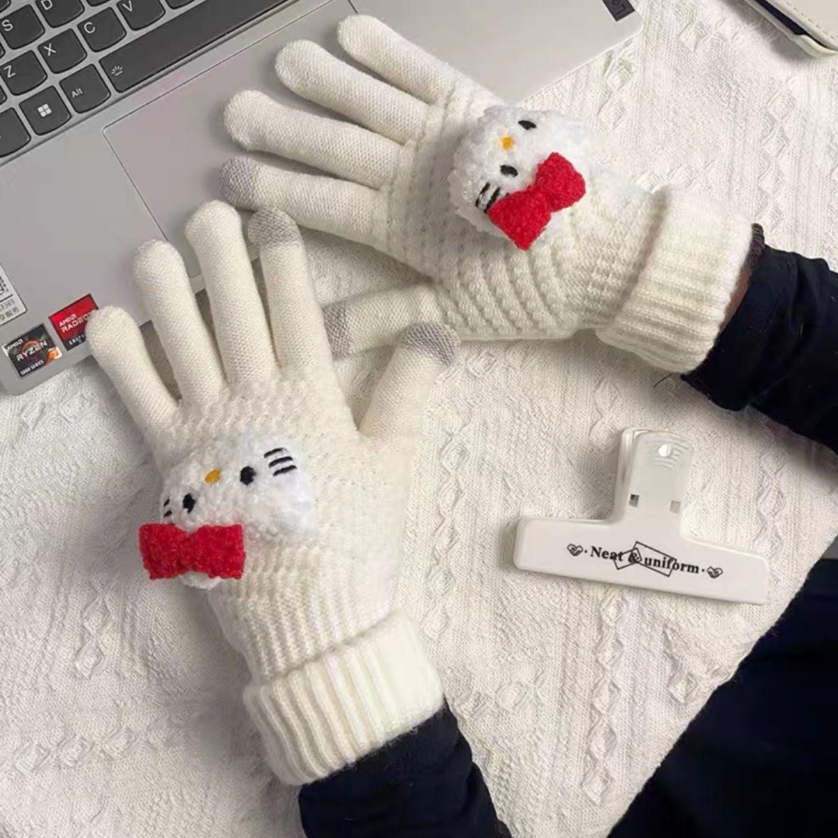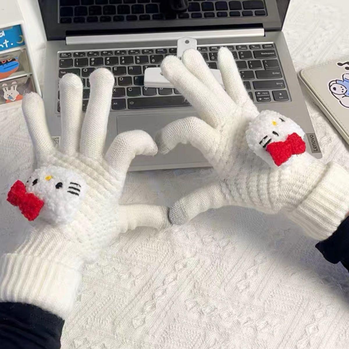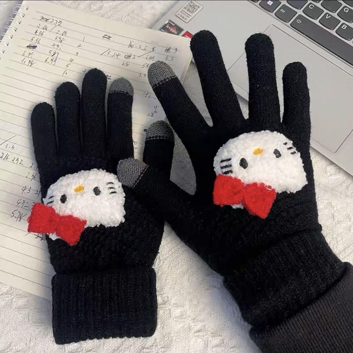 Guantes para gatito de color sólido con forro polar y compatibles con pantalla táctil para estudiantes, otoño e invierno, cálidos, gruesos, a prueba de frío, lindos, estilo coreano, de gato, a prueba de viento