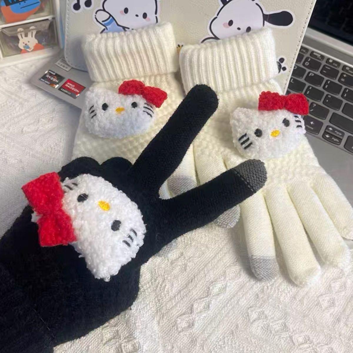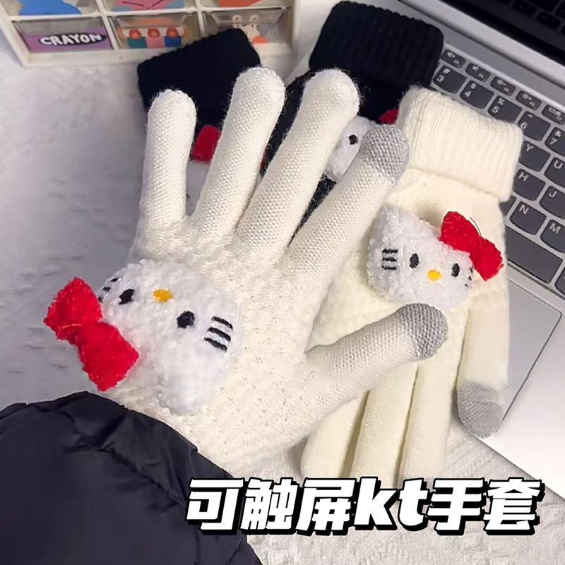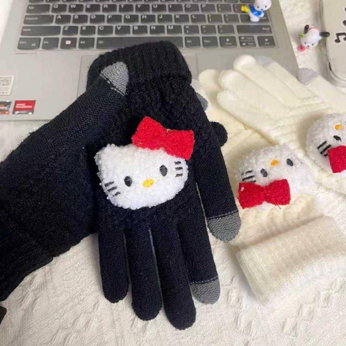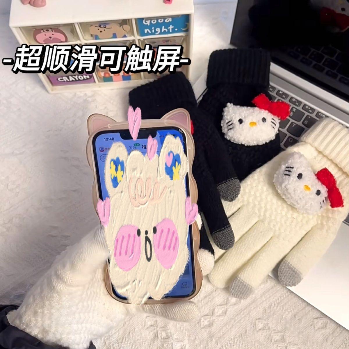 Guantes para gatito de color sólido con forro polar y compatibles con pantalla táctil para estudiantes, otoño e invierno, cálidos, gruesos, a prueba de frío, lindos, estilo coreano, de gato, a prueba de viento