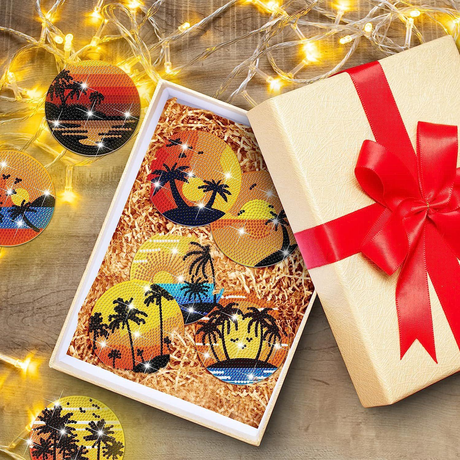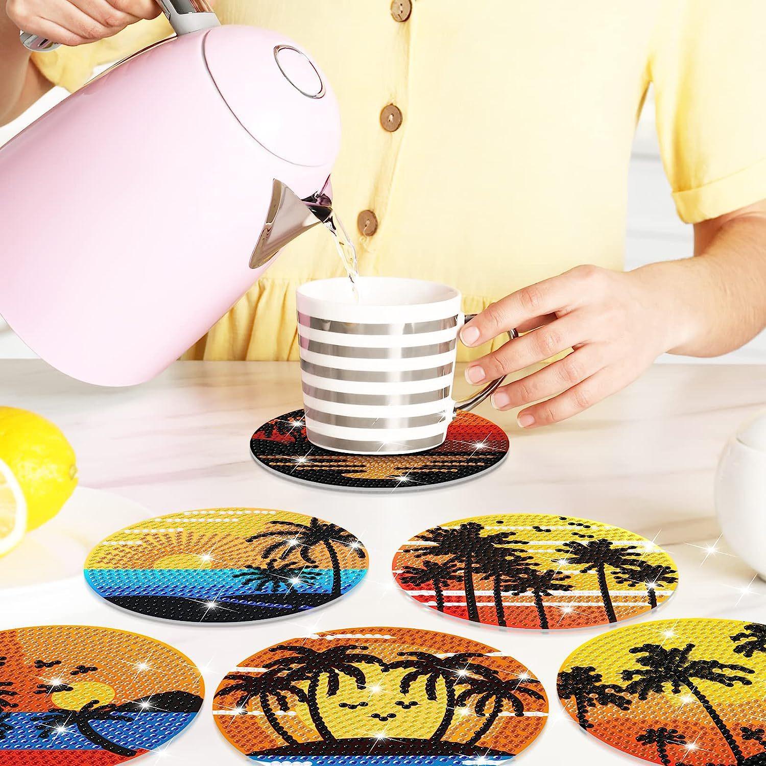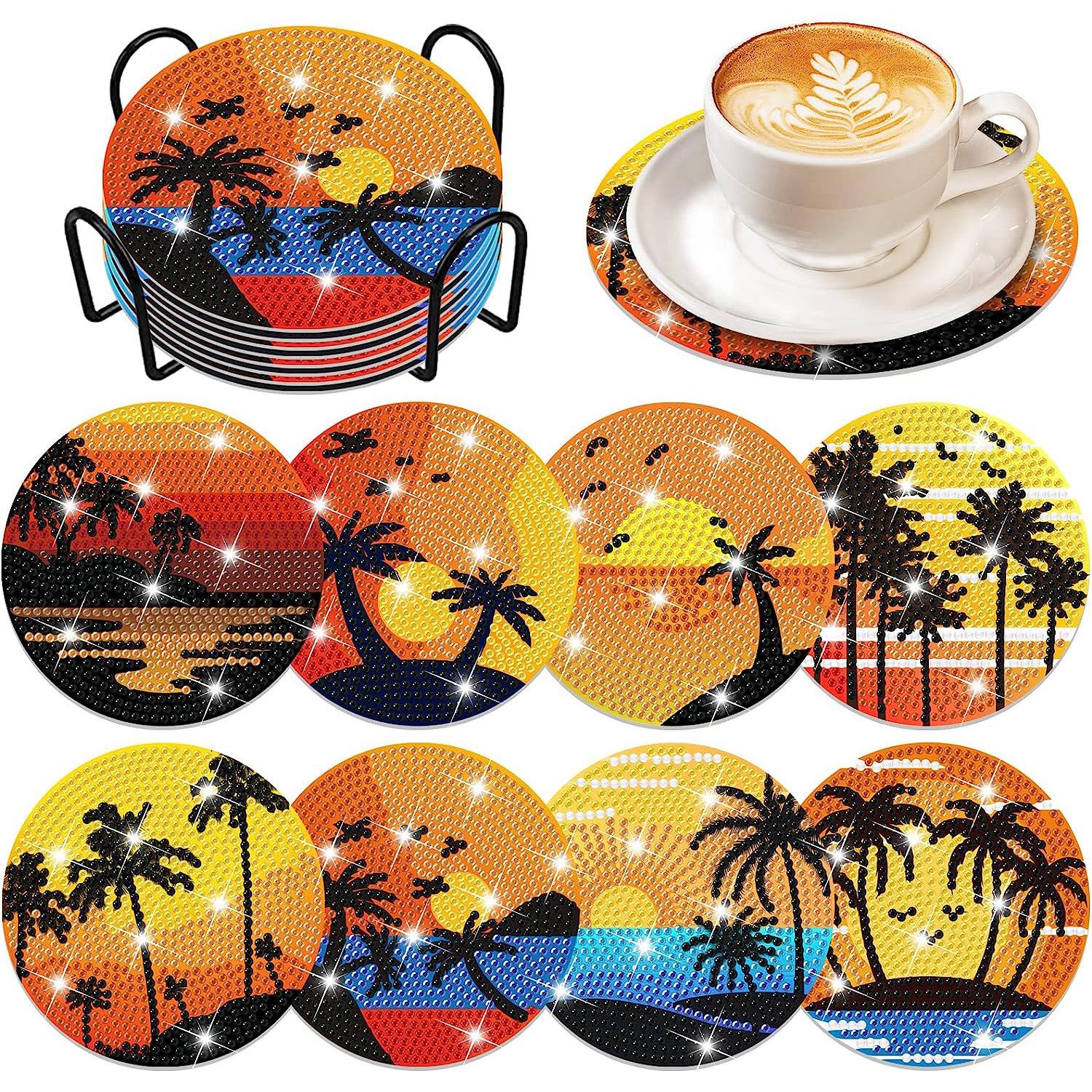 Posavasos de Pintura de Diamantes Transfronterizo 2025 Diamante Completo Tapete Aislante Térmico Mantel Individual para Mesa de Comedor DIY Estante Auto-contenido Alienígena Atardecer en Hawái