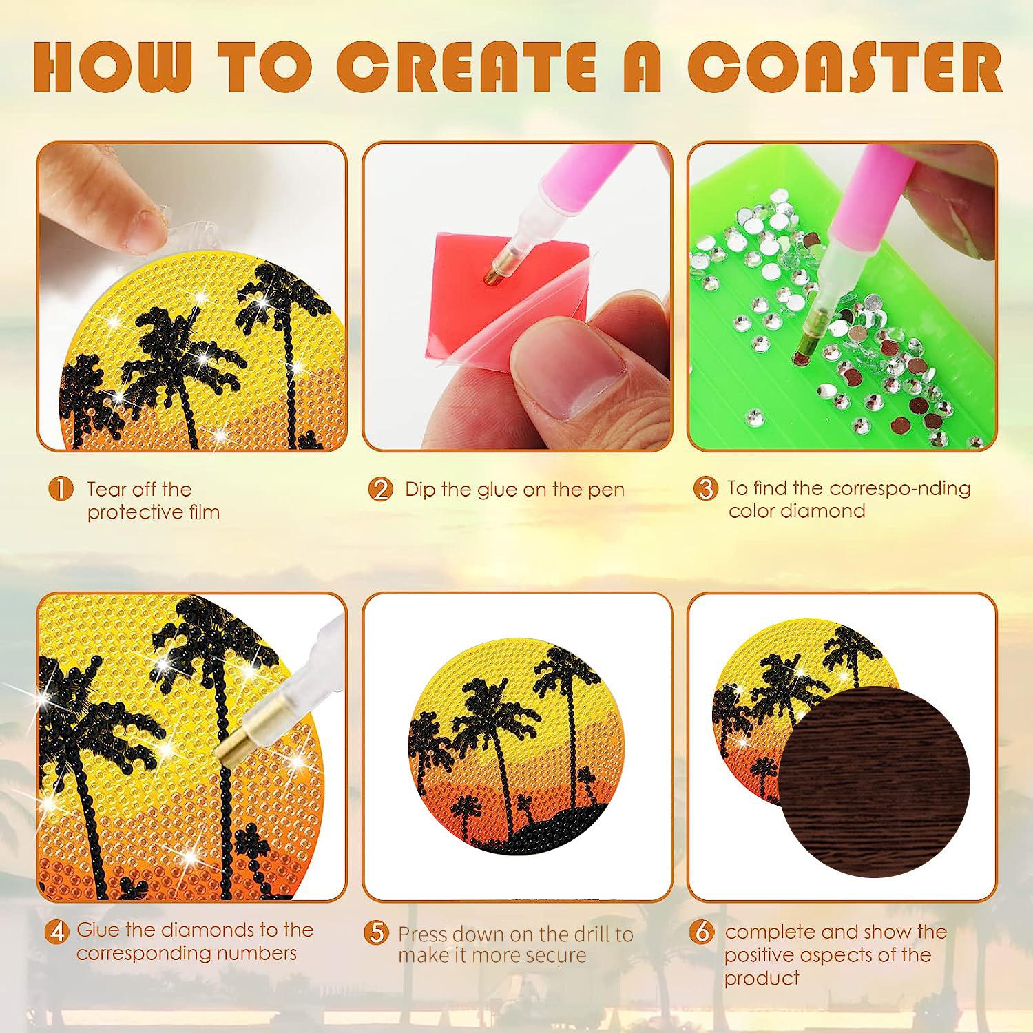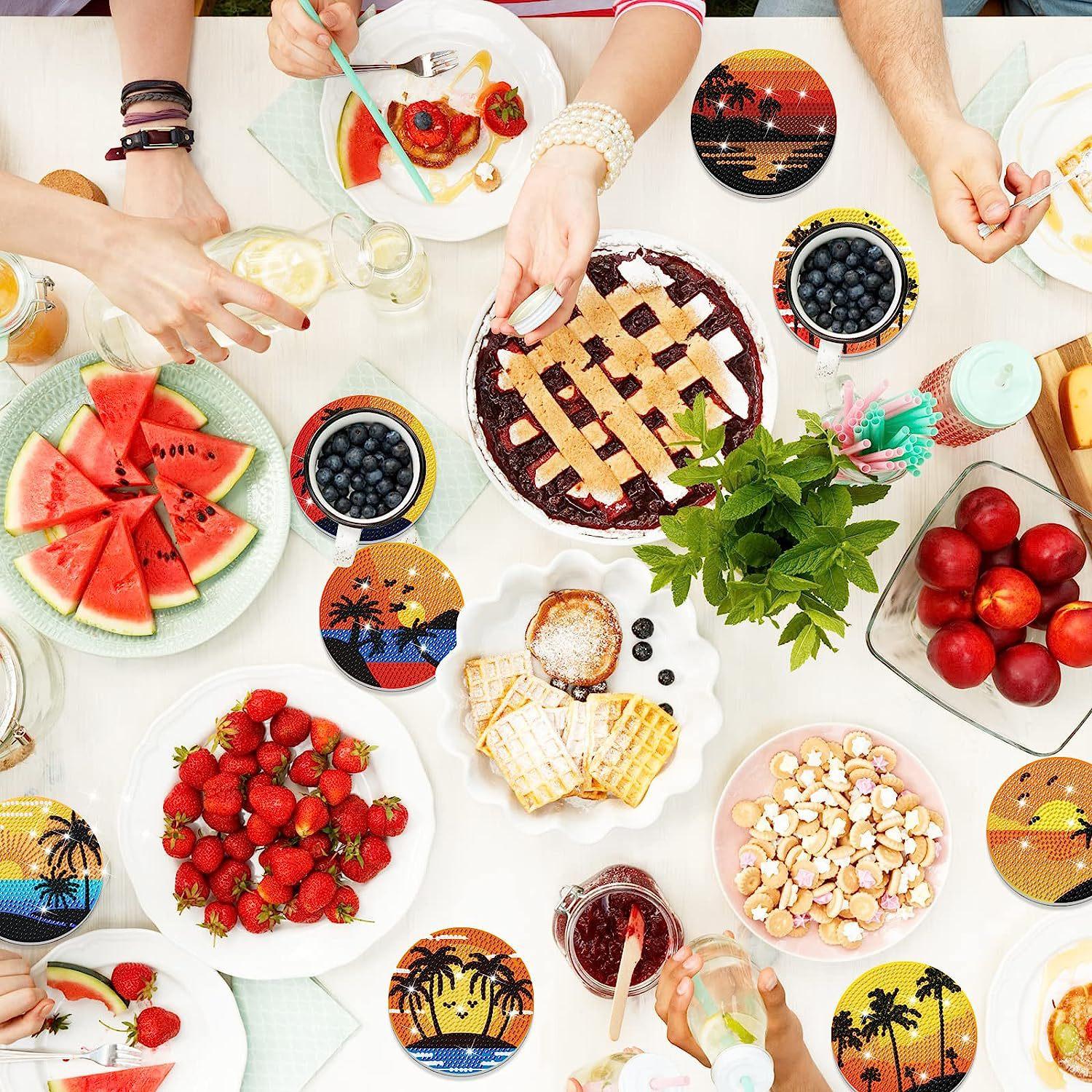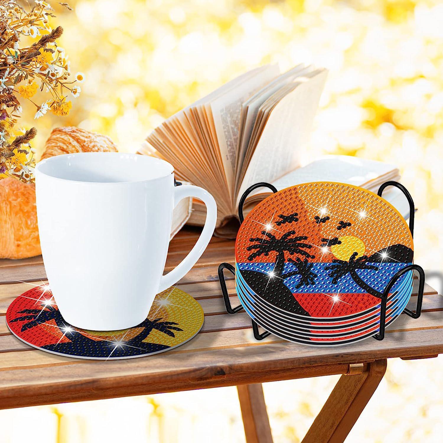 Posavasos de Pintura de Diamantes Transfronterizo 2025 Diamante Completo Tapete Aislante Térmico Mantel Individual para Mesa de Comedor DIY Estante Auto-contenido Alienígena Atardecer en Hawái