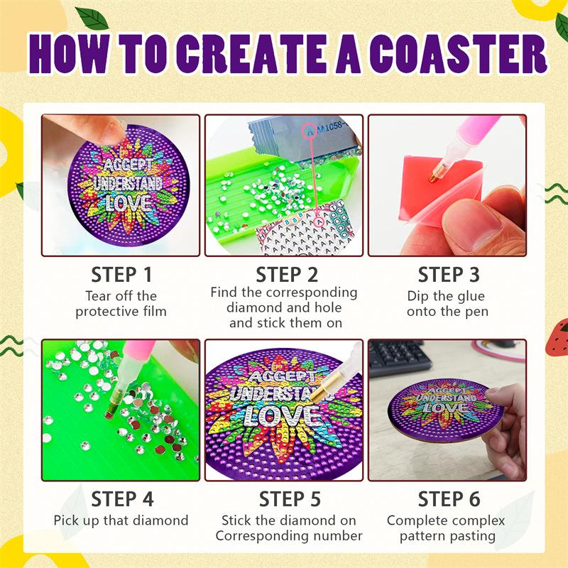 Posavasos de Pintura de Diamantes Transfronterizo 2025 Diamante Completo Amazon Tapete Aislante del Calor Tapete para Mesa de Comedor DIY Redondo Letras Autorack