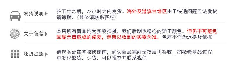 1. Problema de diferencia de color: Cada monitor de computadora es mayormente diferente, y los colores de los productos presentados varían. Las imágenes cargadas pueden cambiar debido a la pantalla de la computadora, y todo se basa en la muestra del producto proporcionada por la empresa.