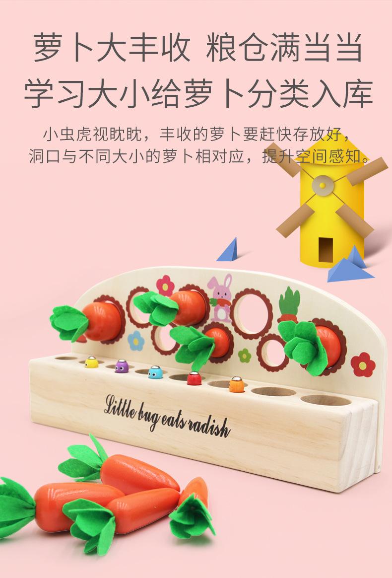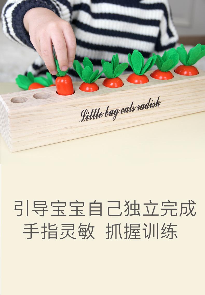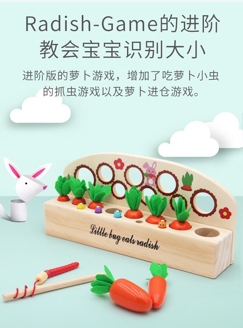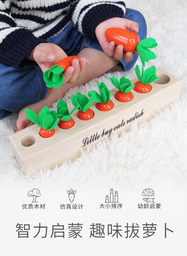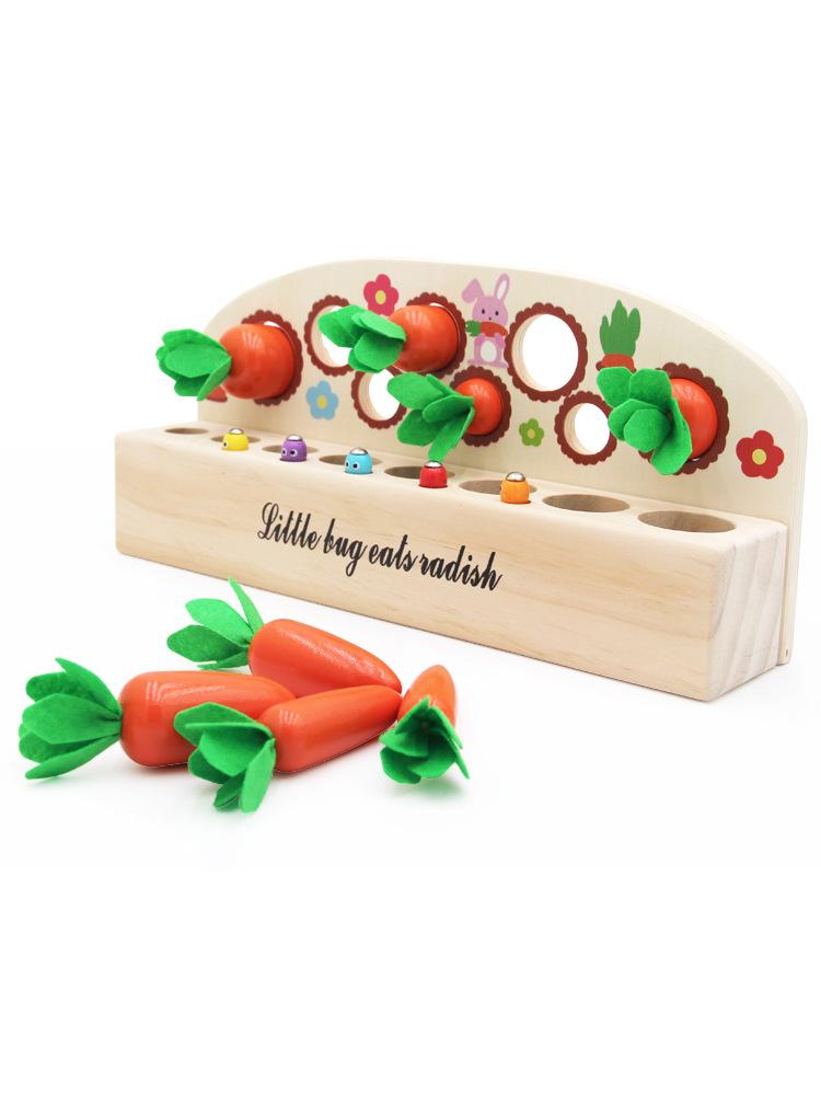 Nuevo Rábano de Madera para Jalar Juguete de Emparejamiento de Tamaños Verduras y Frutas Juego de Memoria Educación Temprana para Jardín de Niños Materiales Didácticos Montessori