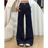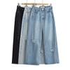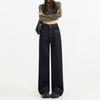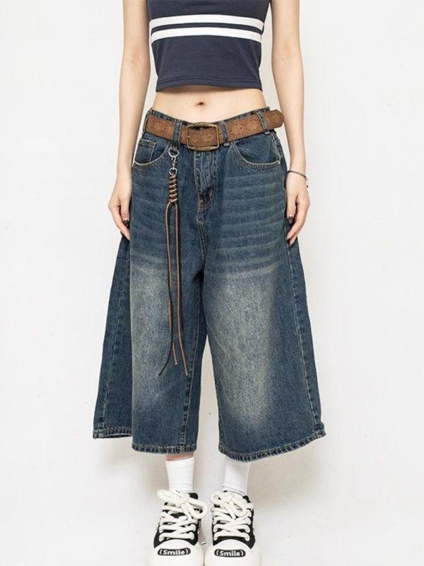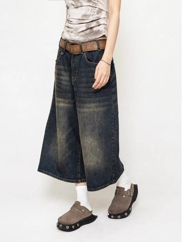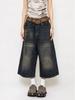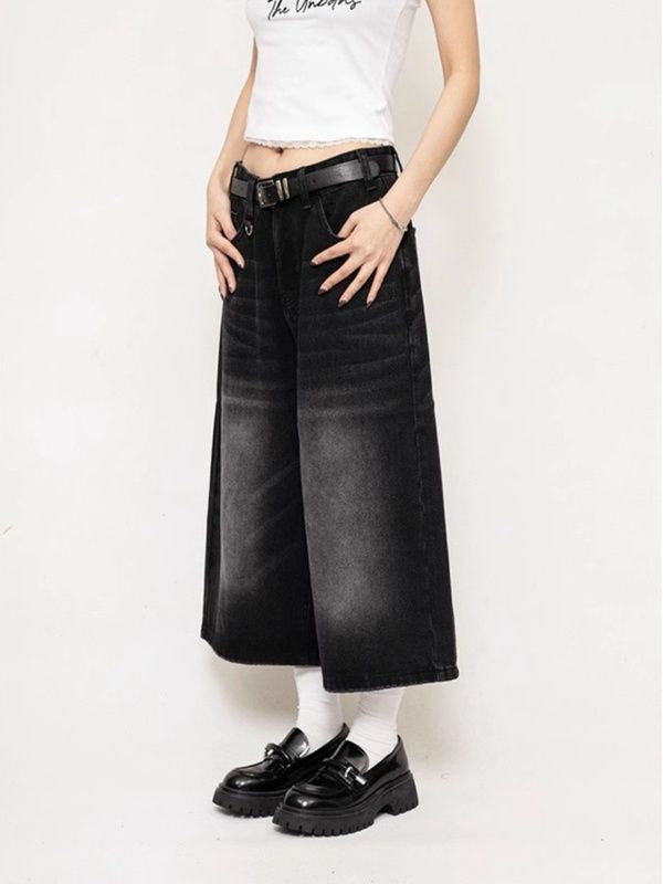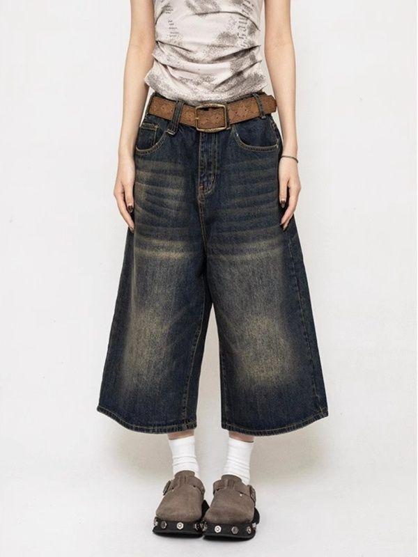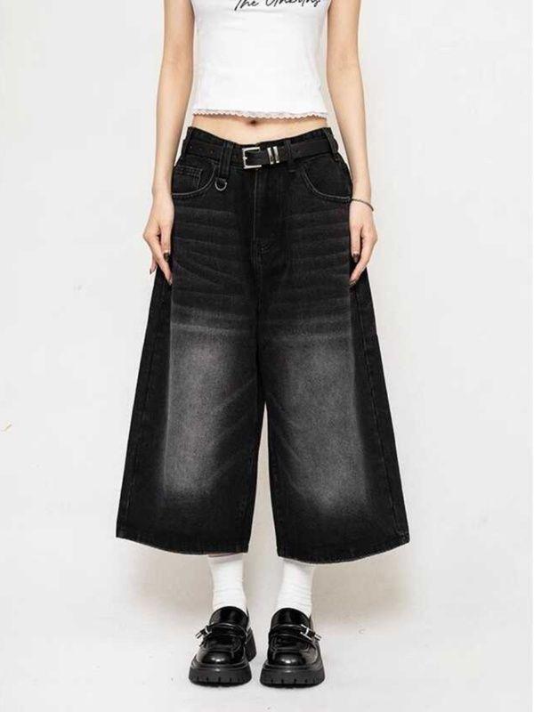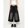 Pantalones cropped de mezclilla negra americana para mujer 2024 Verano Nuevo Retro Pantalones medios sueltos de pierna ancha Shorts rectos de moda