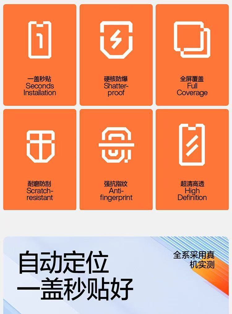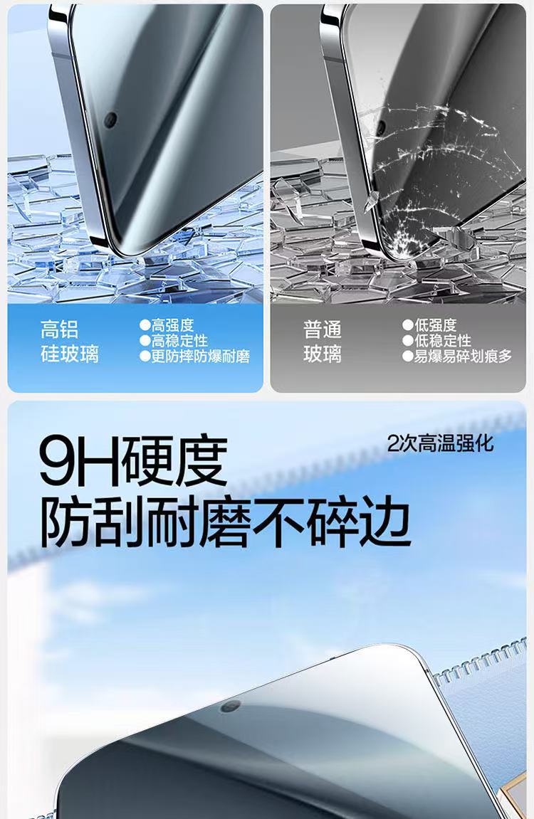 3. Tras más de 4 horas de templado, incluso si el cristal se rompe, no hay que preocuparse por dañar la pantalla. La dureza y la superficie de la película templada están totalmente garantizadas con una resistencia de 9H.