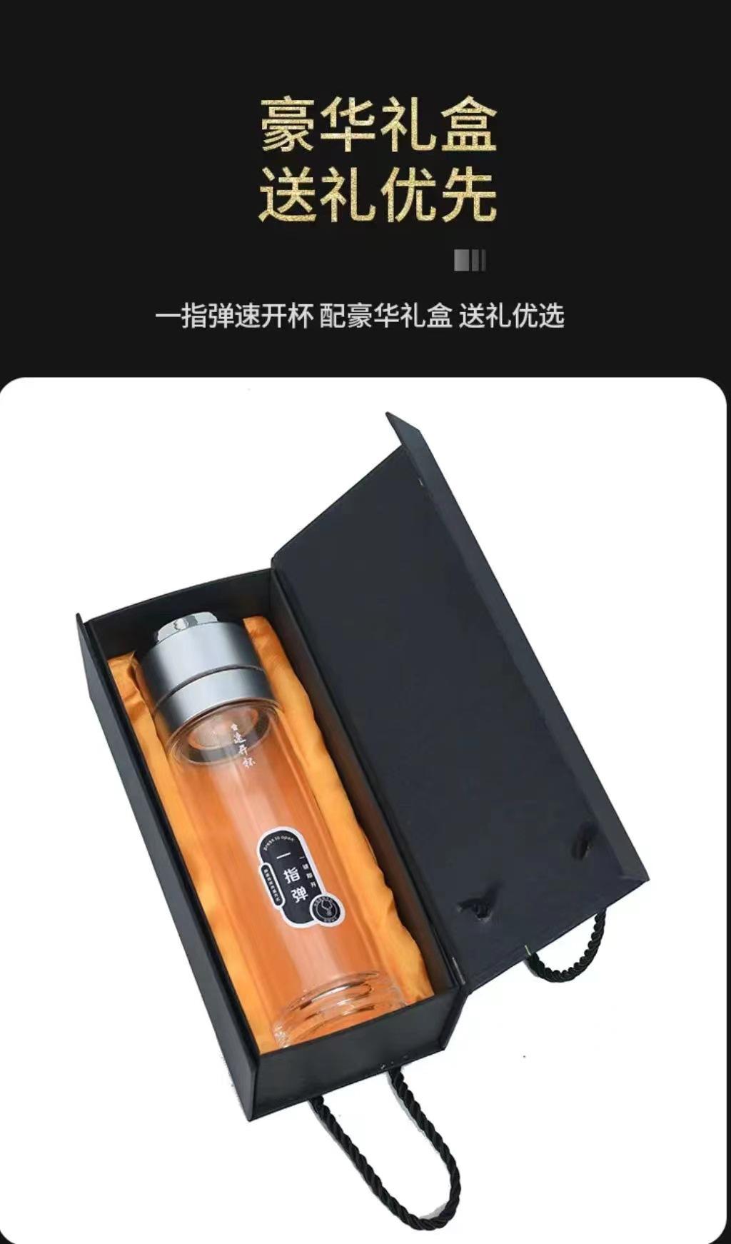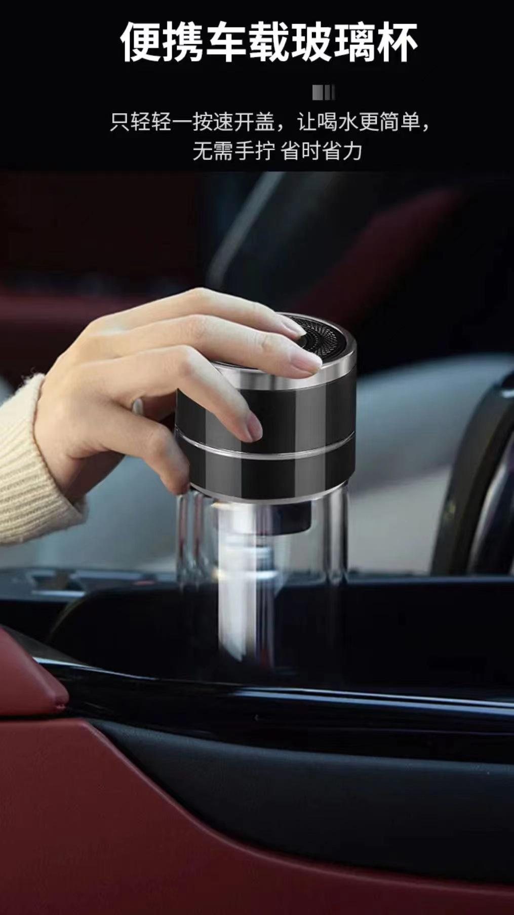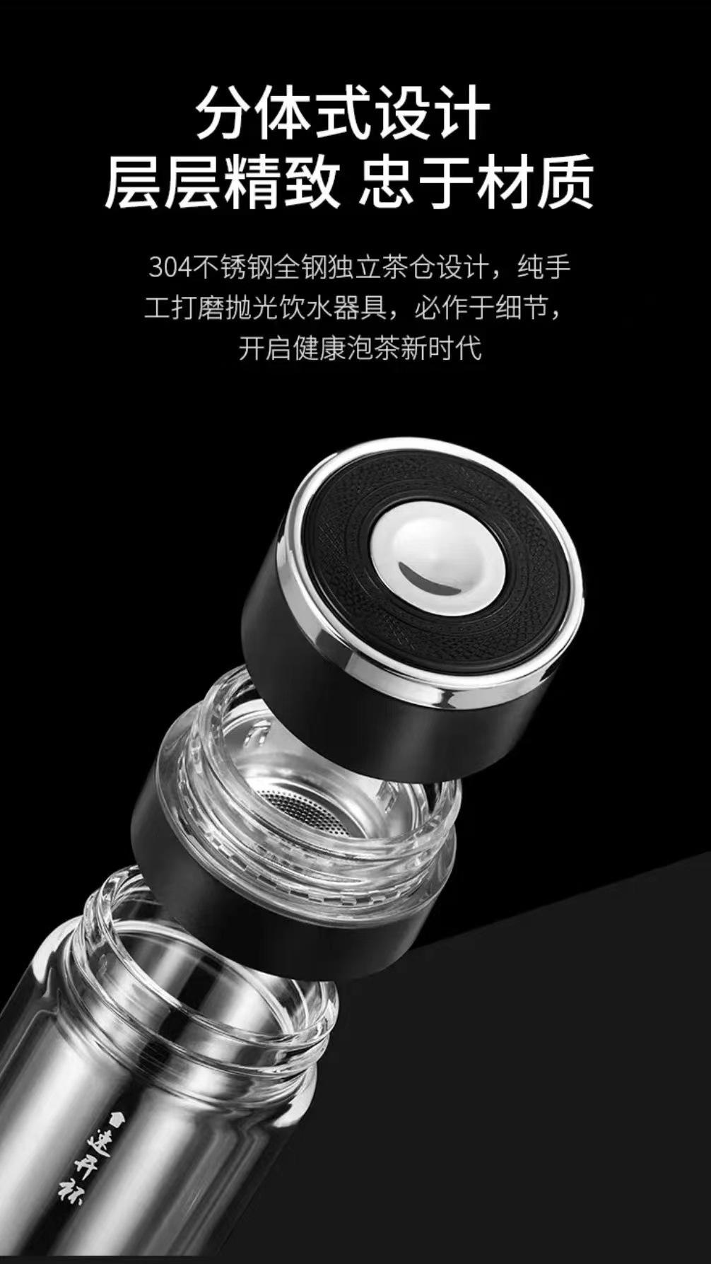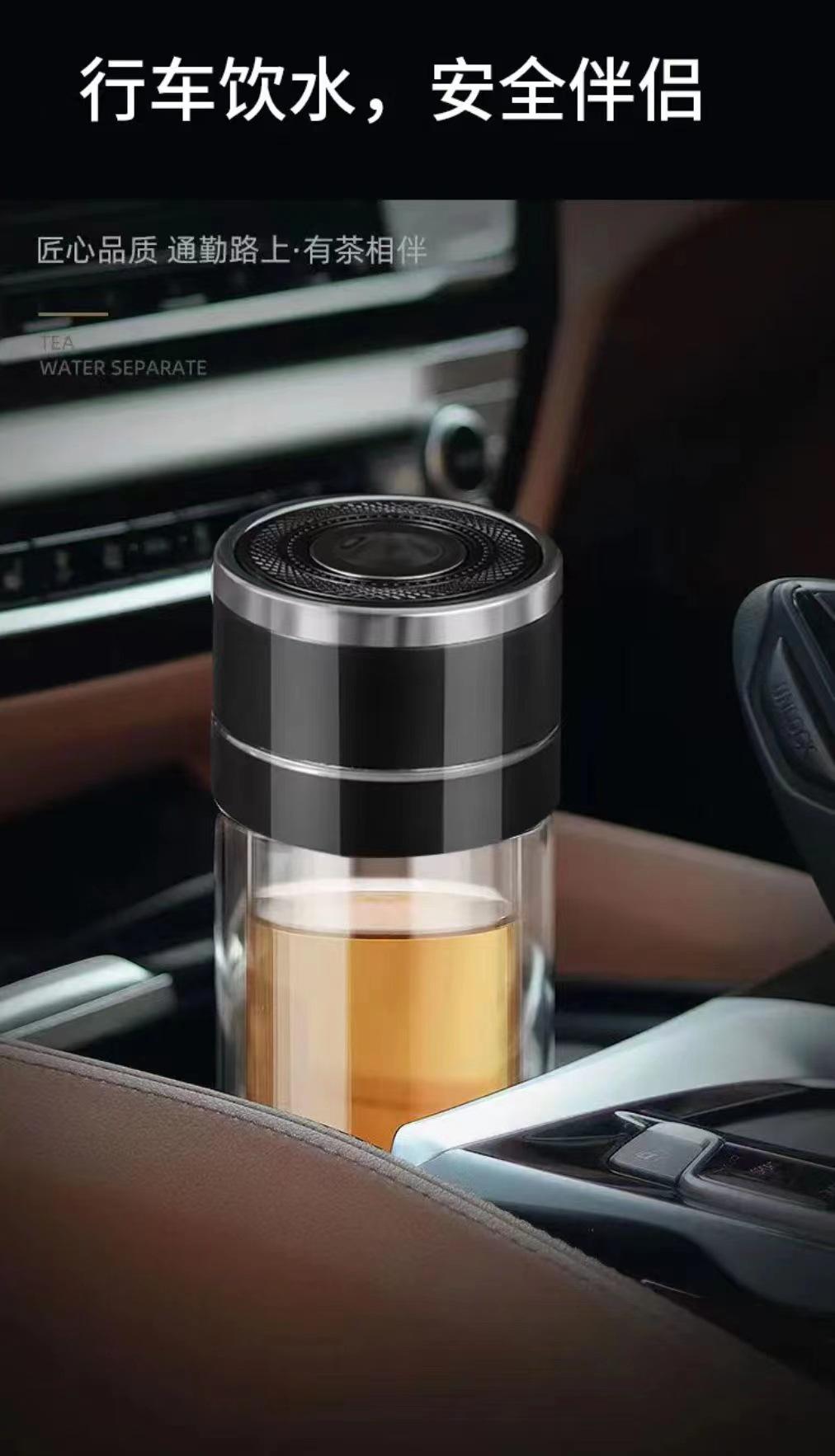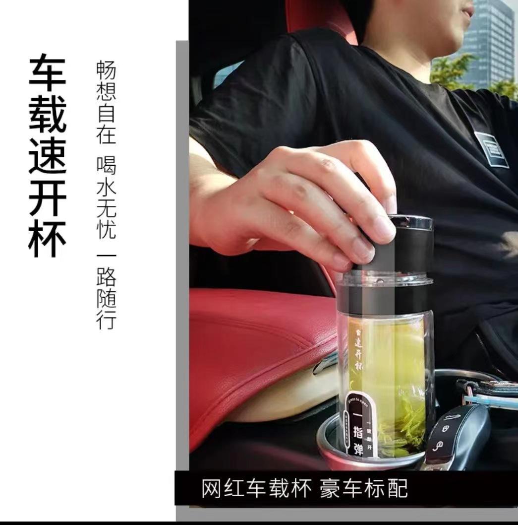 Tapa de apertura rápida regalo de alta gama taza de agua de vidrio resistente al calor con separación de té y agua para coche para hombres y mujeres con logo impreso en vidrio