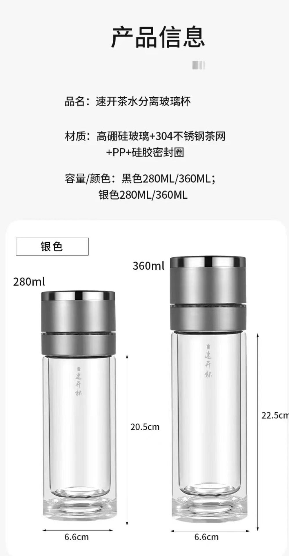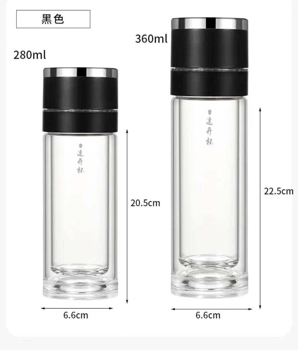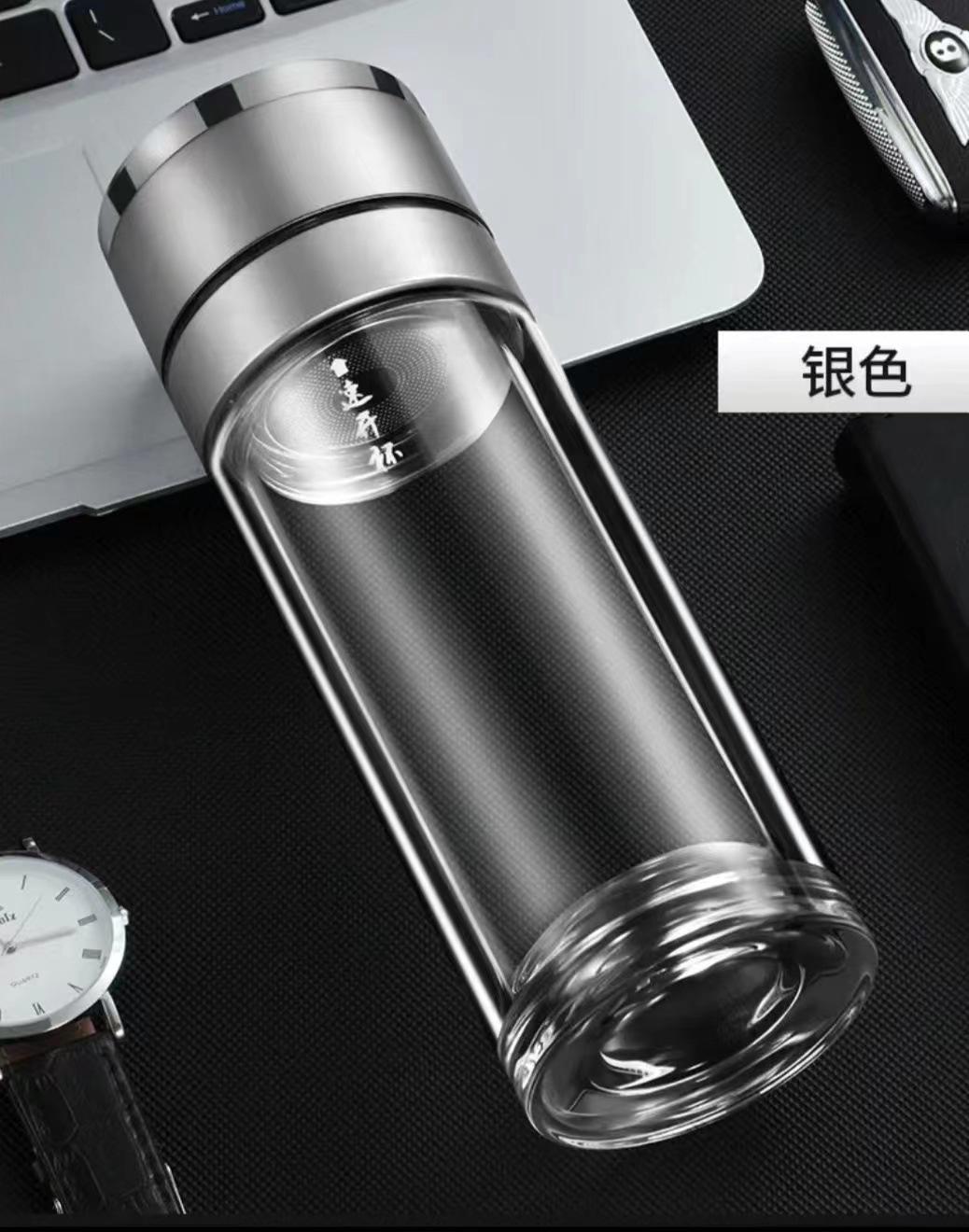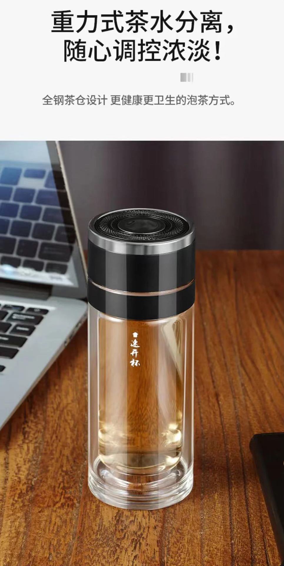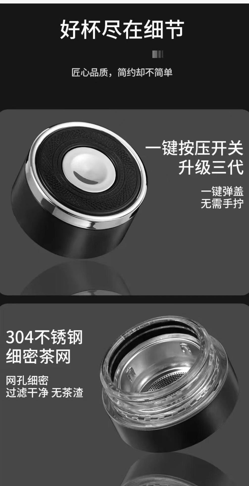 Tapa de apertura rápida regalo de alta gama taza de agua de vidrio resistente al calor con separación de té y agua para coche para hombres y mujeres con logo impreso en vidrio