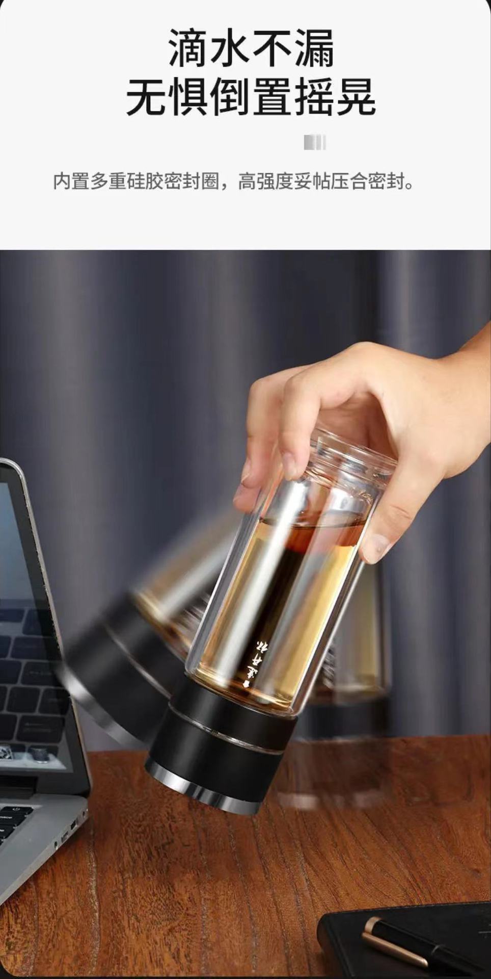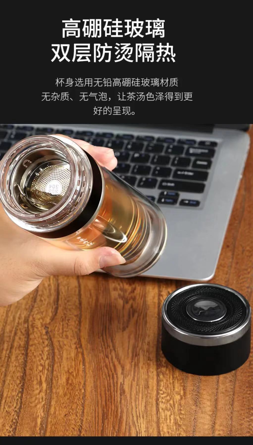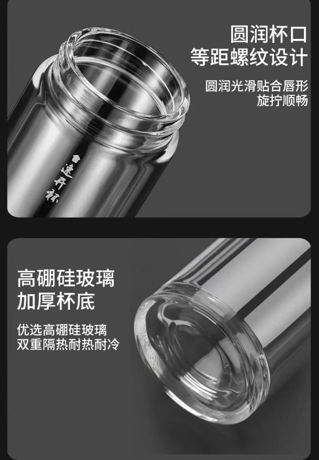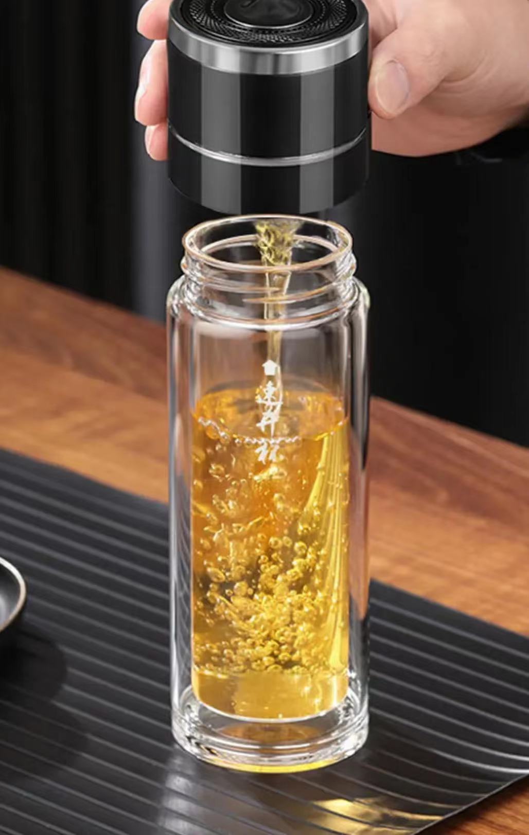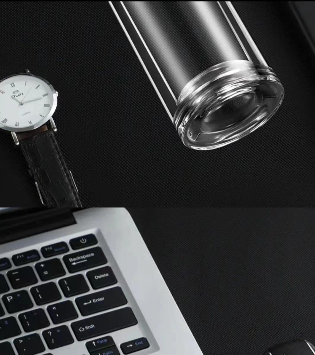 Tapa de apertura rápida regalo de alta gama taza de agua de vidrio resistente al calor con separación de té y agua para coche para hombres y mujeres con logo impreso en vidrio