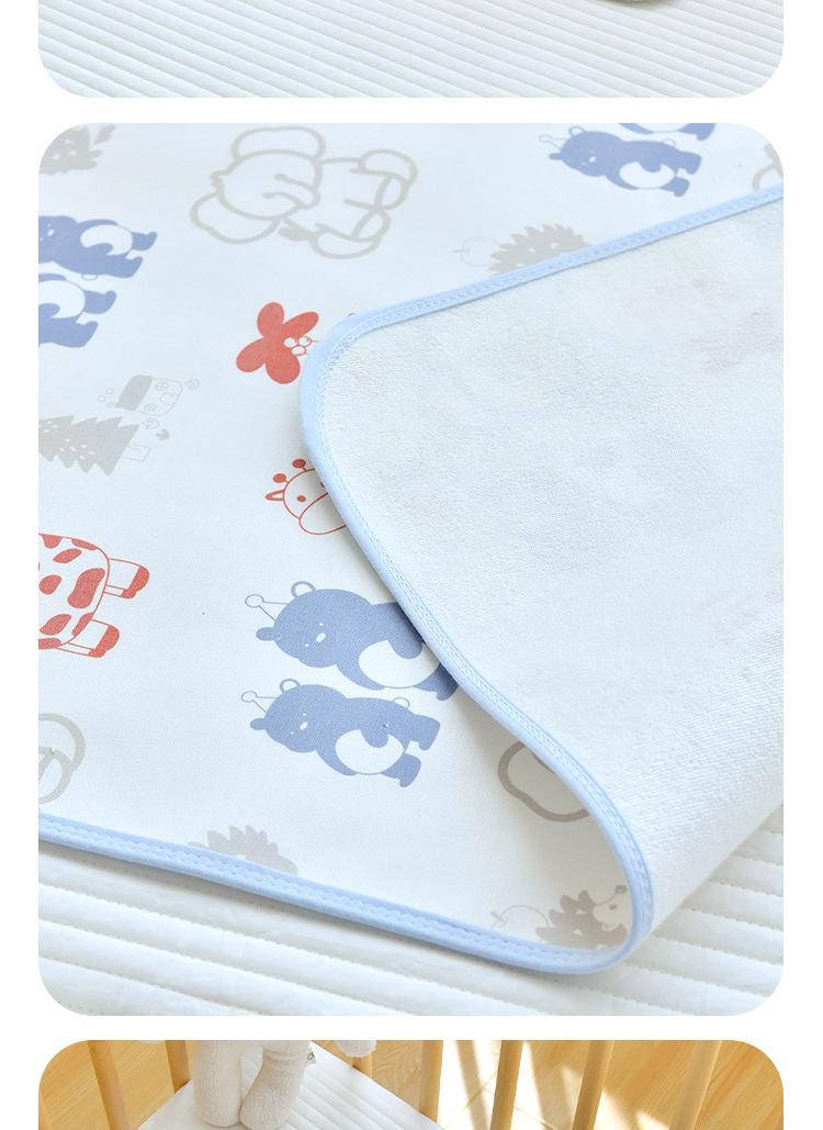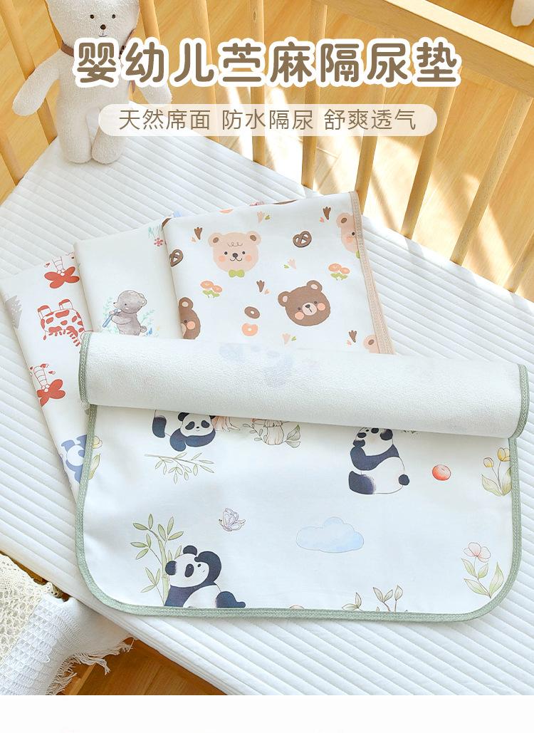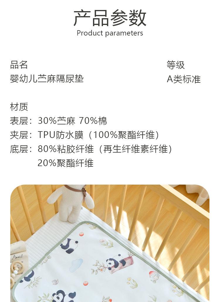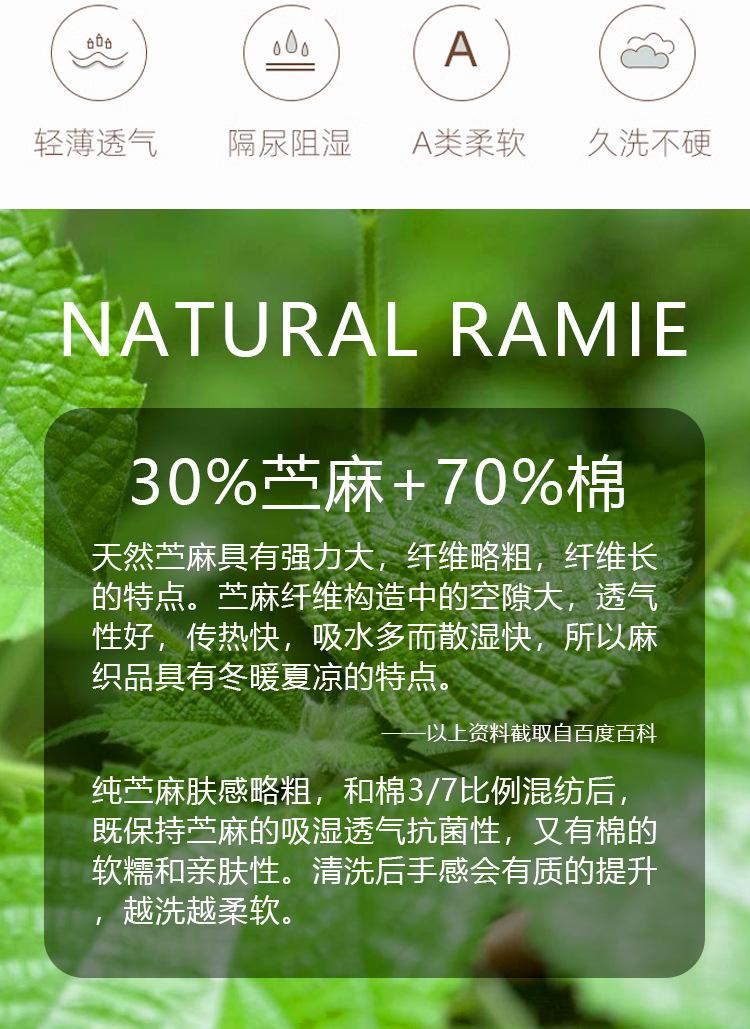 Pañal de tela de ramio para bebé y niño pequeño Este protector de cama presenta una construcción de doble capa de ramio + algodón. Conserva las ventajas del ramio por ser transpirable y absorbente del sudor. La adición de algodón hace que el tapete sea más amigable con la piel y suave al tacto. 30% ramio combinado con 70% algodón brinda una mejor experiencia La tela se siente ligeramente fresca al tacto, pero no fría. Es transpirable y cómodo para acostarse, muy adecuado para el uso en verano Es perfecto para bebés. La capa intermedia utiliza una membrana de TPU a prueba de fugas, que es transpirable, seca y cómoda, diciendo adiós a los culitos rojos. Patrón de impresión reactiva vegetal, se siente como si no hubiera ningún objeto extraño El patrón es muy reproducible y no se desvanecerá incluso después de lavados repetidos. Diseño overlock de doble aguja, con costuras finas y resistentes para evitar que se deshilache Calidad clase A, sin fluorescencia.