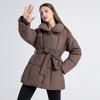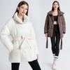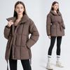 Chaqueta Corta de Algodón Transfronteriza Europea y Americana 2025 Invierno Nueva Suelta Casual Cálida Cuello Alto Cinturón Chaqueta de Algodón