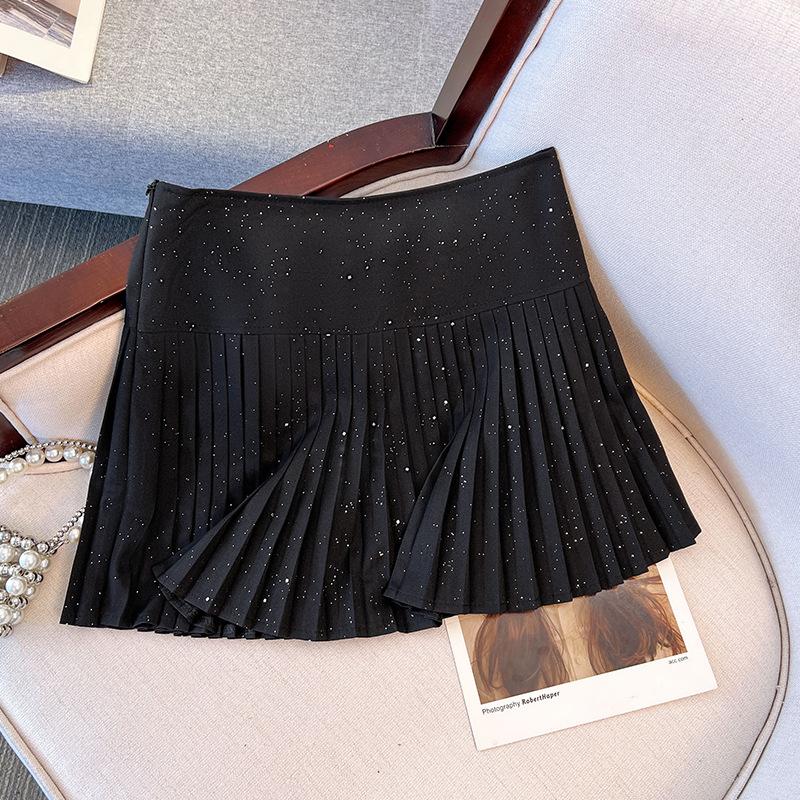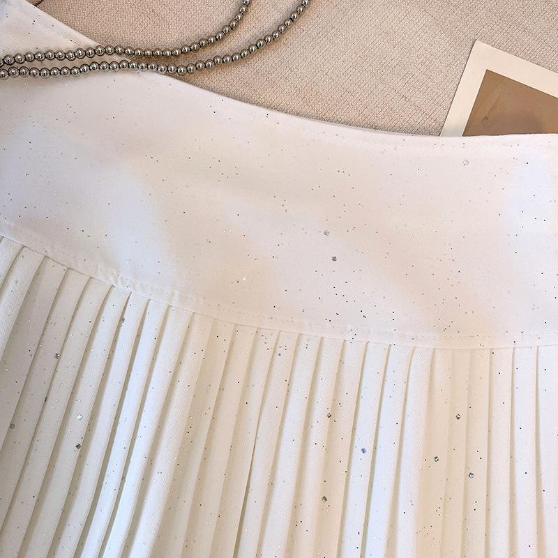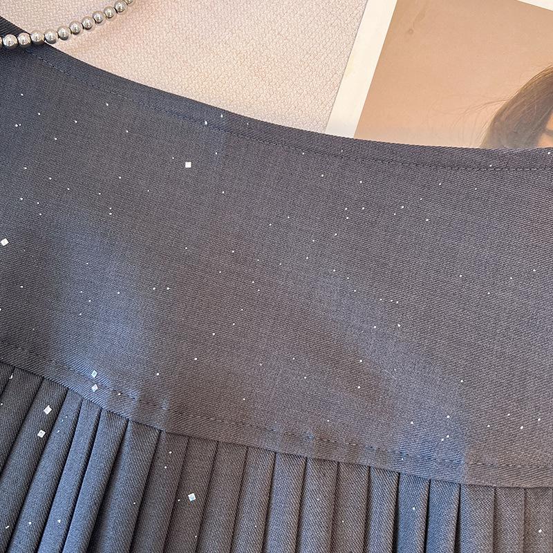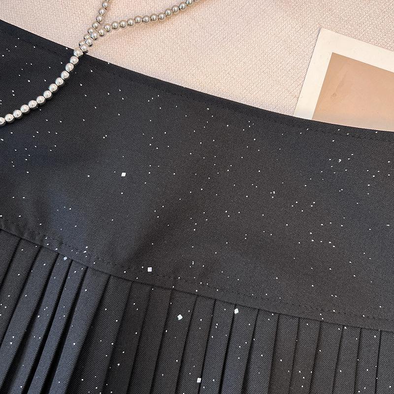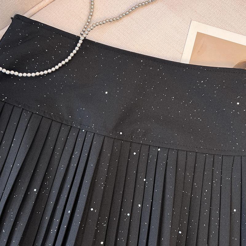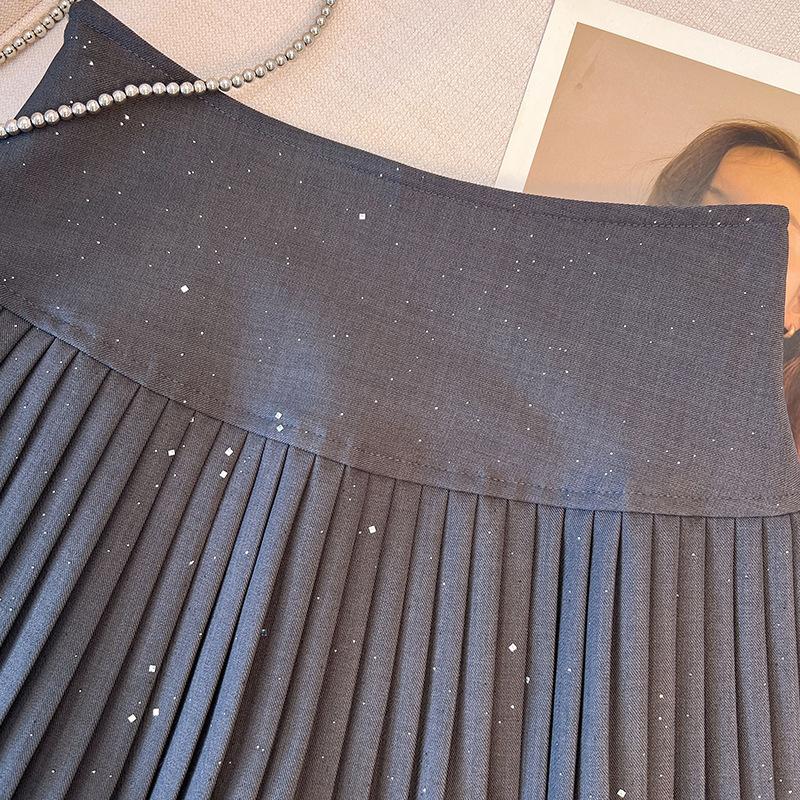 2025 Talla Grande Falda de Lentejuelas Nueva de Verano para Mujer Cintura Alta Antitransparente Falda Plisada Línea A Elegante Falda Cubre-Carne