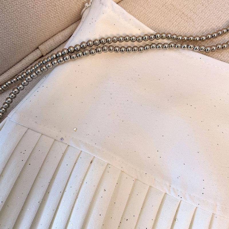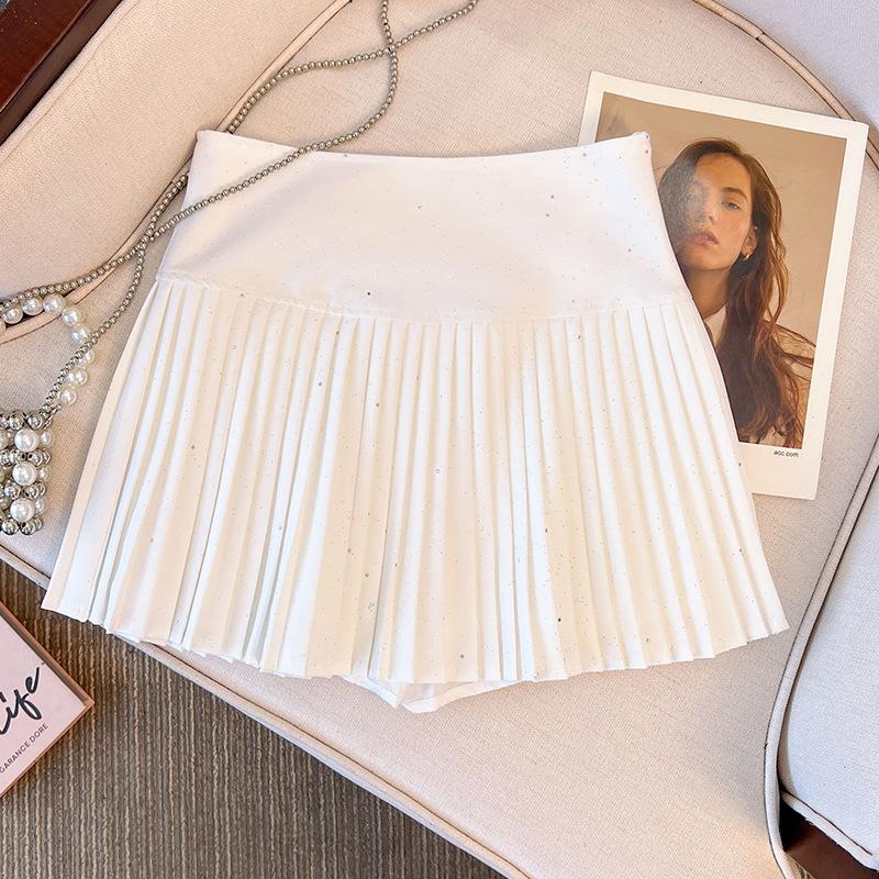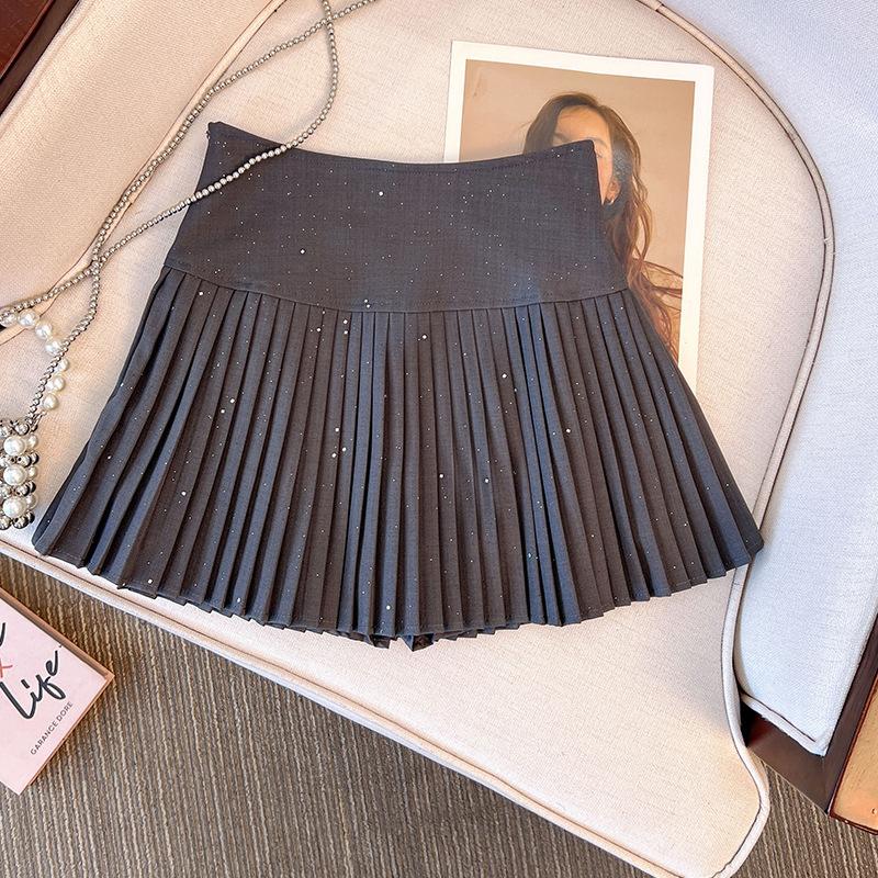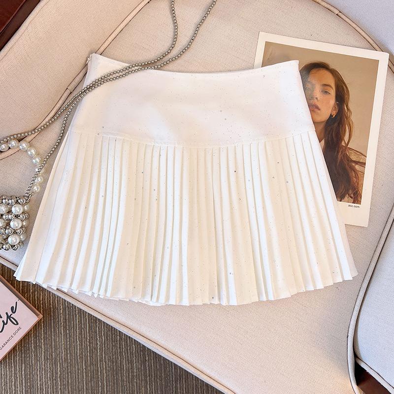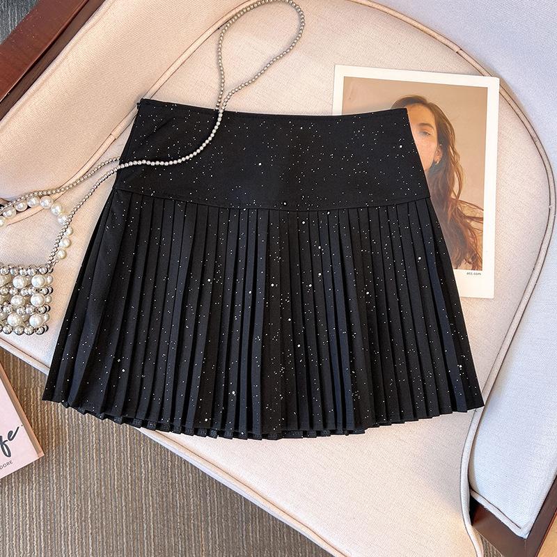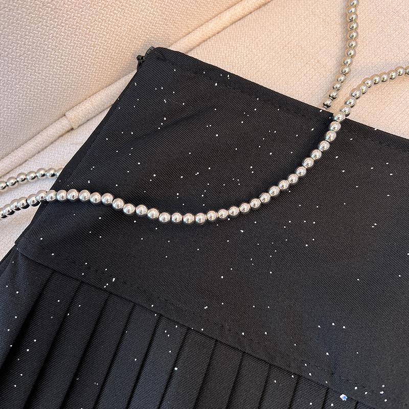 2025 Talla Grande Falda de Lentejuelas Nueva de Verano para Mujer Cintura Alta Antitransparente Falda Plisada Línea A Elegante Falda Cubre-Carne