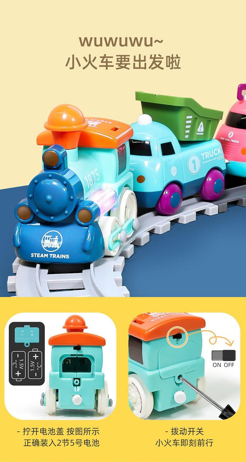 Nuevo Tren Eléctrico de Pista Transfronterizo DIY Vehículo de Ingeniería Ensamblado de Dibujos Animados para Niños con Música y Luz Juguete Educativo