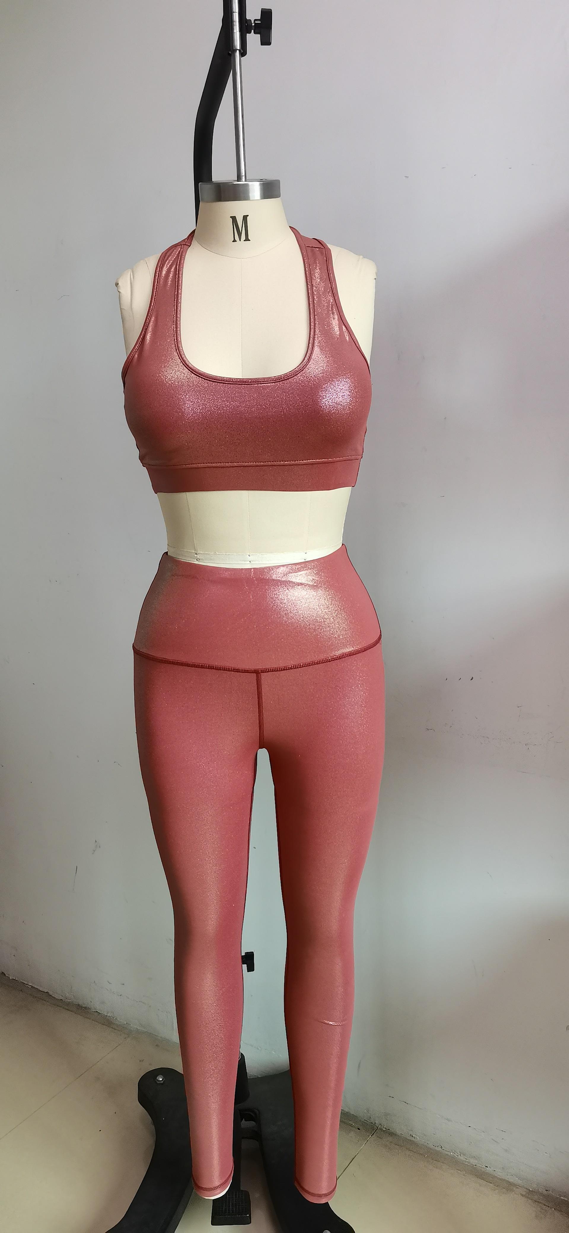 Traje de Yoga Deportivo Ajustado Elástico Transpirable Bronceado Brillante Verano Europeo y Americano para Mujer