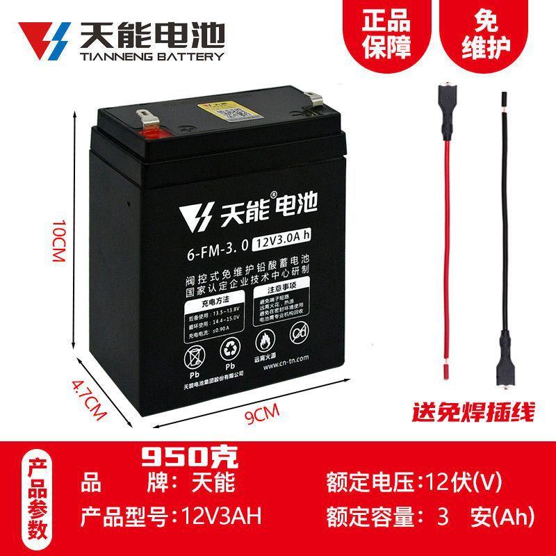 Tianeng original lead-acid battery_12v3.0ah about 0.95kg to send welding-free plug-in cable, Tianeng original ...
