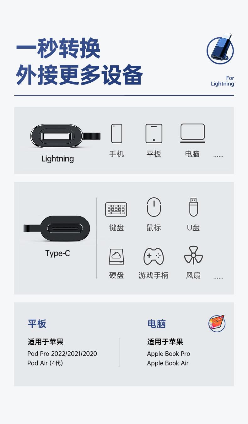 Type-c female to micro single otg (5v), Type-c female to apple single otg (3.3v), Type-c female to apple singl...