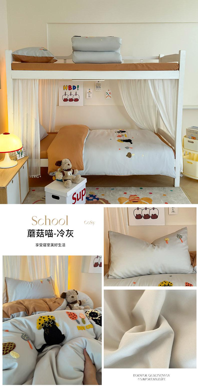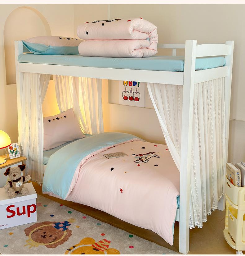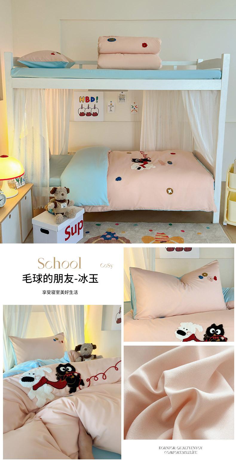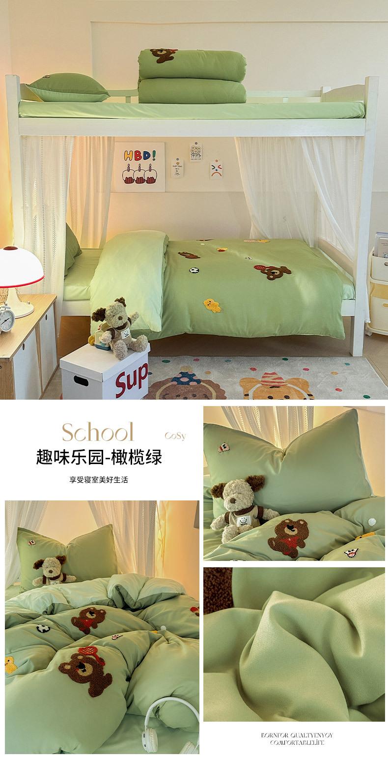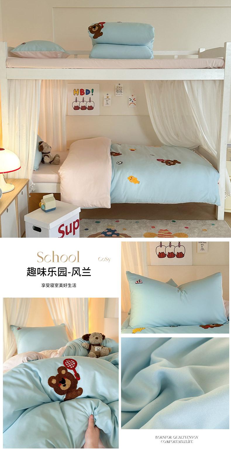 Toalla Bordada Juego de Tres Piezas para Dormitorio de Estudiante para el Inicio de la Temporada Escolar Dormitorio Escolar Ropa de Cama Individual Sábanas de Algodón Lavado y Funda de Edredón