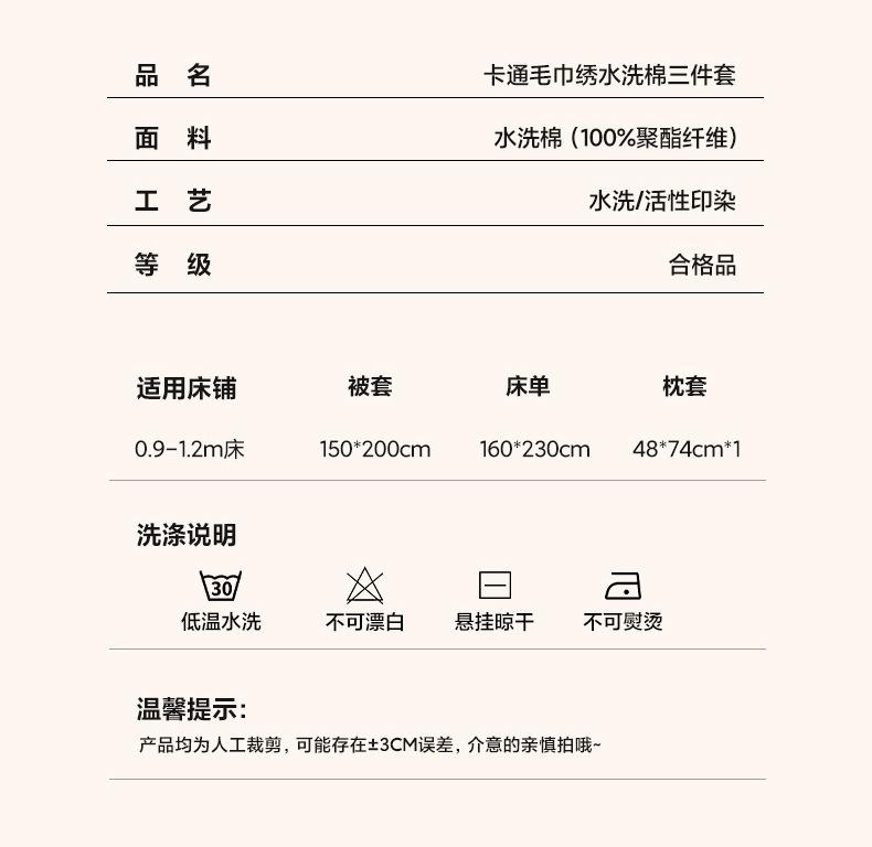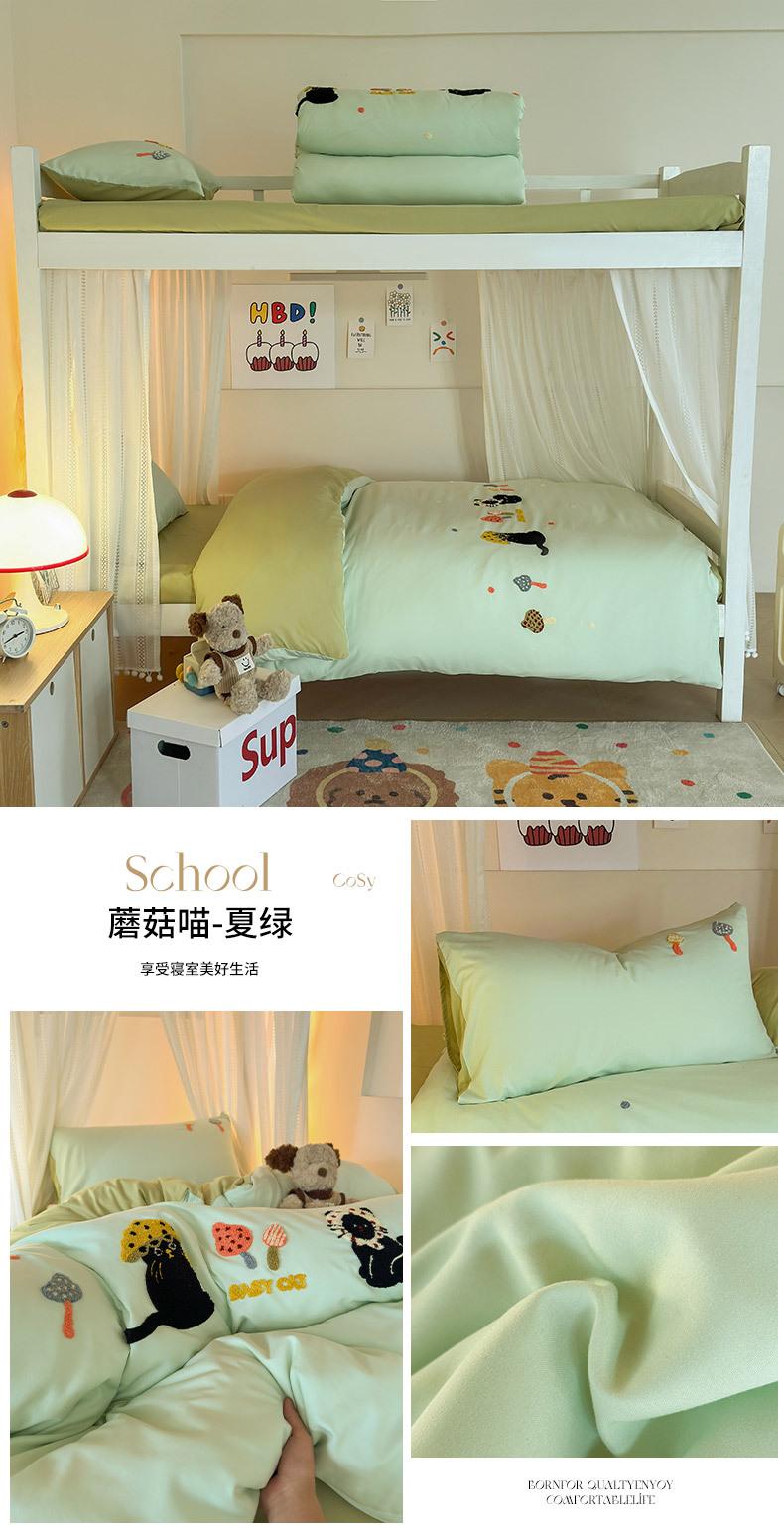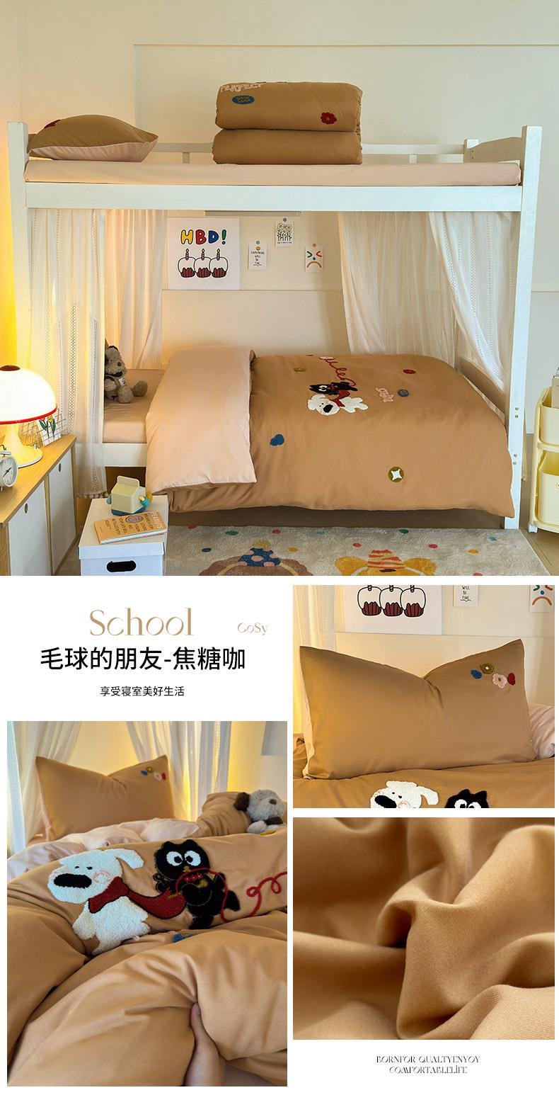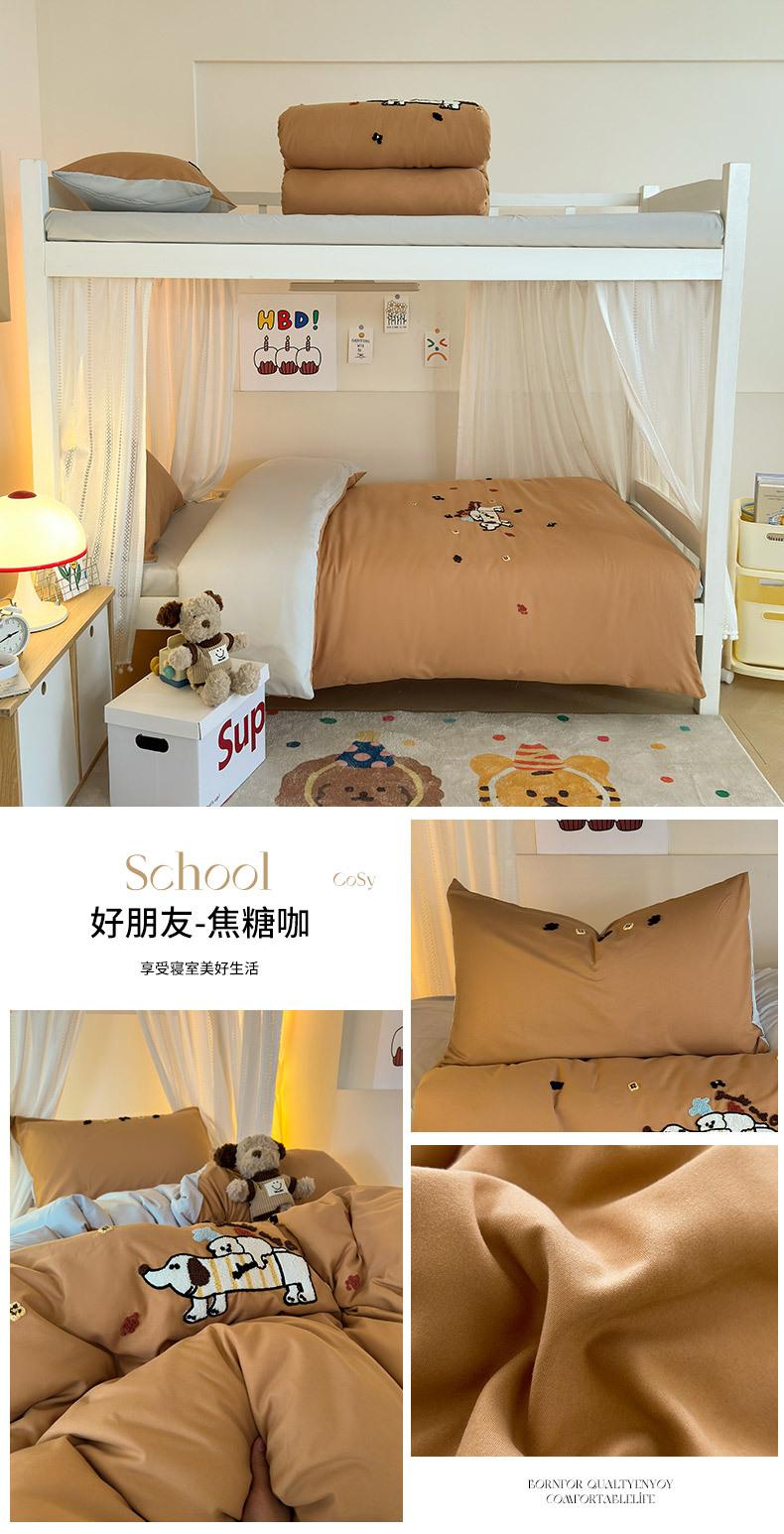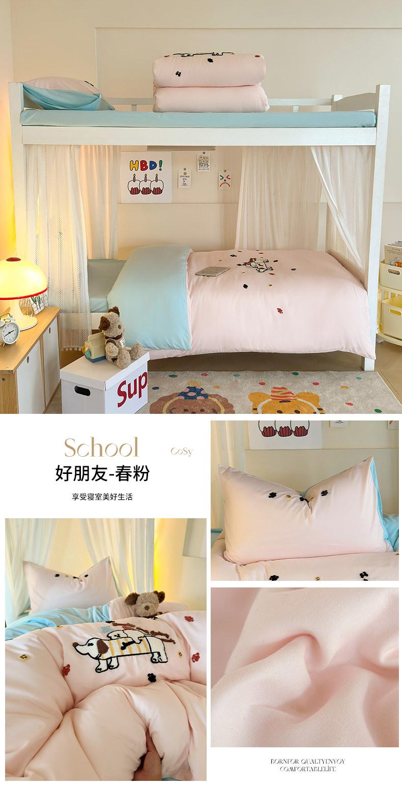 Toalla Bordada Juego de Tres Piezas para Dormitorio de Estudiante para el Inicio de la Temporada Escolar Dormitorio Escolar Ropa de Cama Individual Sábanas de Algodón Lavado y Funda de Edredón