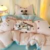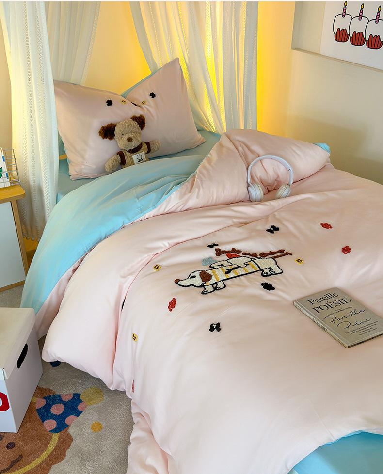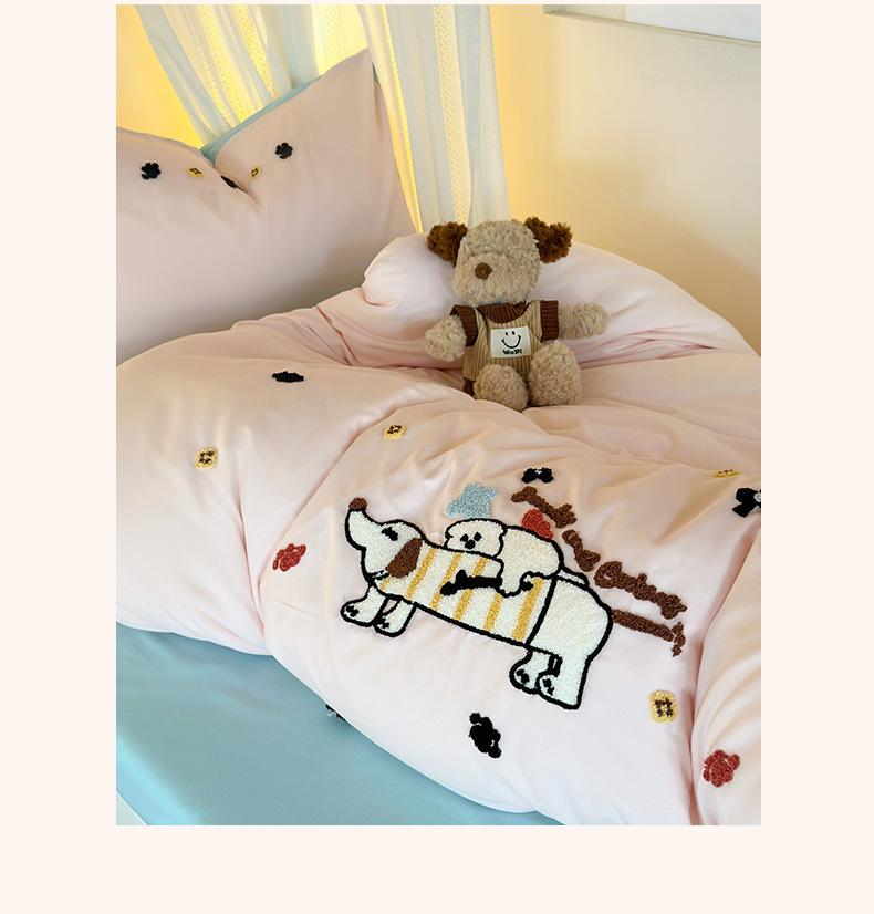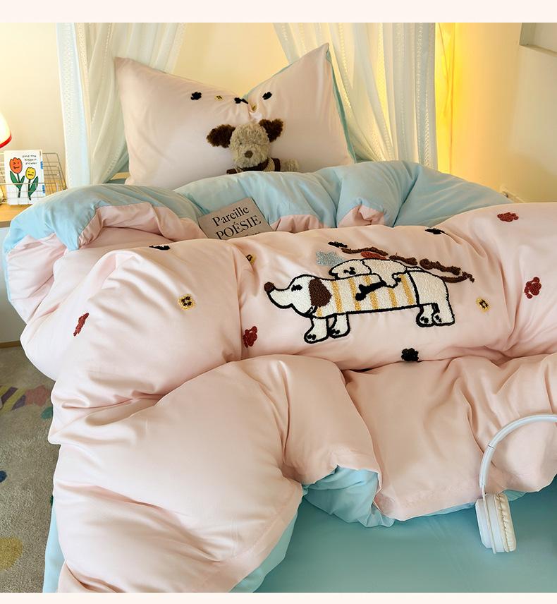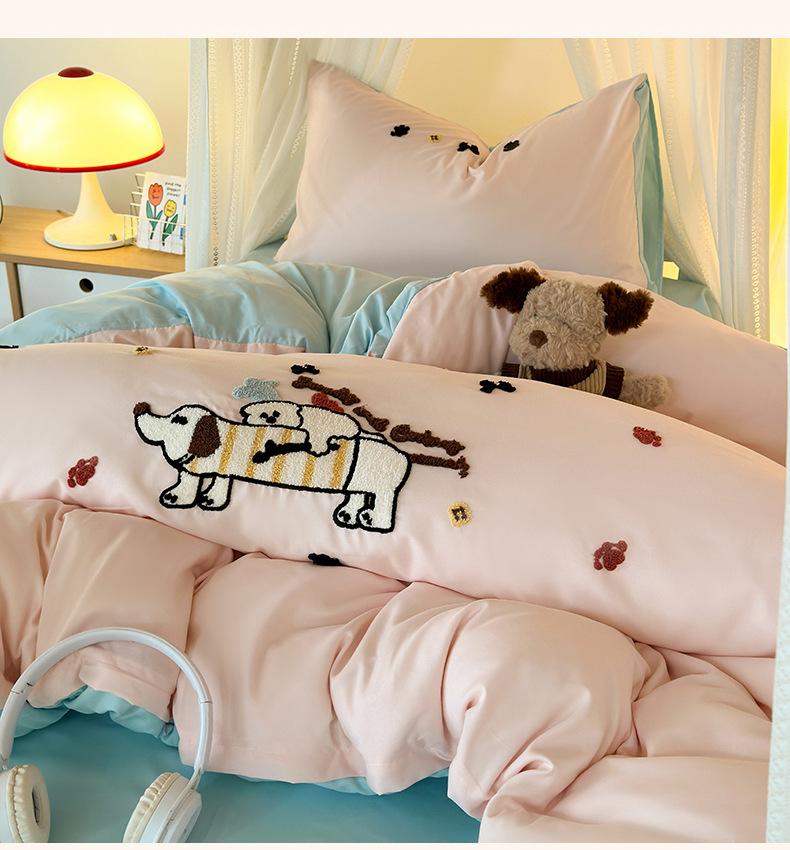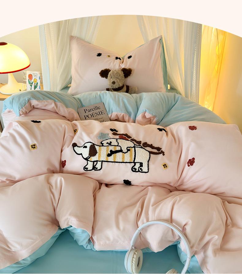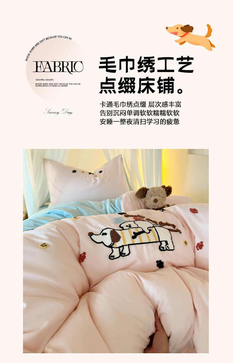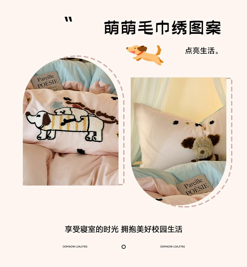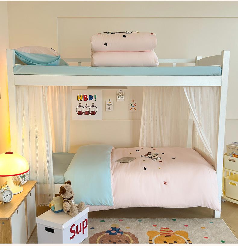 Toalla Bordada Juego de Tres Piezas para Dormitorio de Estudiante para el Inicio de la Temporada Escolar Dormitorio Escolar Ropa de Cama Individual Sábanas de Algodón Lavado y Funda de Edredón