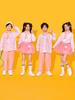 Four-piece set (striped top + shorts + socks + sunflower headwear)