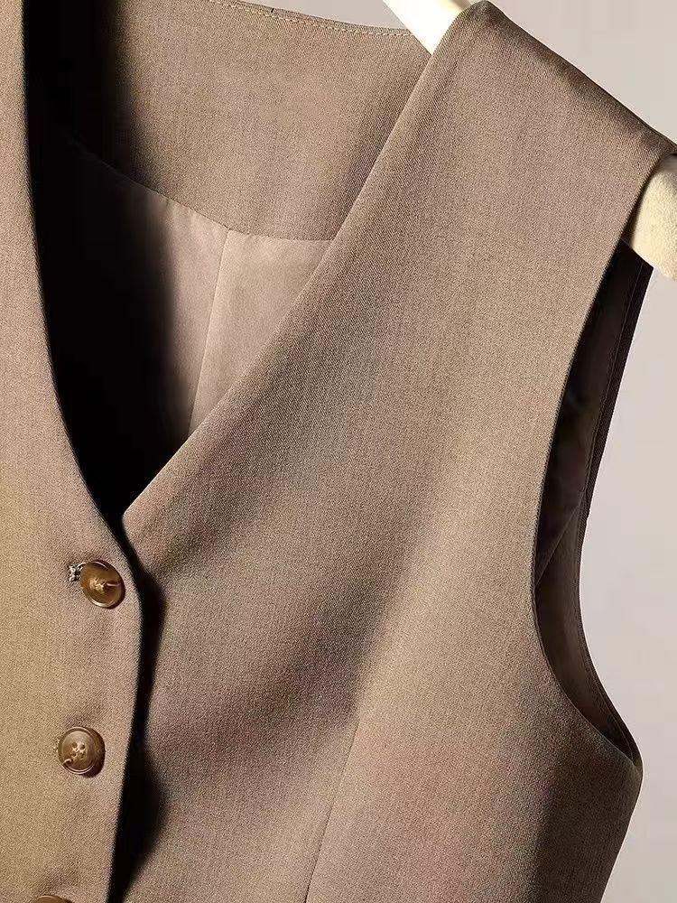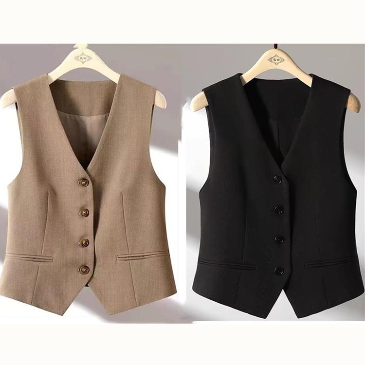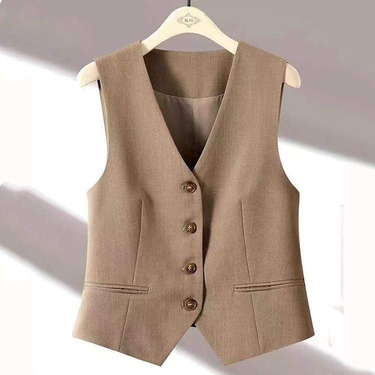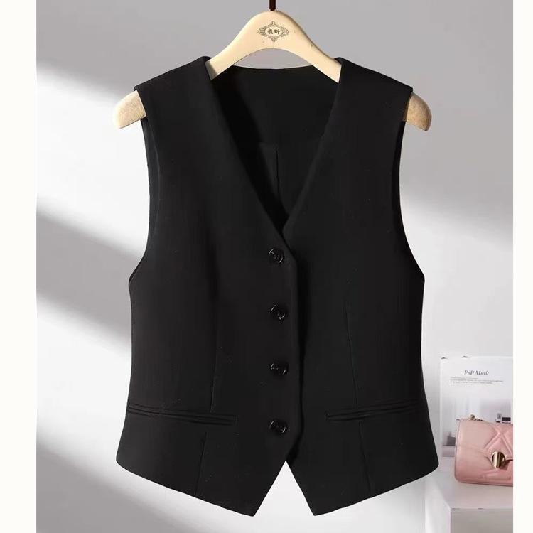 Chaleco de Traje Chaleco Corto 2024 Combinación con Todo Ajustado Primavera y Otoño Sin Mangas