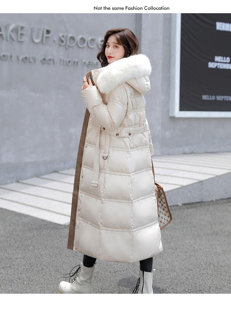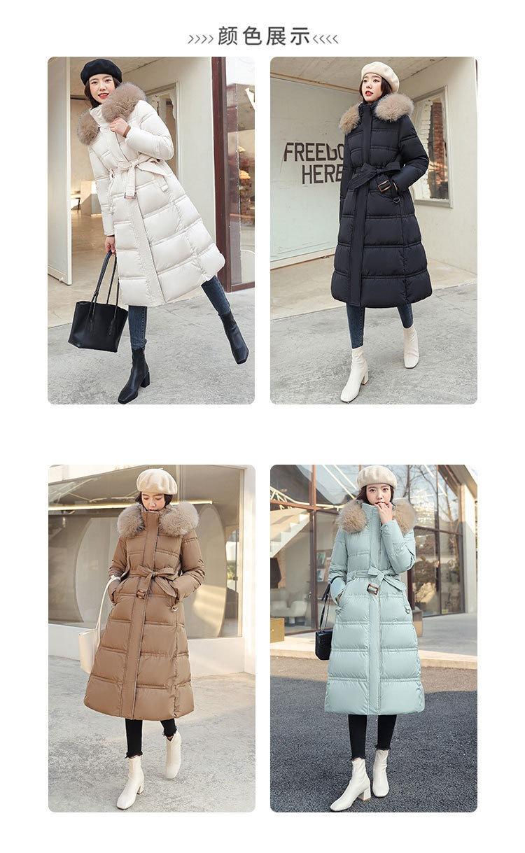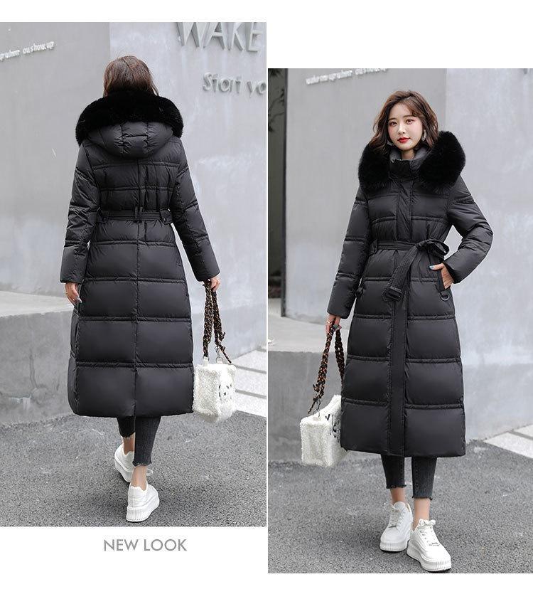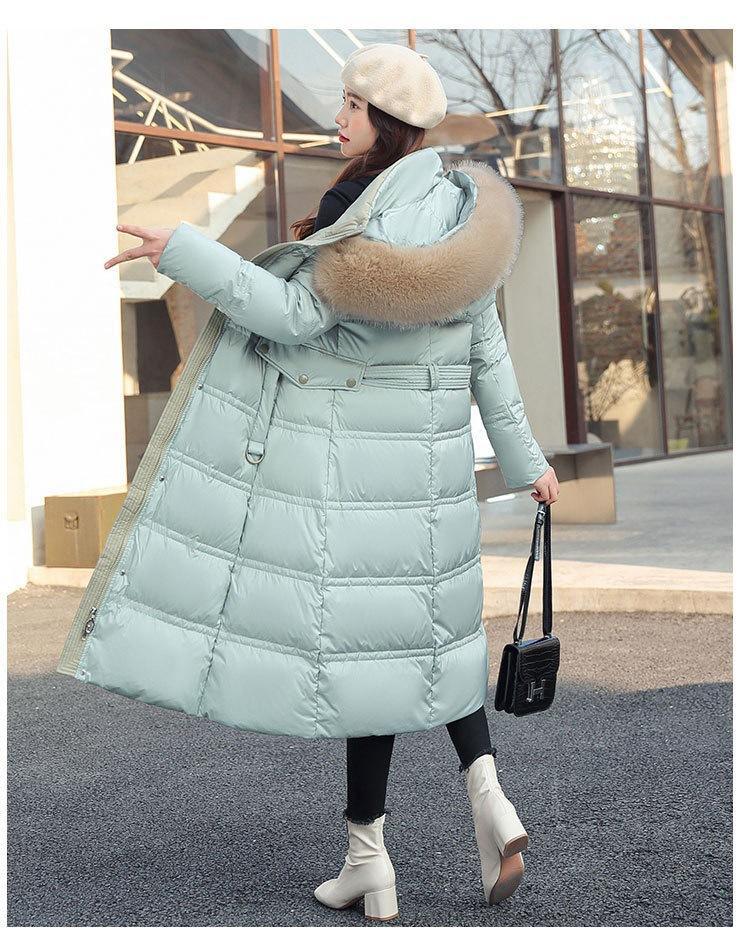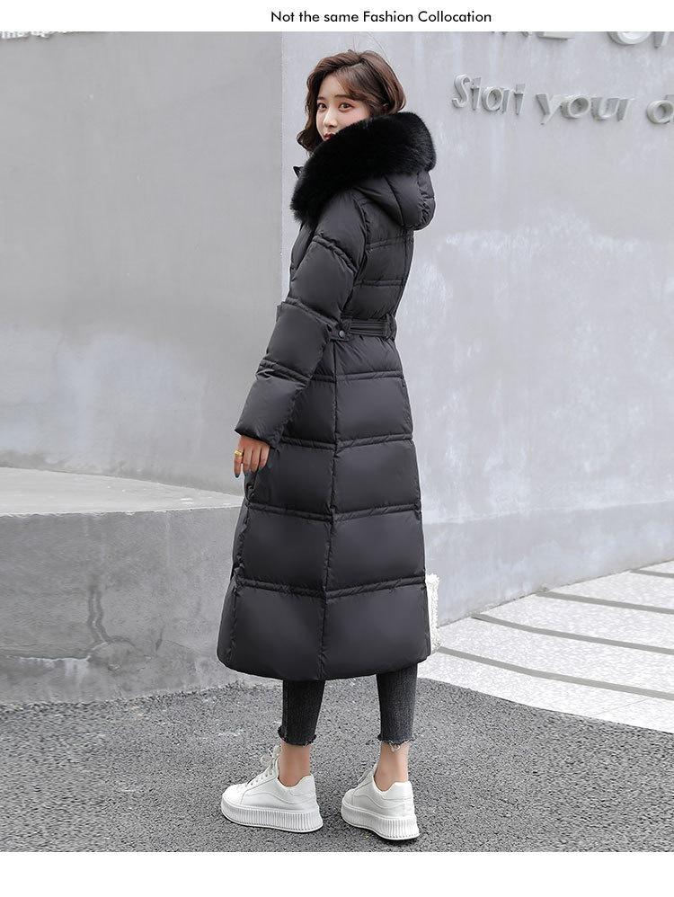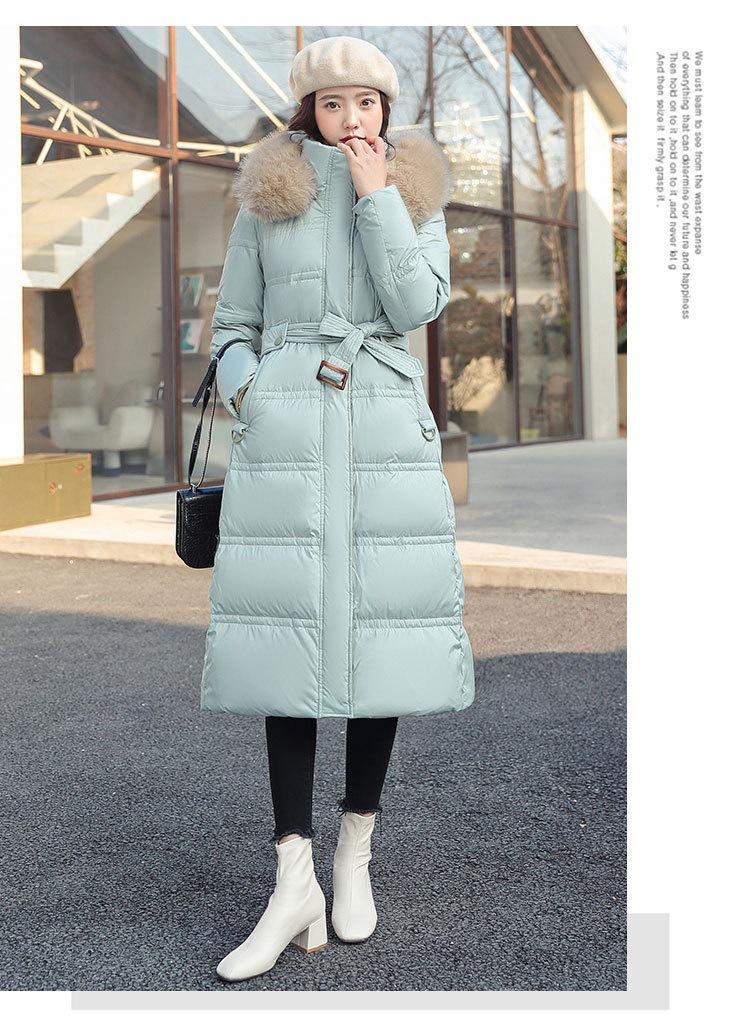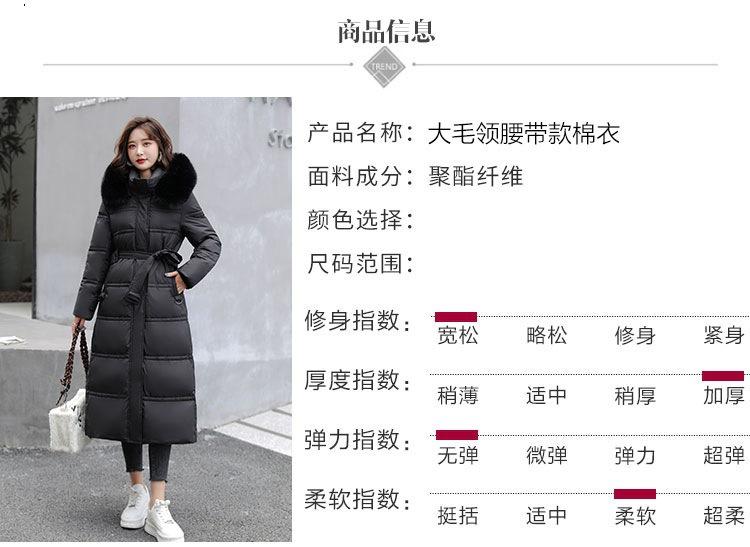 Chaqueta coreana nueva delgada de invierno acolchada de algodón cinturón cuello de piel chaqueta delgada acolchada de algodón abrigo europeo y americano chaqueta acolchada de algodón con plumón piel grande sobre la rodilla