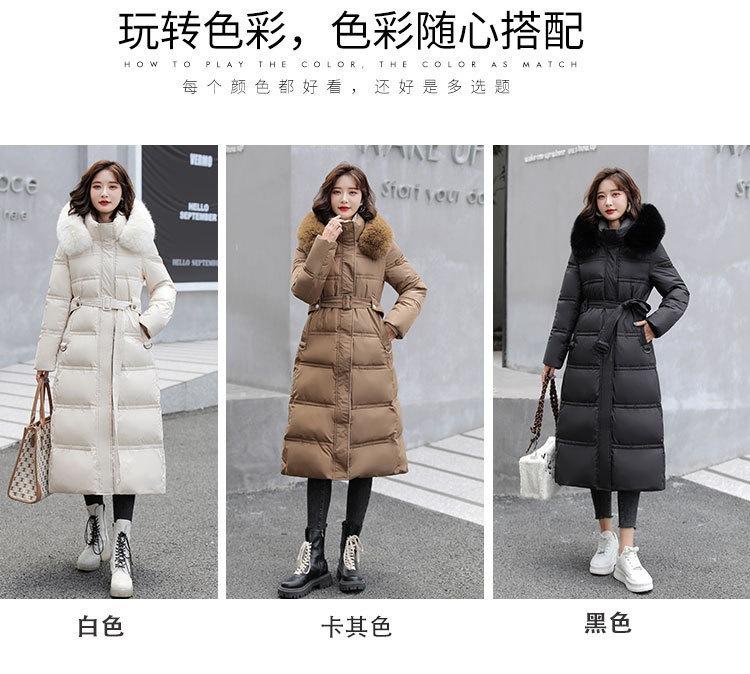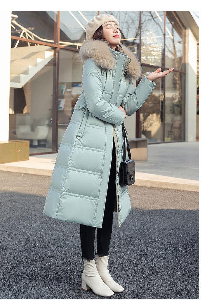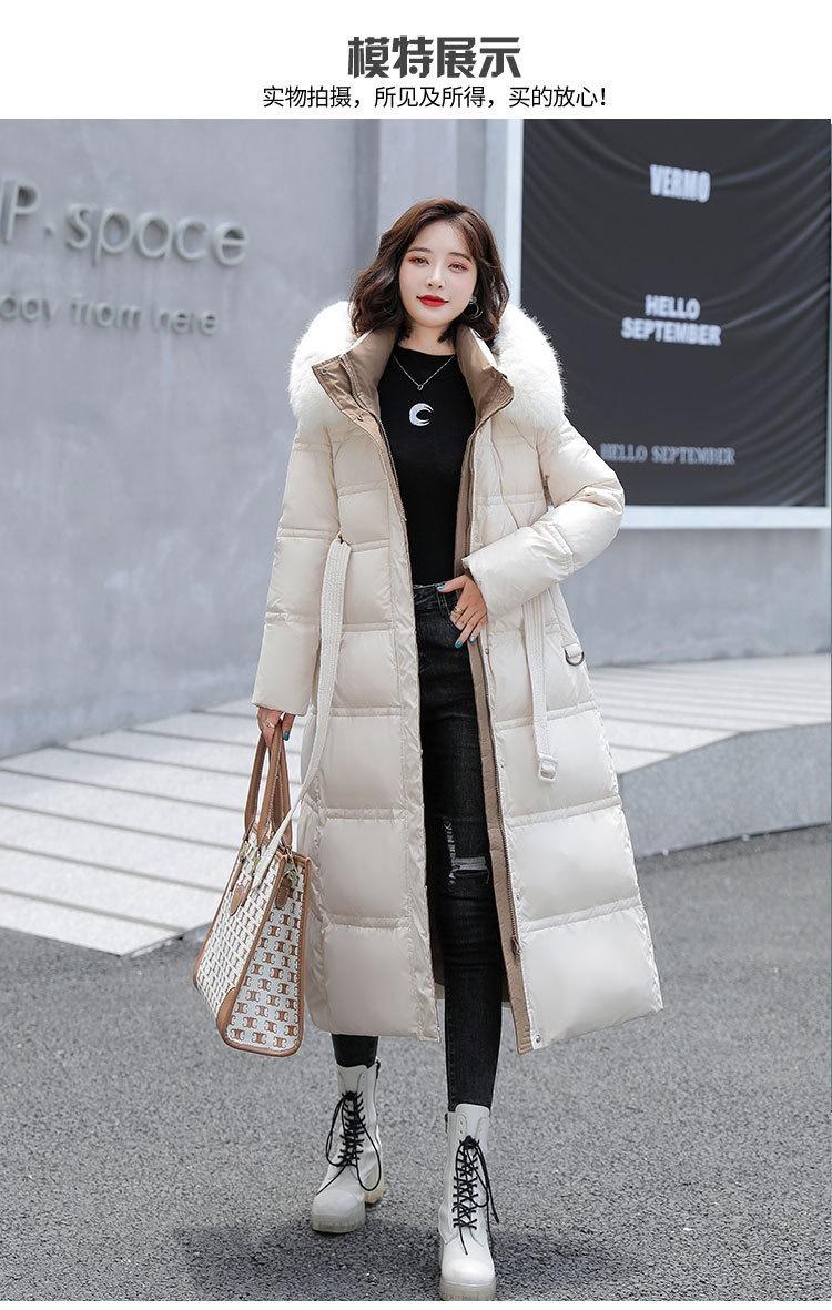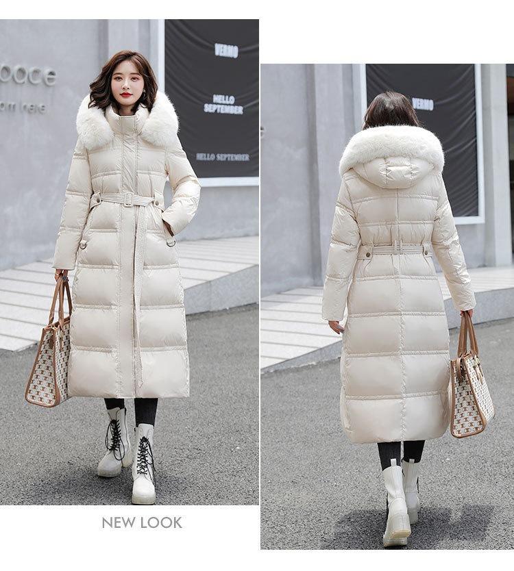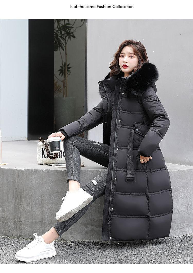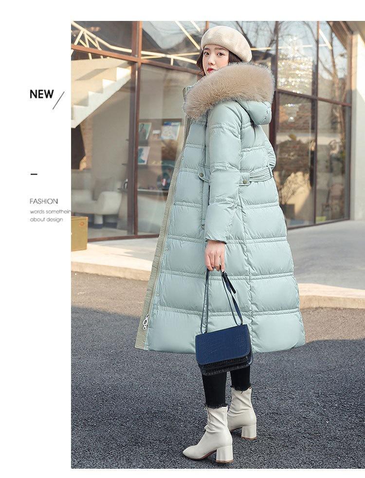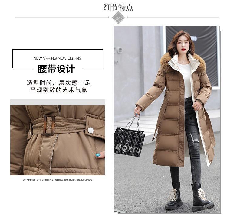 Chaqueta coreana nueva delgada de invierno acolchada de algodón cinturón cuello de piel chaqueta delgada acolchada de algodón abrigo europeo y americano chaqueta acolchada de algodón con plumón piel grande sobre la rodilla