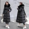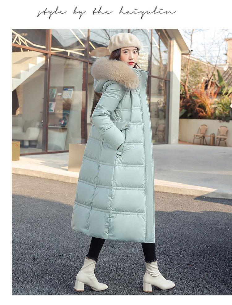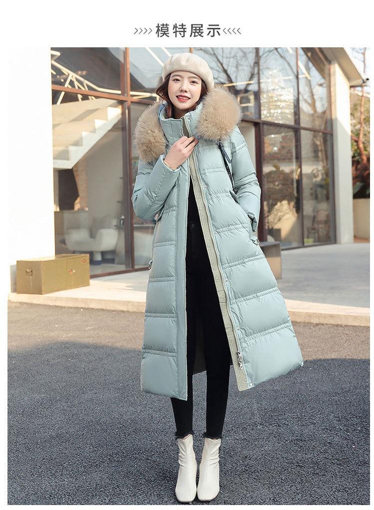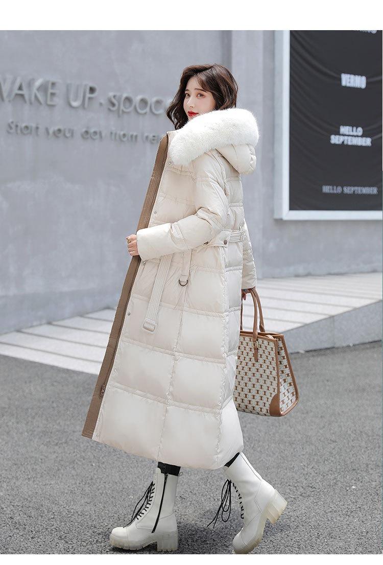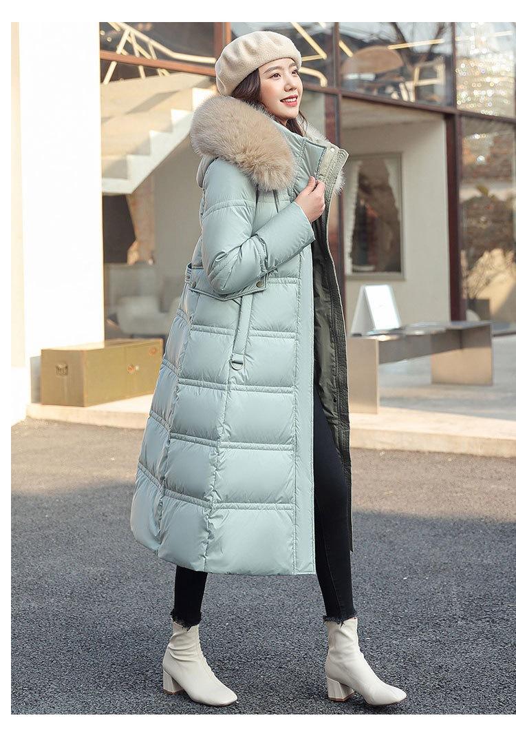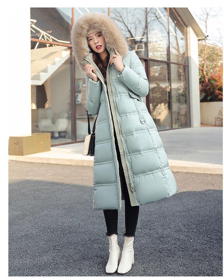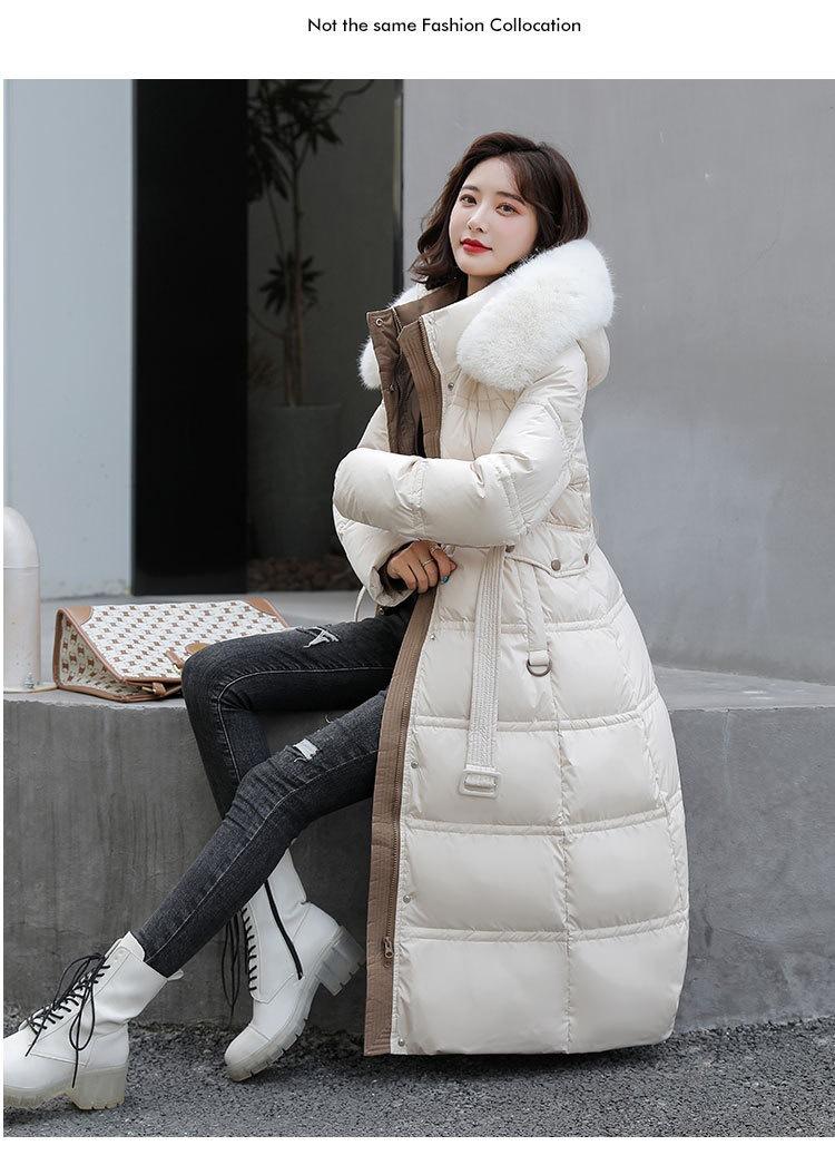 Chaqueta coreana nueva delgada de invierno acolchada de algodón cinturón cuello de piel chaqueta delgada acolchada de algodón abrigo europeo y americano chaqueta acolchada de algodón con plumón piel grande sobre la rodilla