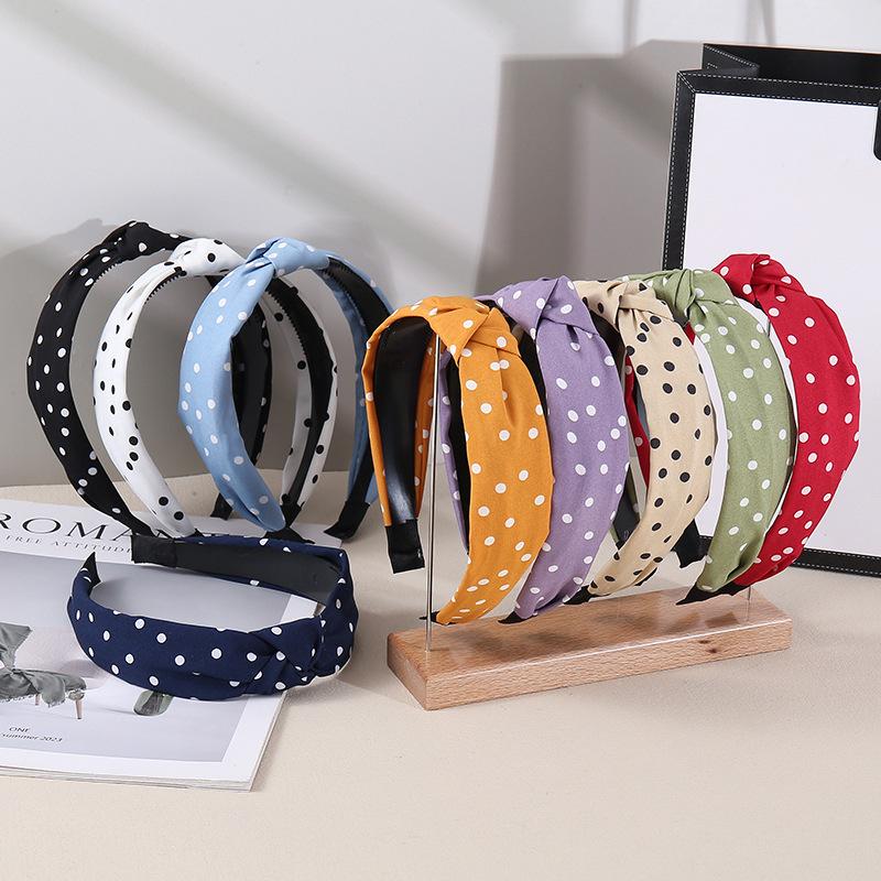 Diadema de lunares de onda de ala ancha retro diadema de versión ancha simple versátil accesorios para el cabello cruzados tocado máscara de tela pinza para el cabello